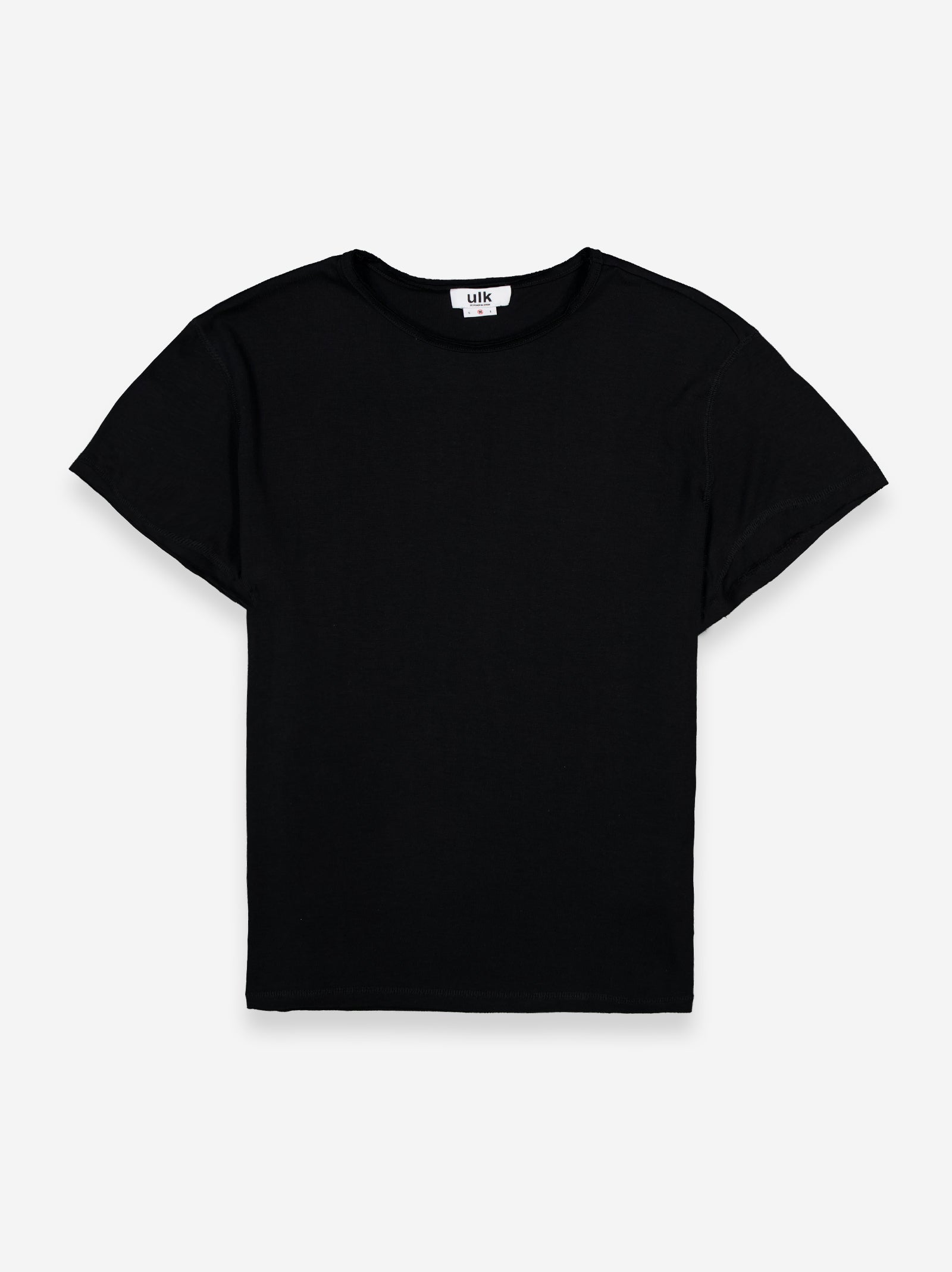 Camiseta de manga corta lisa. Confeccionada en tejido de punto. Cuello redondo. Corte recto y acabados limpios en cuello, mangas y bajo.