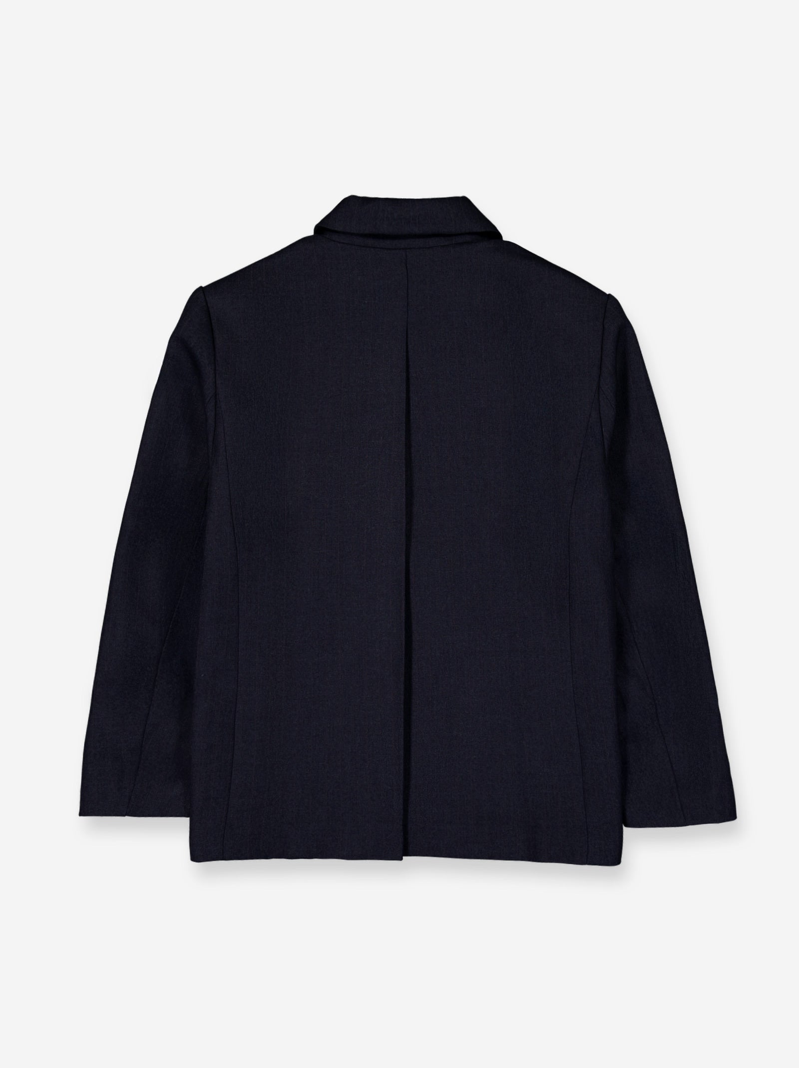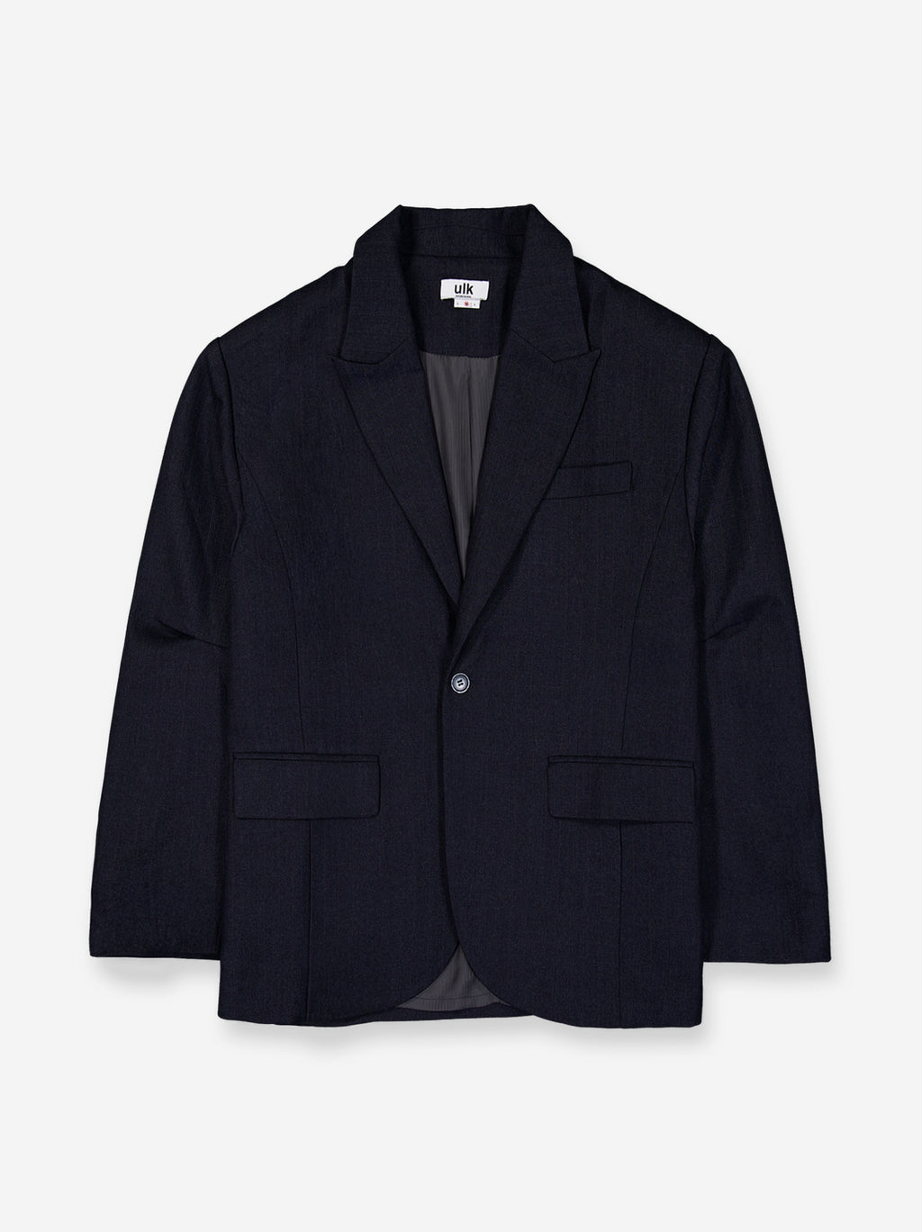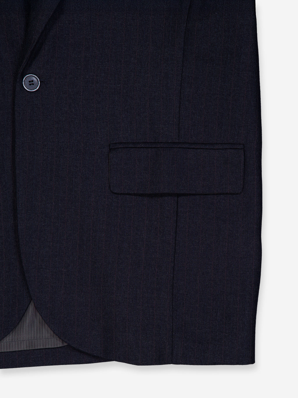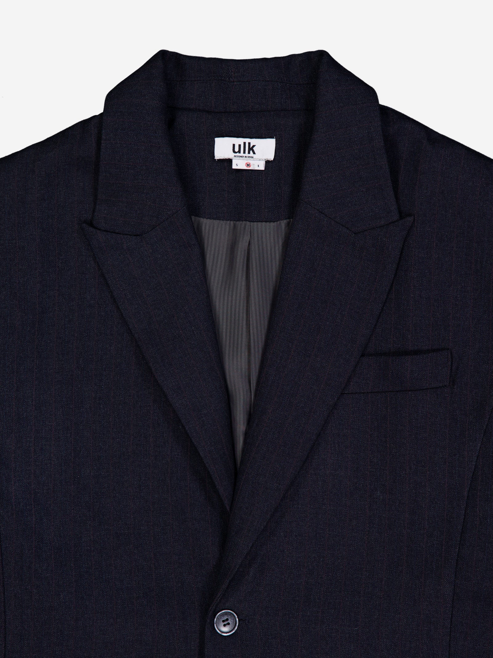 Blazer recta con raya diplomática. Cuello solapa y escote pico. Manga larga con hombreras. Bolsillos con solapa y de vivo en pecho. Costura en mangas. Cierre frontal con botón.