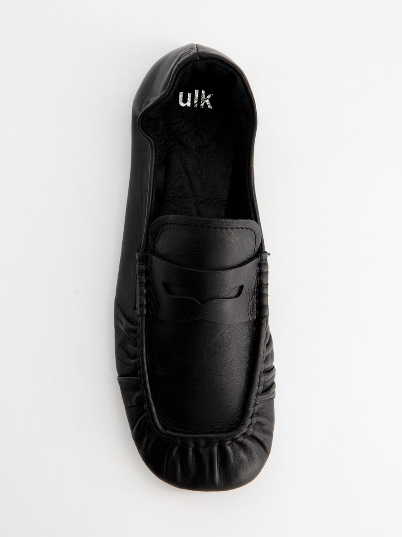 Mocasines negro de piel fruncido - ULK Momo