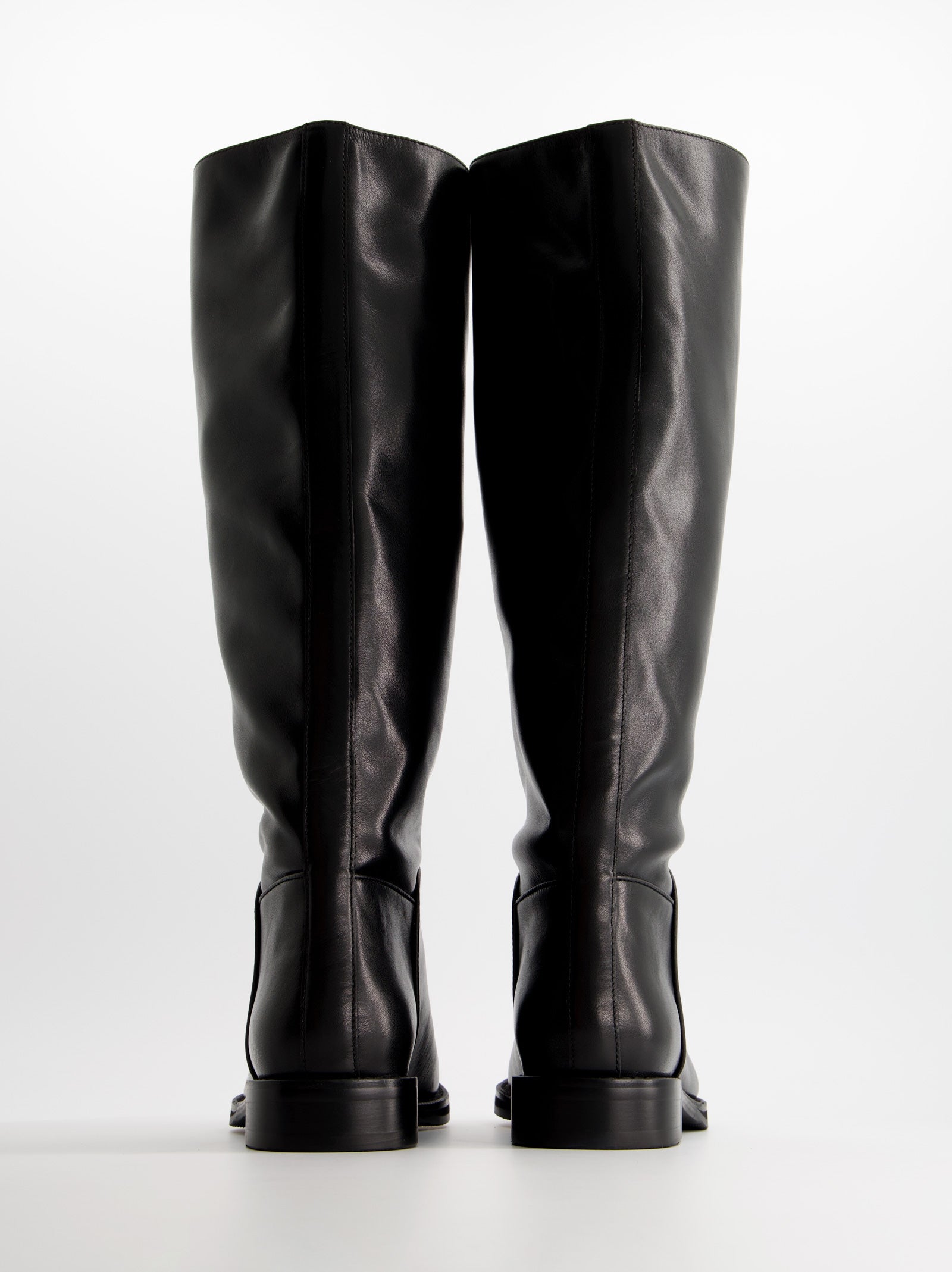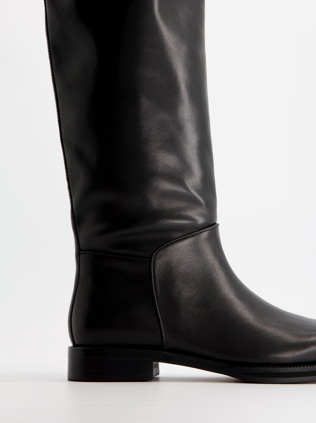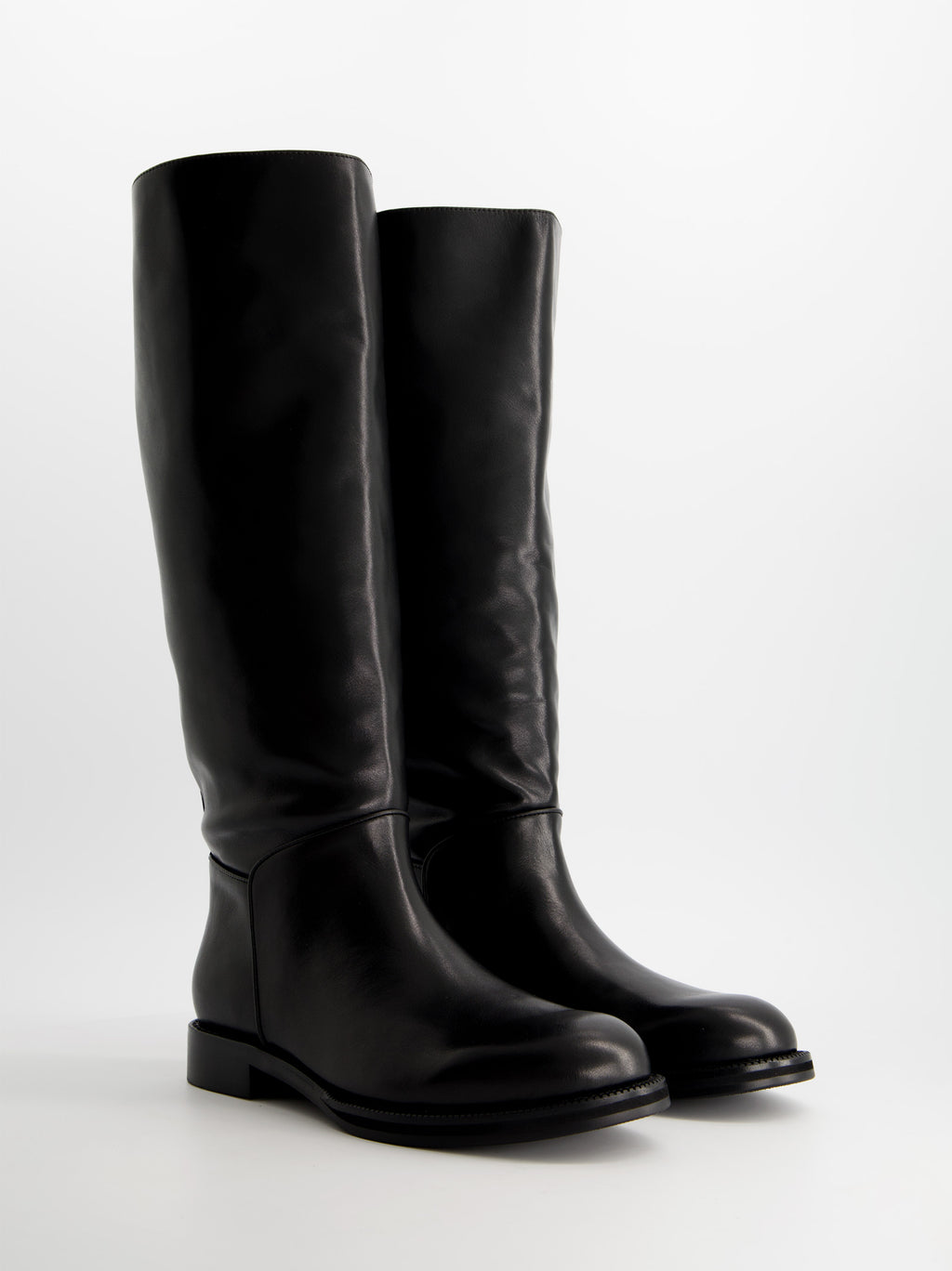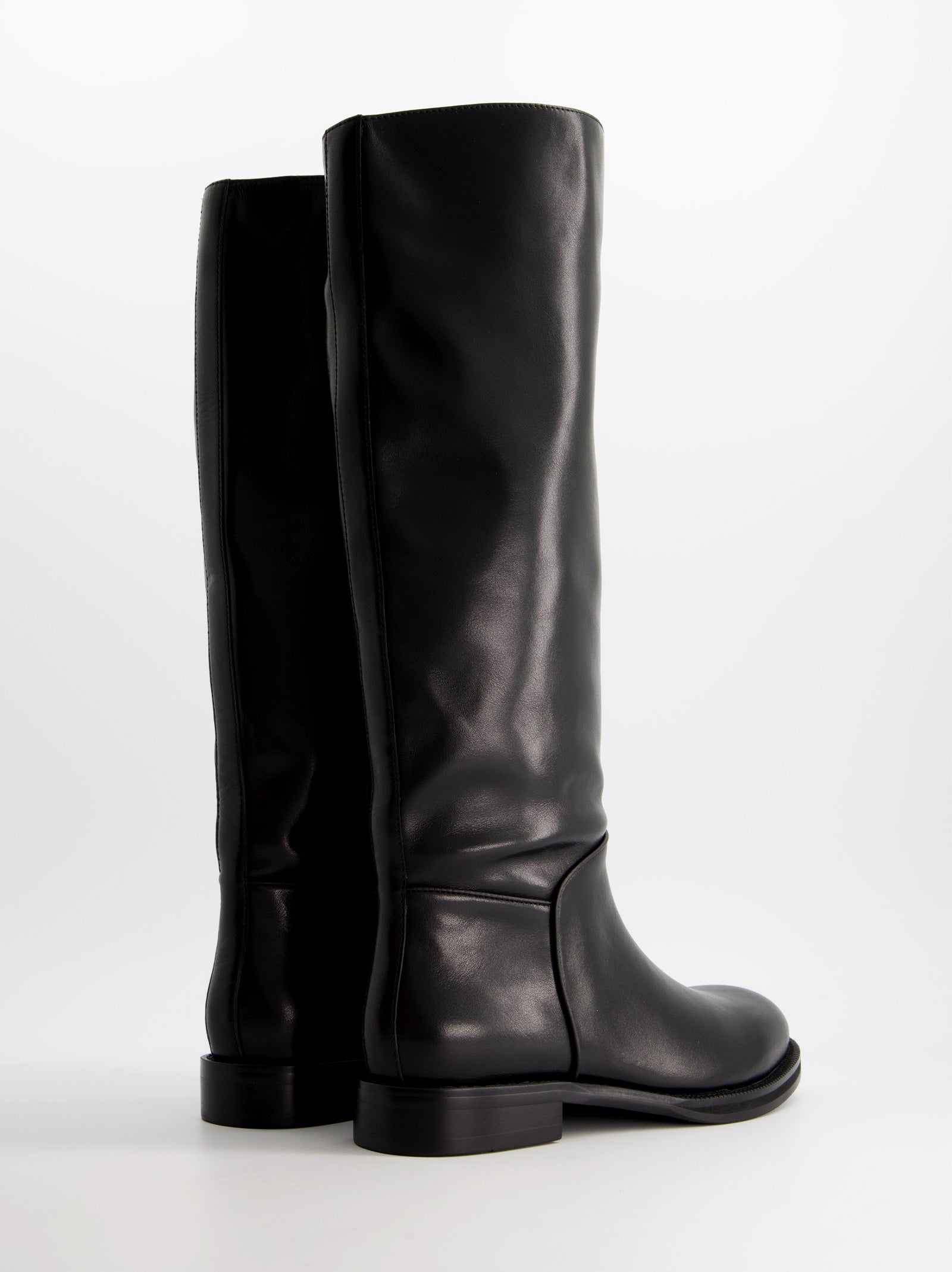 Bota alta de piel estilo hípica. Tacón bajo en bloque. Acabado en punta redonda.