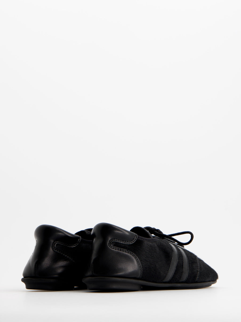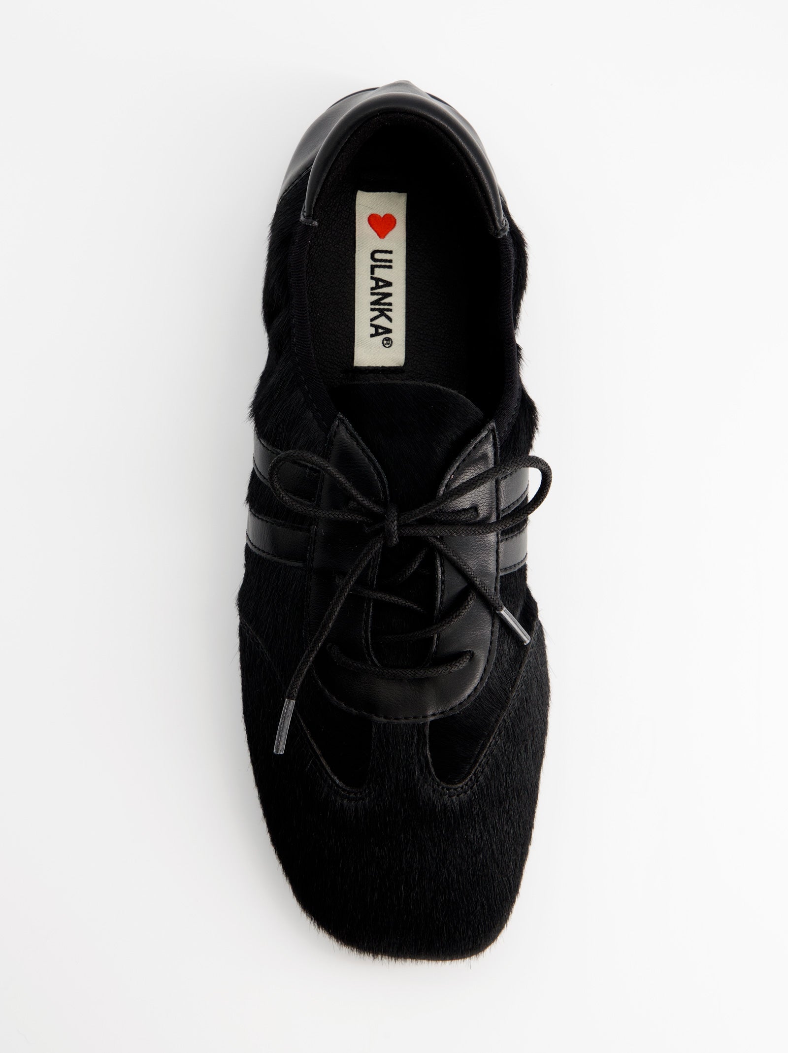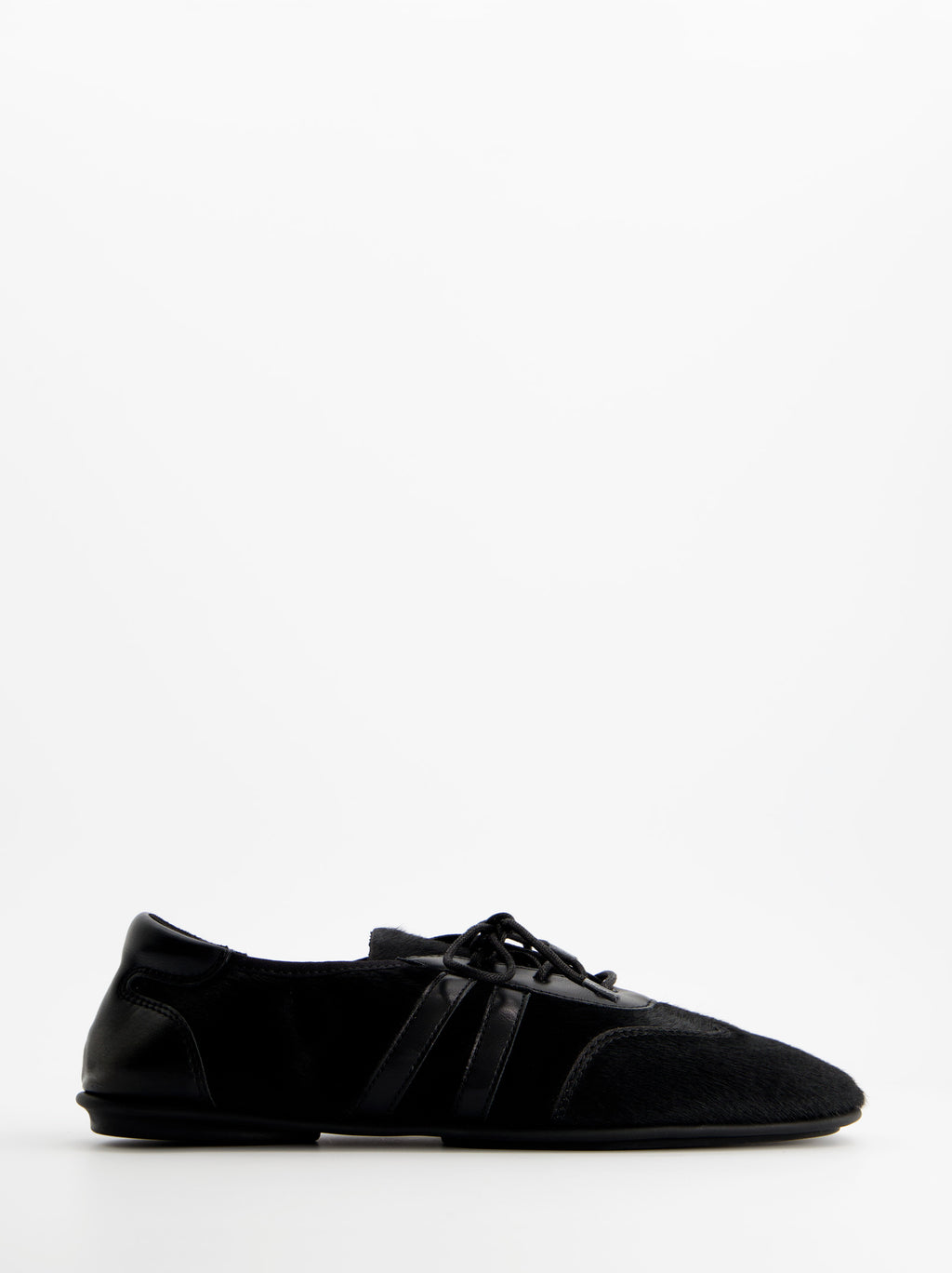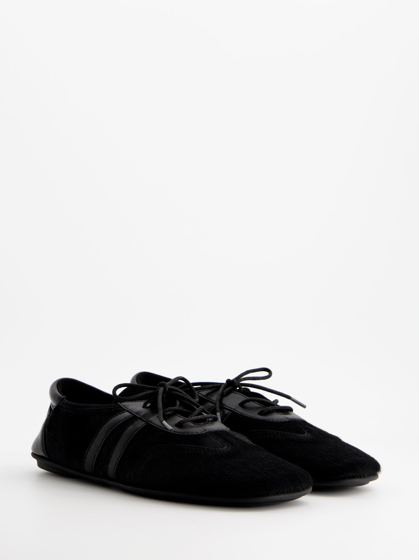 Zapatillas de piel acabadas en pelo estilo deportivas. Suela de 1 cm.