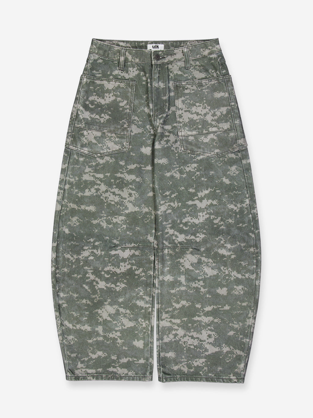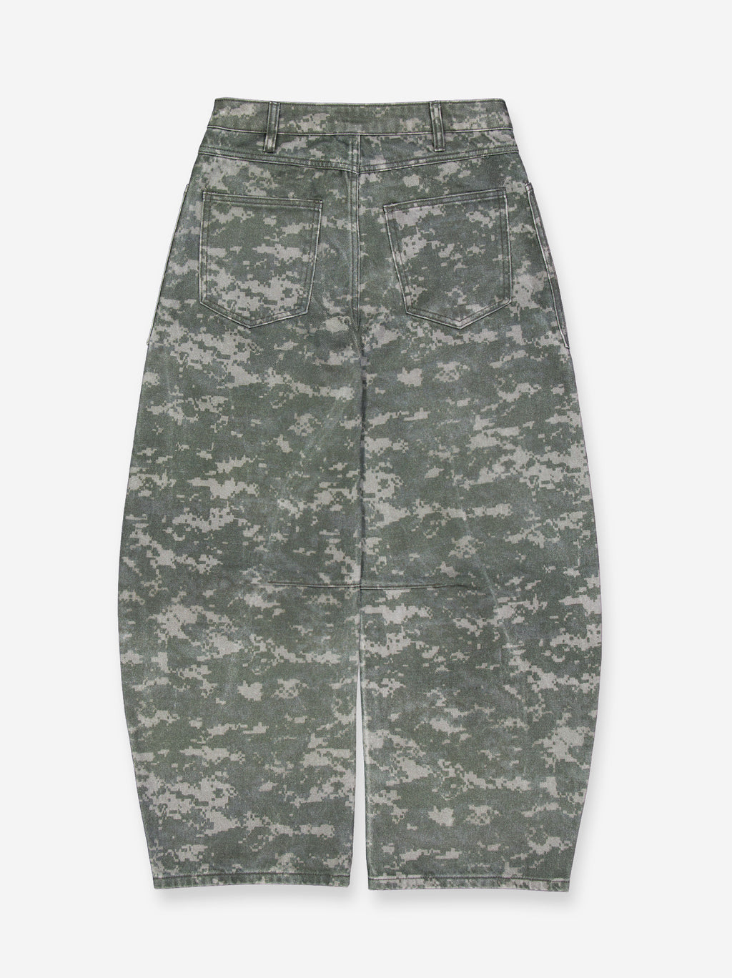 Jeans balloon de tiro medio estampado camuflaje. Cuatro bolsillos. Detalle de costuras a la altura de la rodilla. Cierre frontal con cremallera y botón metálico.