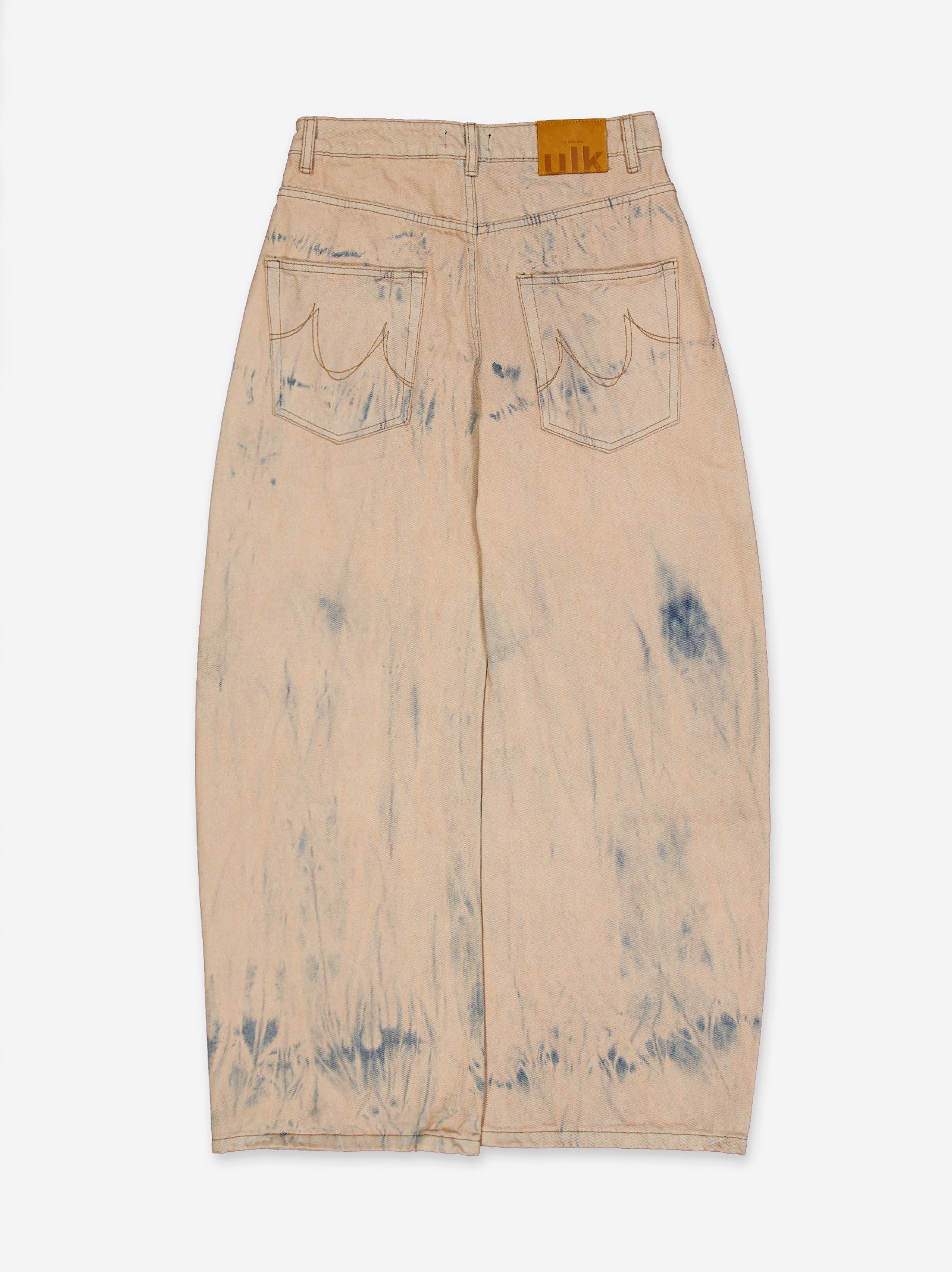 Jeans baggy de tiro medio con cinco bolsillos. Cierre frontal con cremallera y botón metálico.