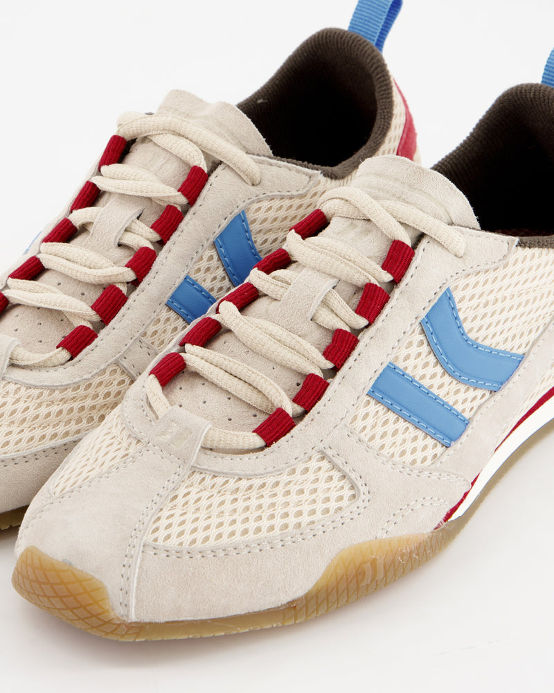 Las zapatillas Coolway MILE ofrecen un estilo retro con una suela fina que combina tejido nylon con piel y detalles en contraste de color. La lengüeta de tejido deportivo semitransparente y acolchada con foam visible añade un detalle estético único. La suela flexible de goma/caucho asegura durabilidad y agarre, y la mediasuela de phylon proporciona ligereza y comodidad.