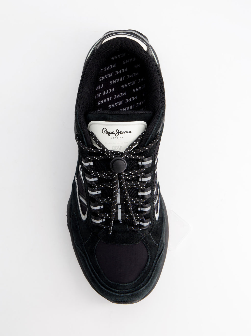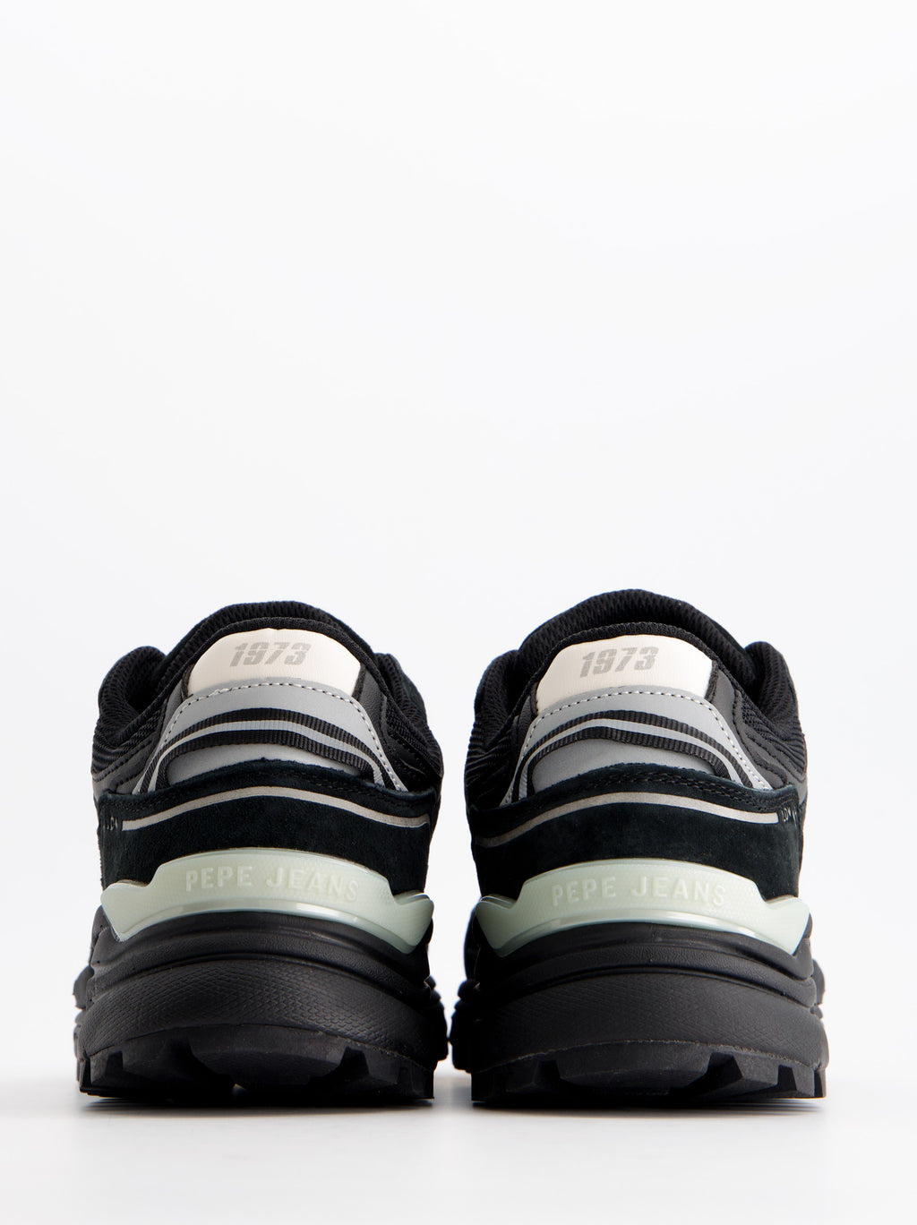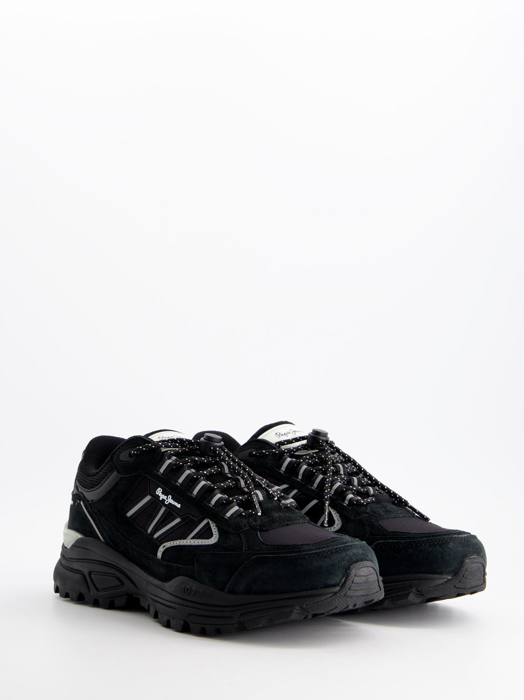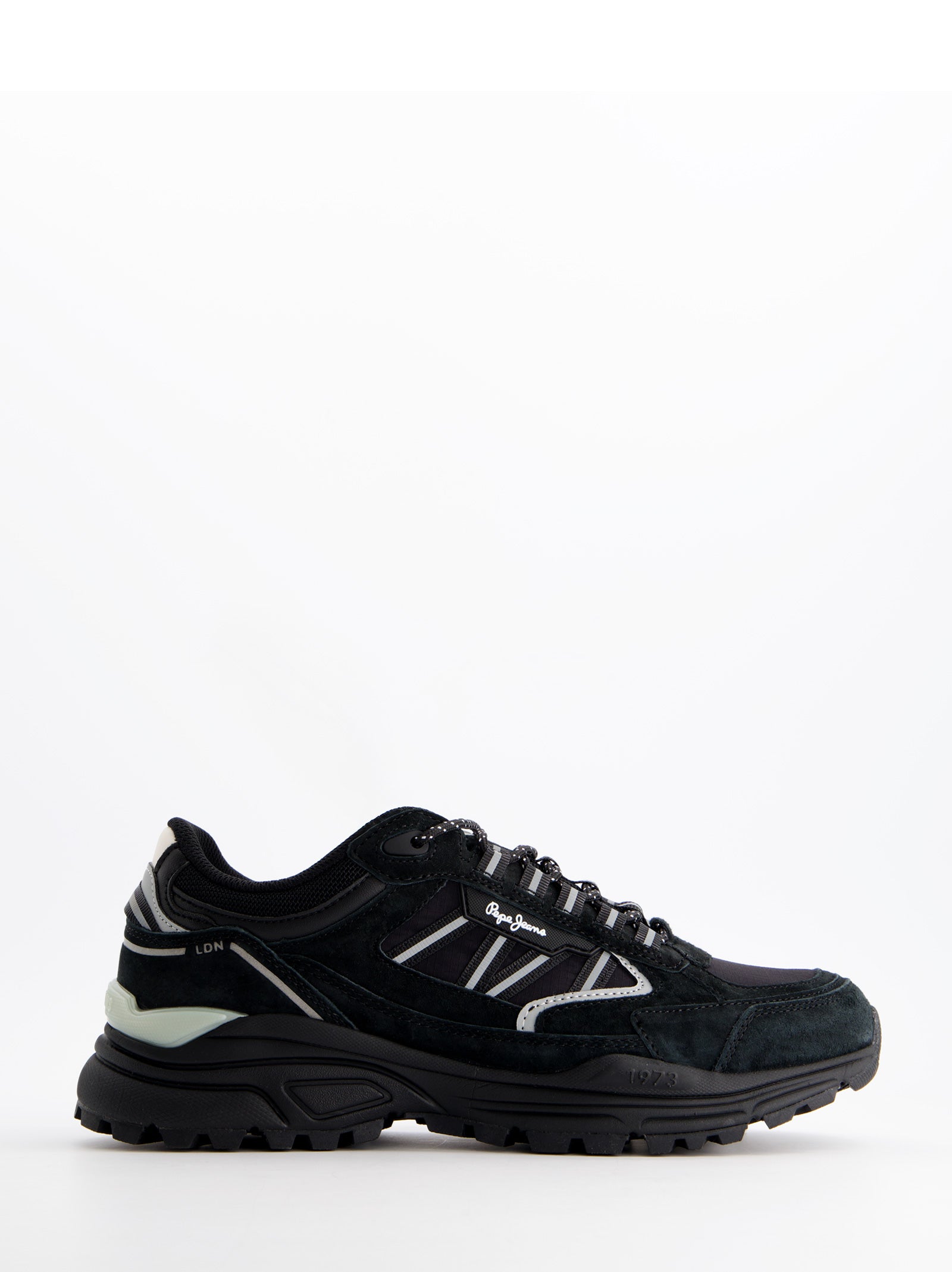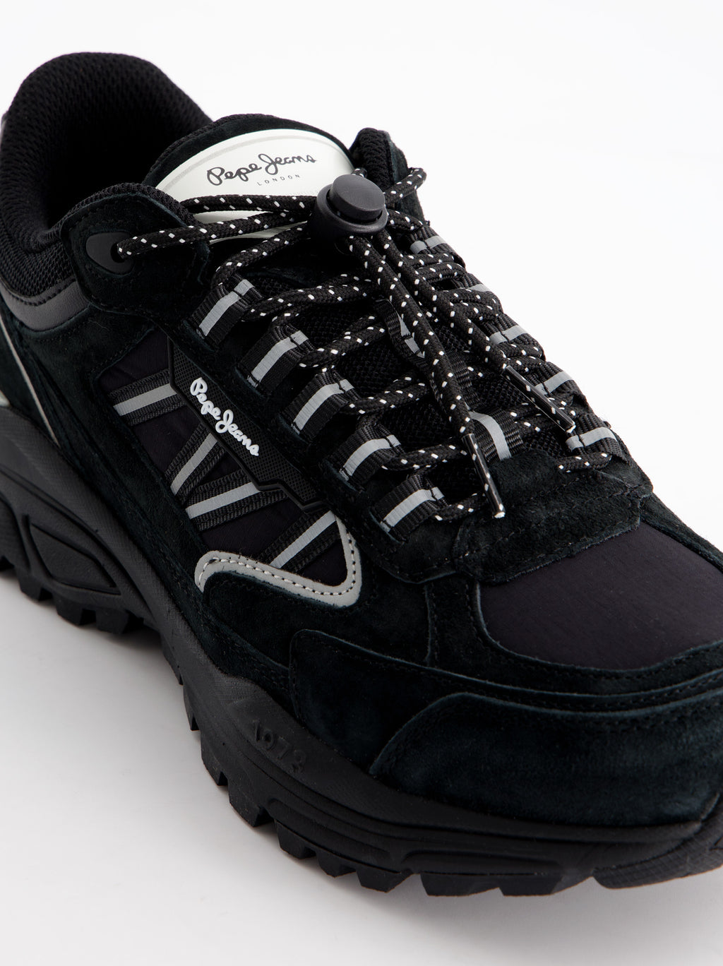 Zapatillas confeccionadas en piel para hombre. Diseñadas para combinar la funcionalidad de las zapatillas de trekking con una estética urbana. Inspiradas en las zapatillas de running de los 90, pero con una suela robusta y contemporánea de 5 cm. Cierre acordonado.