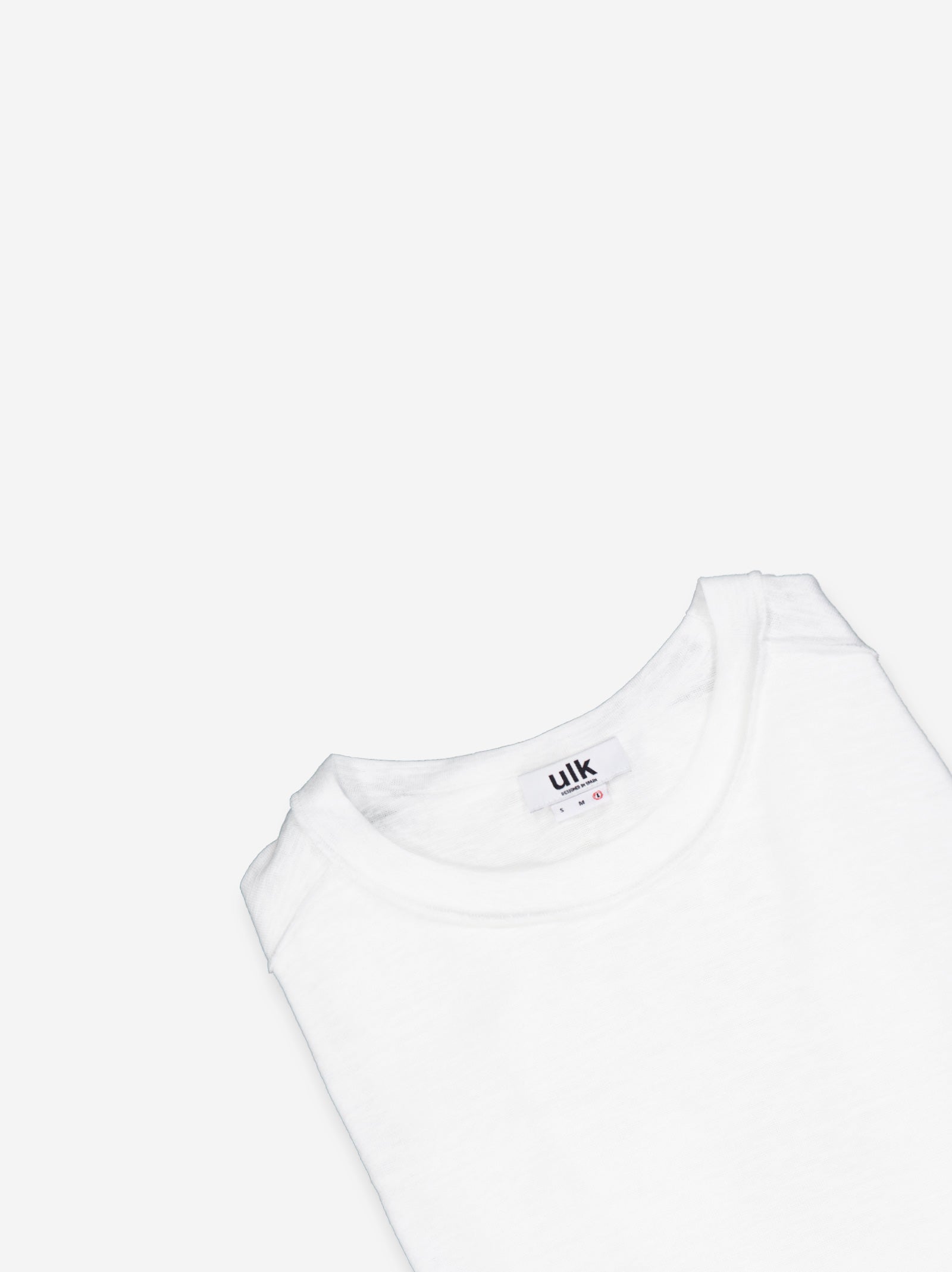 Camiseta básica blanca con diseño versátil. Cuello redondo. Tejido ligero y corte relajado. Perfecta para looks casuales o base para cualquier outfit.