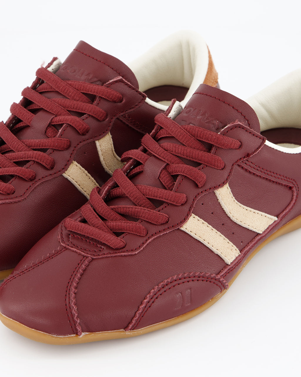Zapatilla con estilo retro, confeccionada en piel. Cordones intercambiables. Suela de 2 cm.