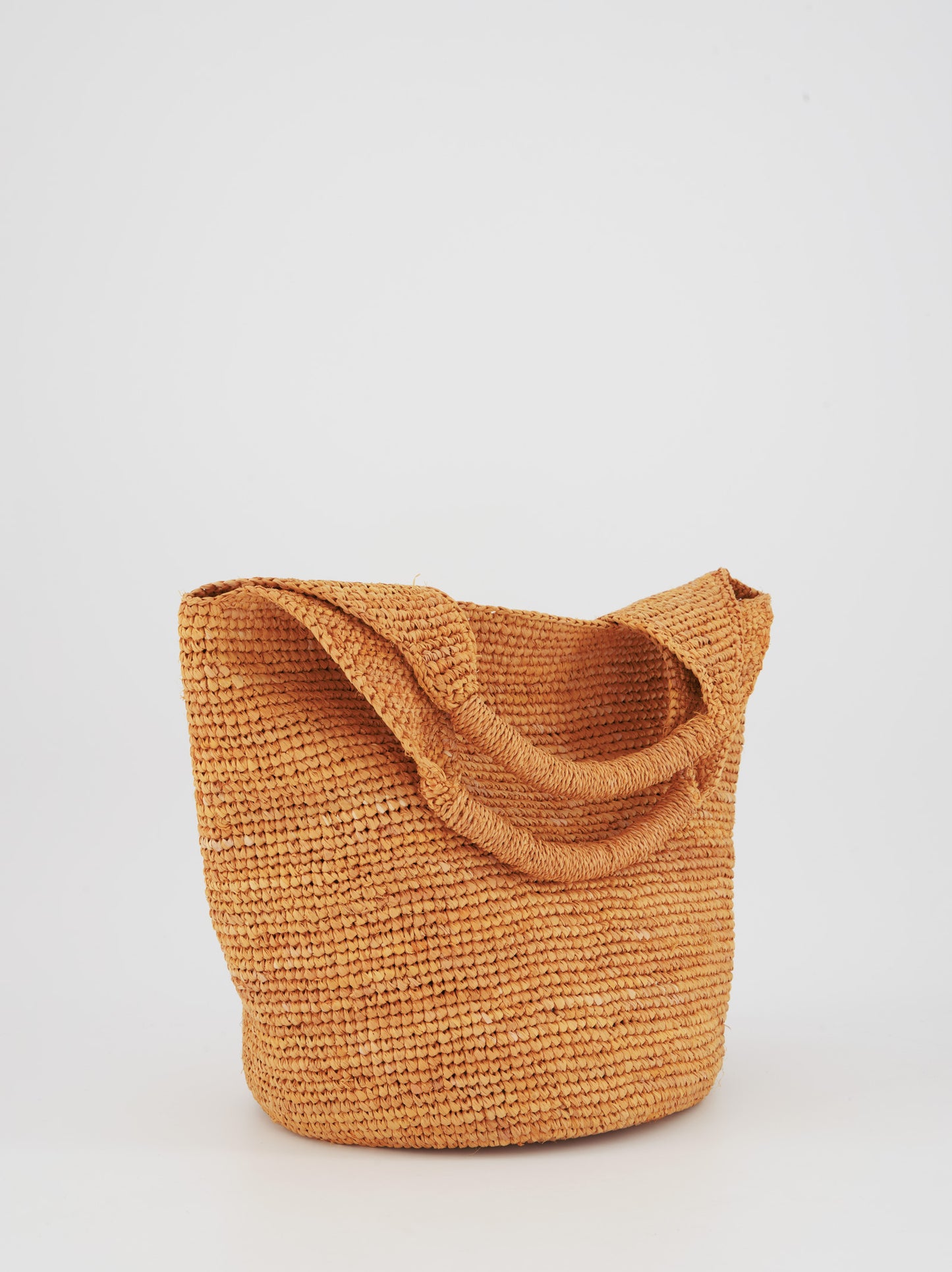 Braided raffia handbag. Sack style. Reinforced handle. Measurements: 37 x 33 cm.