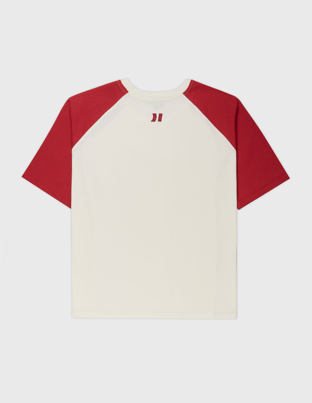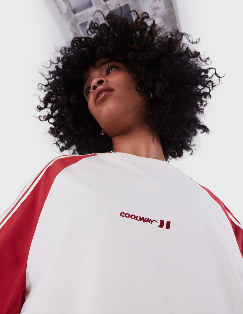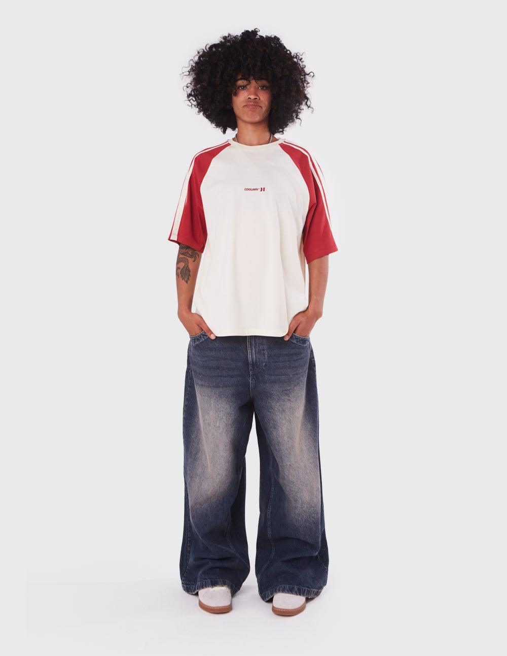 Washed cropped T-shirt. 160gsm single jersey. Embroidered print. 100% cotton. The model is 1.82m tall and is wearing a size L.