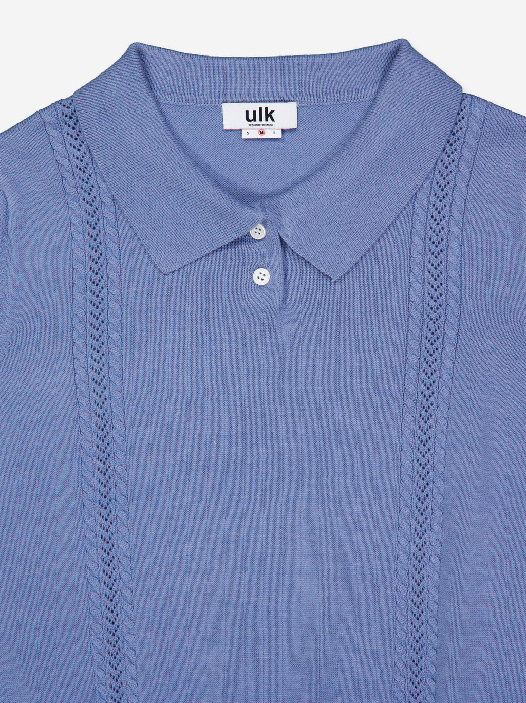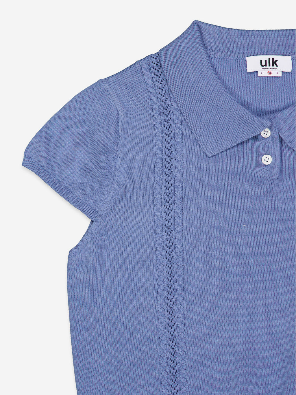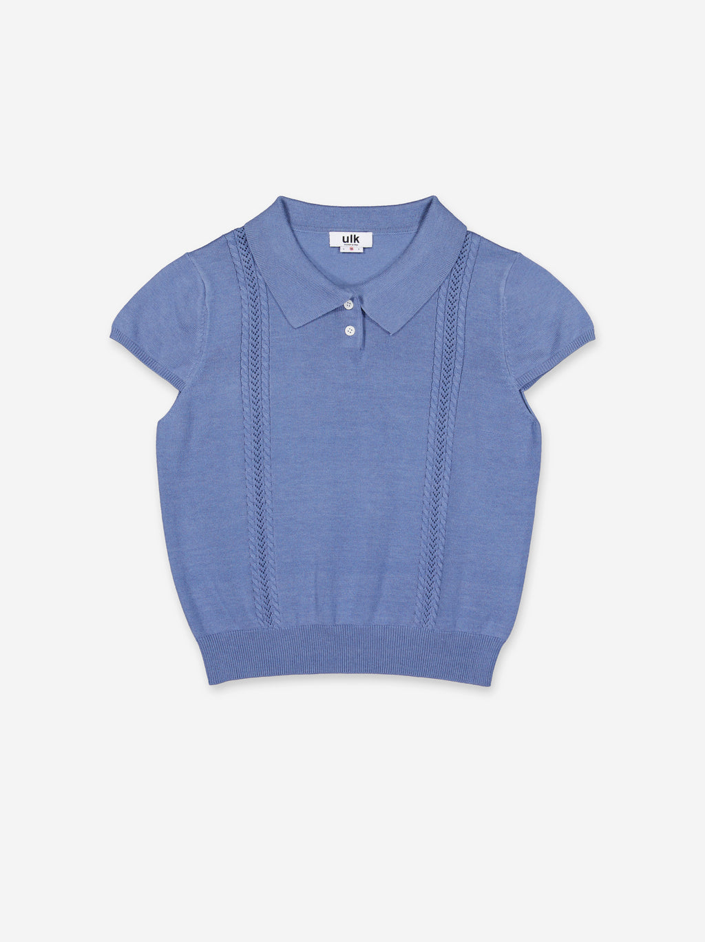 Knit top with a polo neck and short sleeves. Button-front closure. Fitted at the waist.
