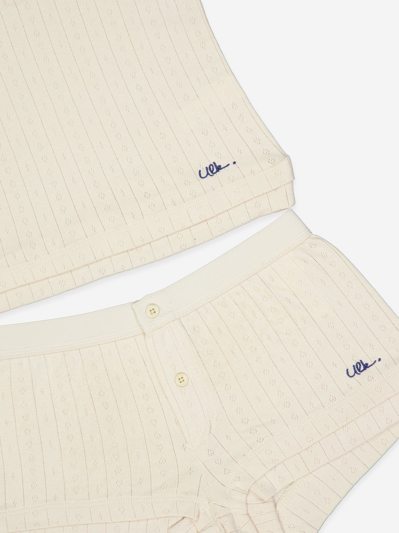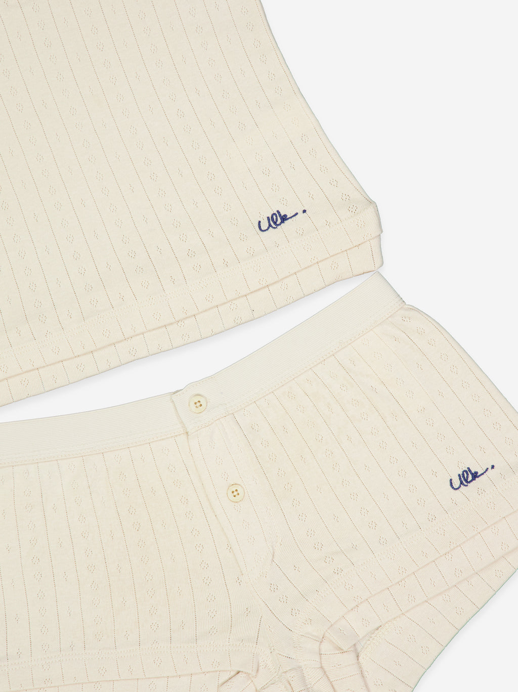 Cotton pointelle T-shirt and culottes set. Double-needle effect. Embroidered logo.