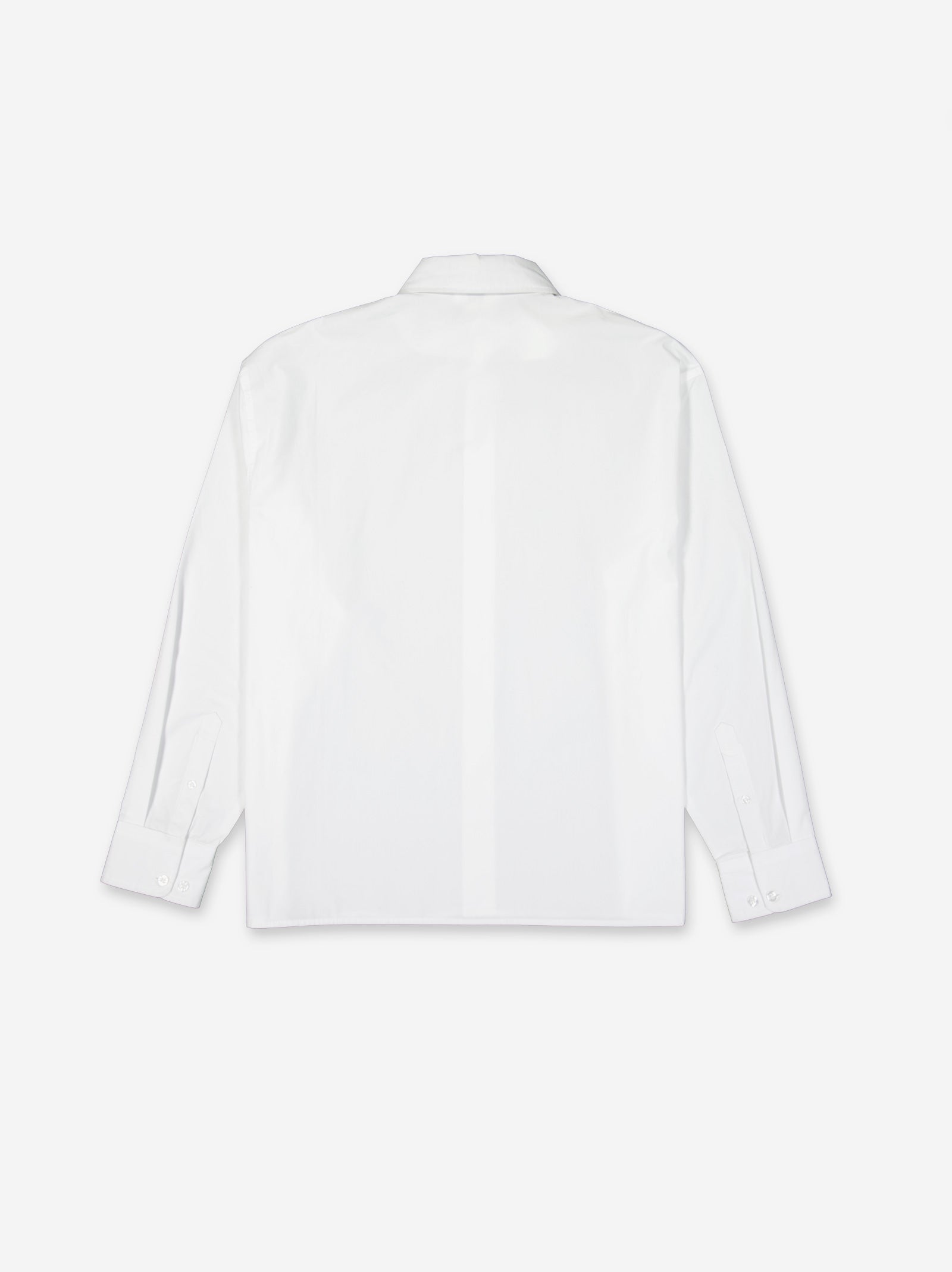 Regular-fit white shirt. Open collar and long sleeves with buttoned cuffs. Front button closure.