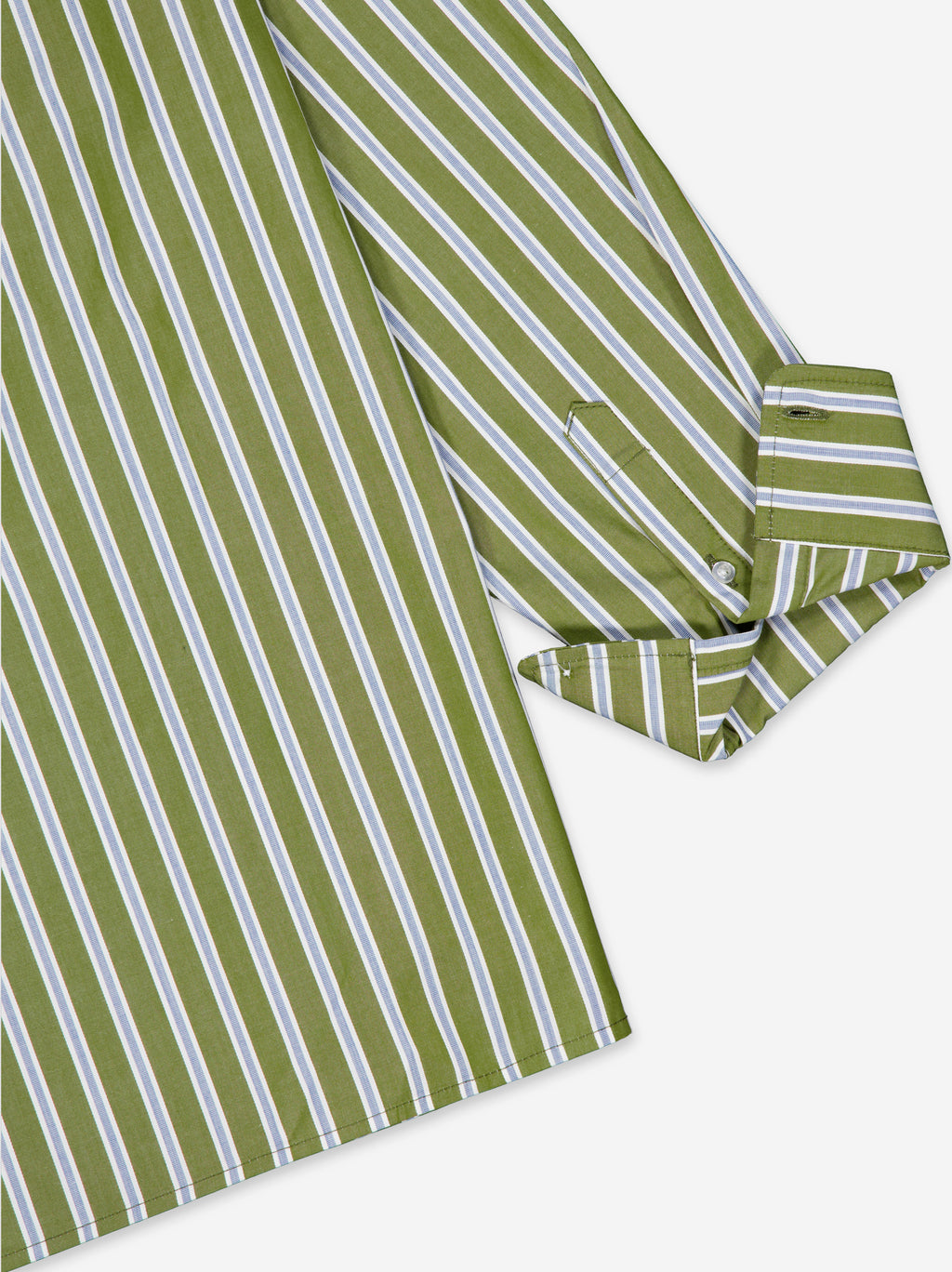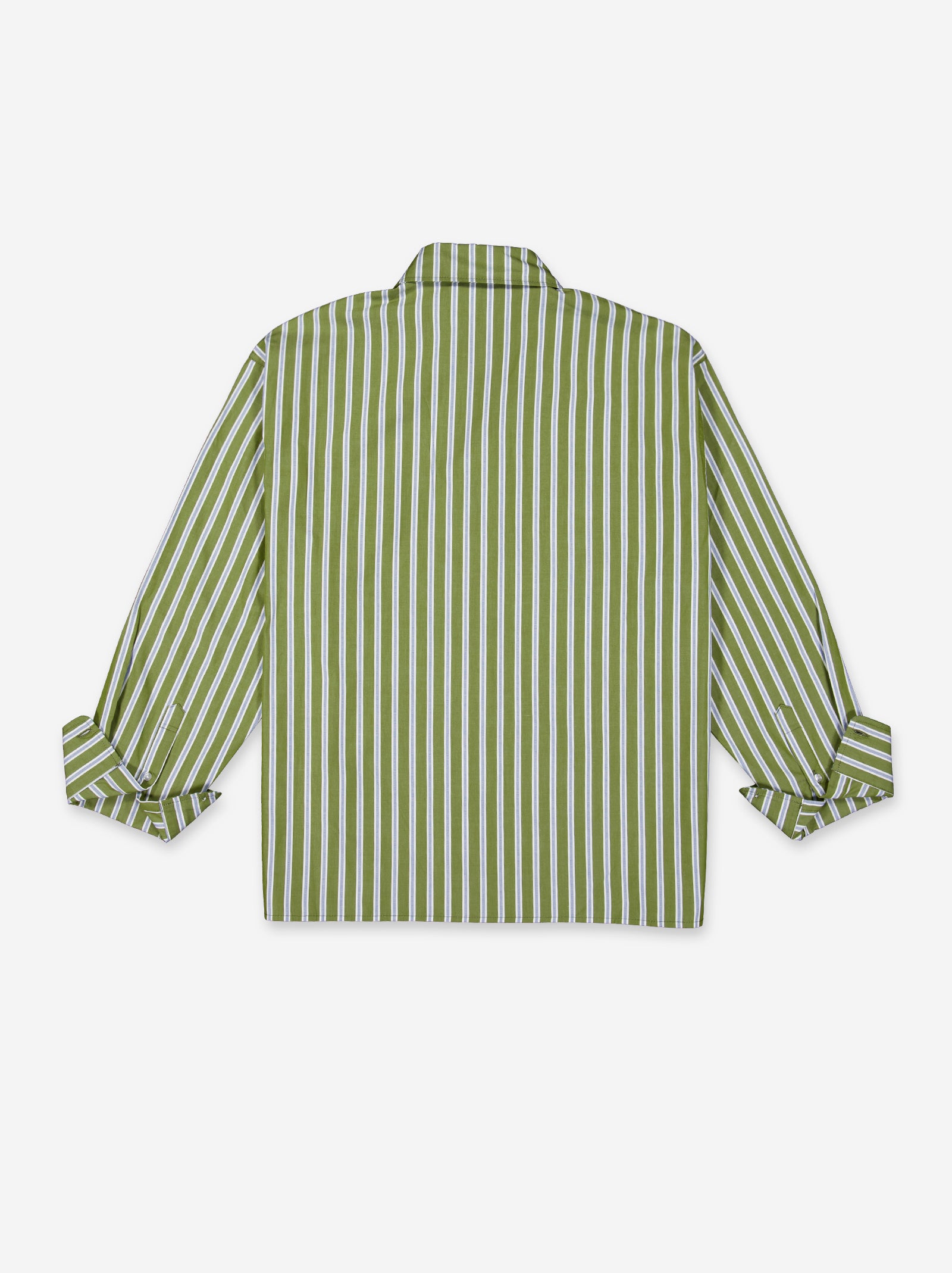 Striped poplin shirt with a lapel collar and long sleeves. Button-front closure.