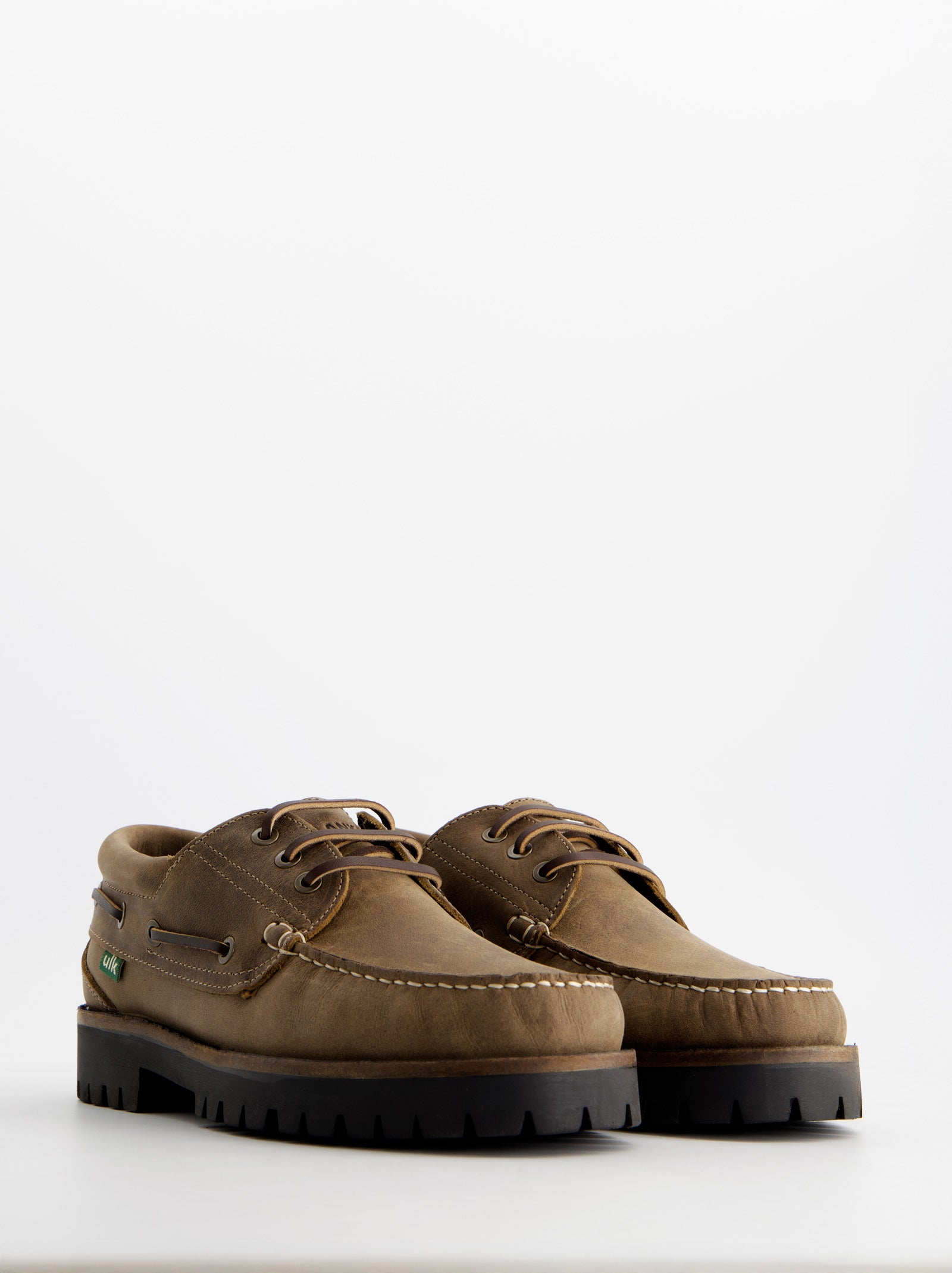 Brown leather boat shoes. They have a timeless, traditional feel with a contemporary, modern twist. Designed for everyday comfort and versatility. The thick 3cm sole provides a casual look.