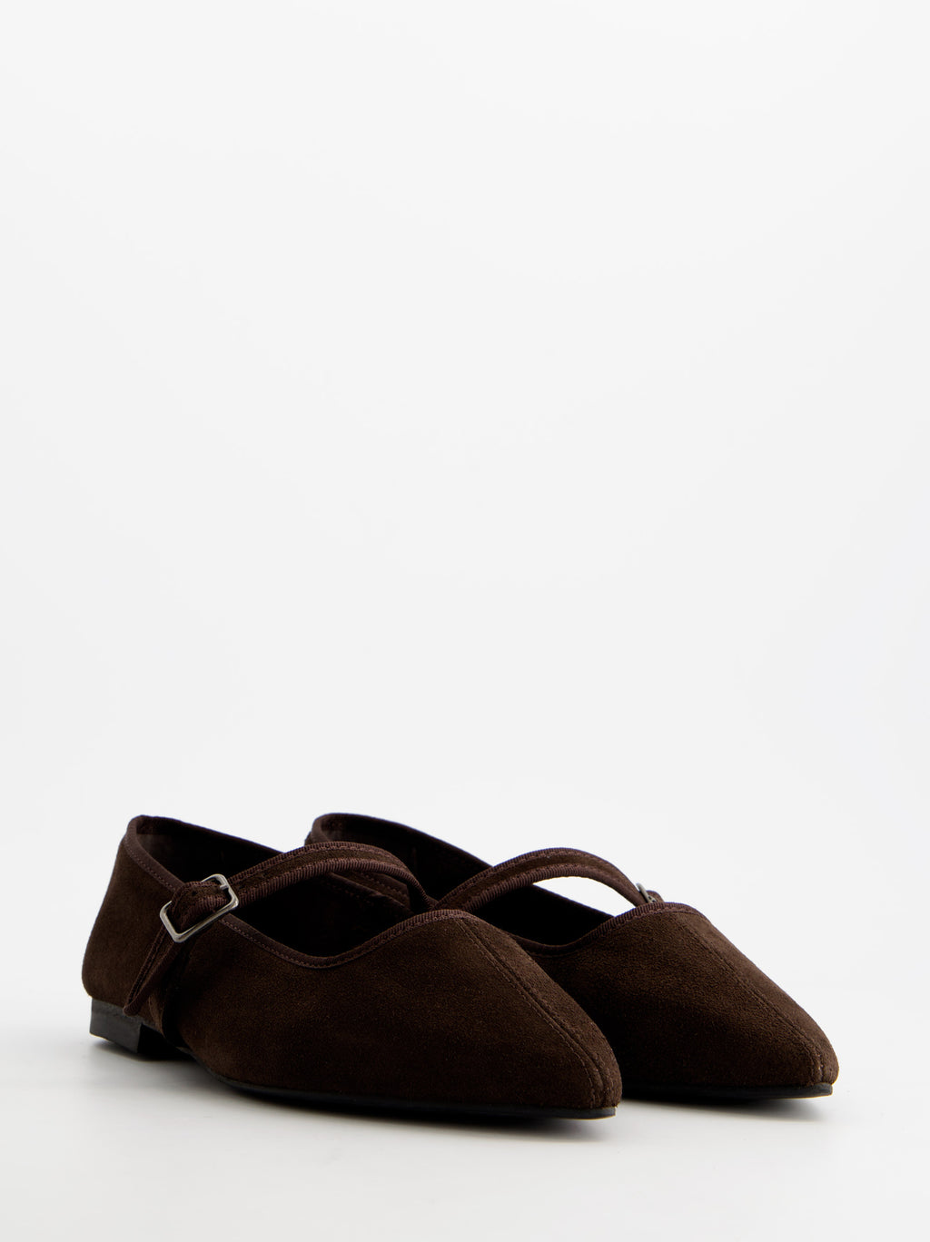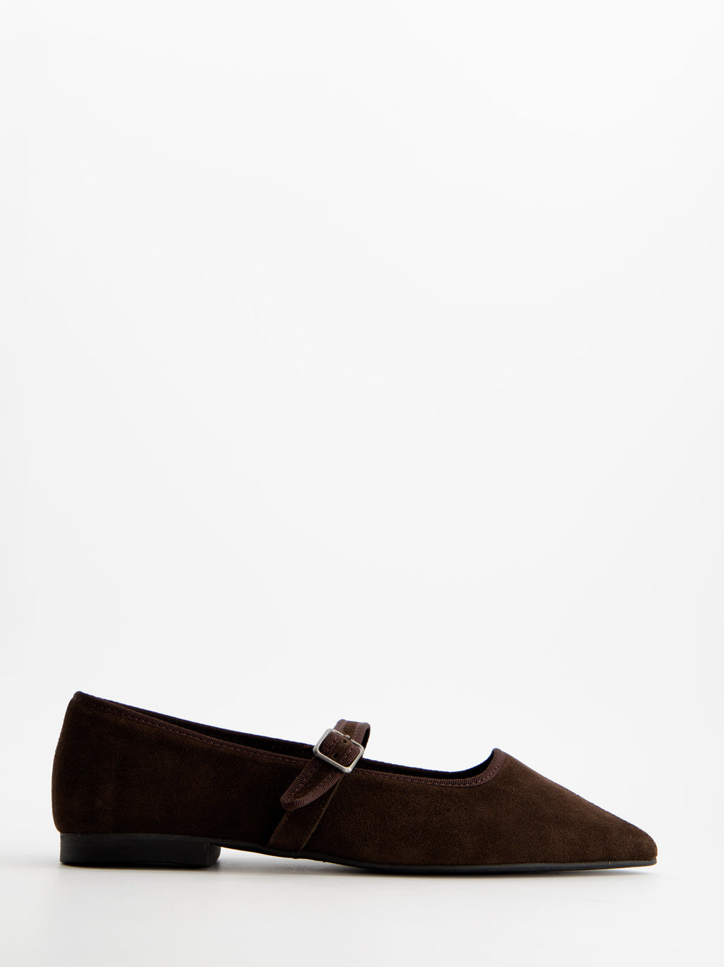Mary Jane-style pointed-toe ballet flats. Made of leather. A sophisticated, elegant, and minimalist design ensures a clean and comfortable silhouette. A strap fastens over the instep with a metal buckle. 1 cm sole.