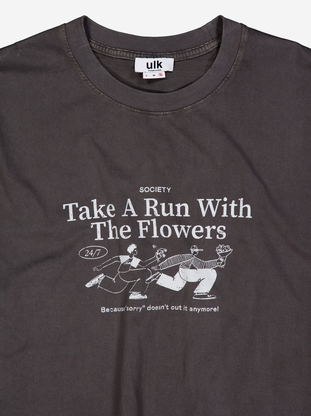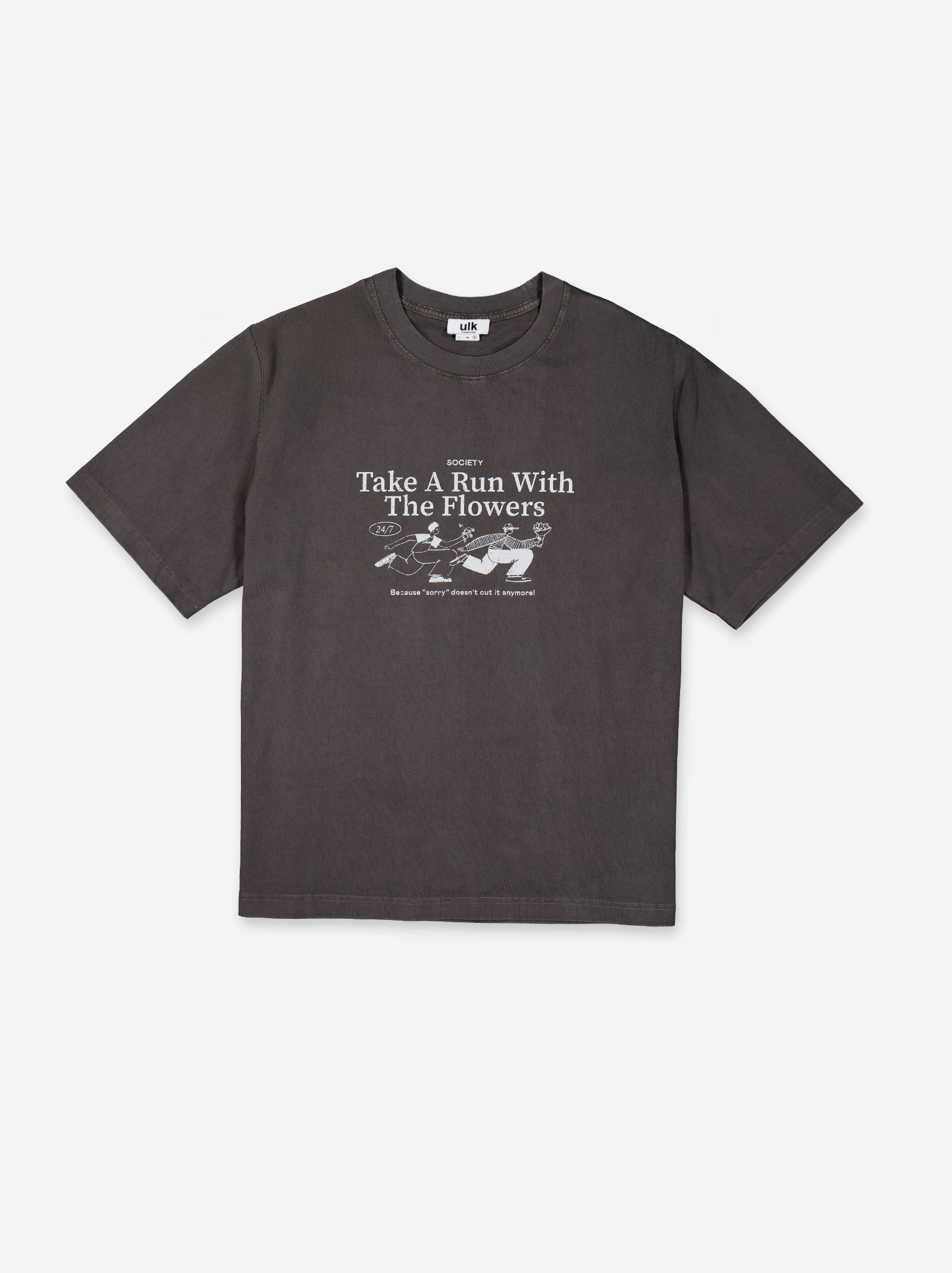 Relaxed boxy fit T-shirt. Round neck and short sleeves. Contrast prints on the front.