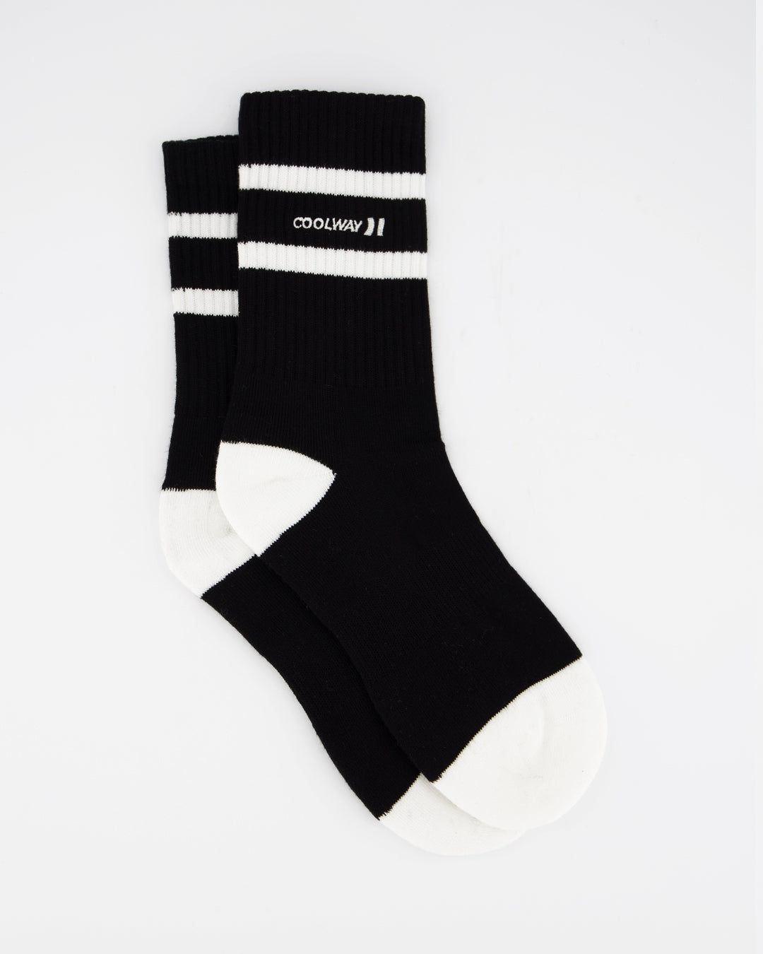 Socks knitted with stretch cotton yarn and embroidered logos at the ankle. Ribbed seams for a softer, more comfortable feel.