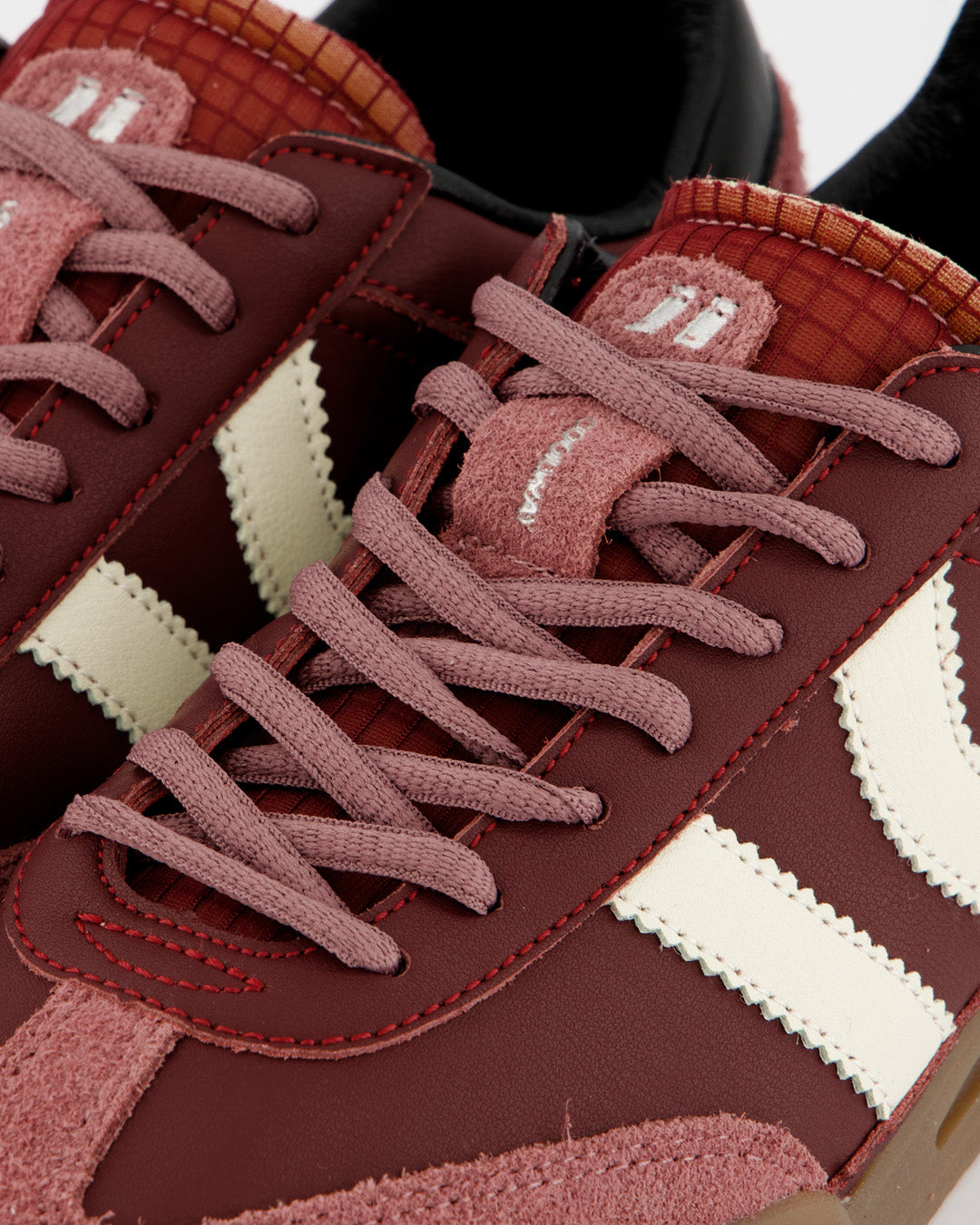 Sporty sneaker combining leather with suede and contrasting color details. Semi-transparent, foam-padded tongue with visible upper. Leather lining visible. Interchangeable two-tone oval laces. Lightly padded collar. Flexible rubber sole for durability and grip with gel inserts on the sides and back. The "GRASS" model name is embossed on the side in silver.
