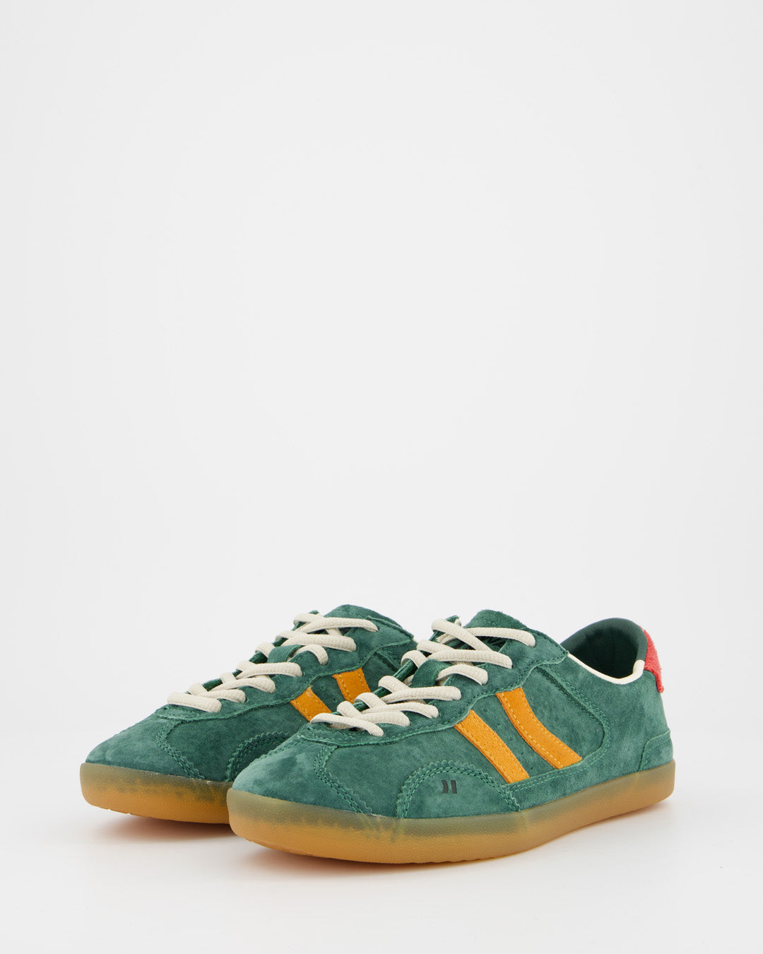 Low-top sneakers made of suede leather. Simple and classic cut with lace-up fastening. The heel piece and the logo contrast both in color and texture. The padded foam insole has a printed multi-logo design. The leather lining contrasts on the back following the tone of the upper. The lightweight rubber sole in honey colors has a stitching on the base that reinforces the union between the upper and the sole itself.