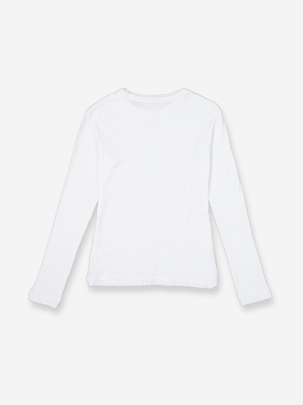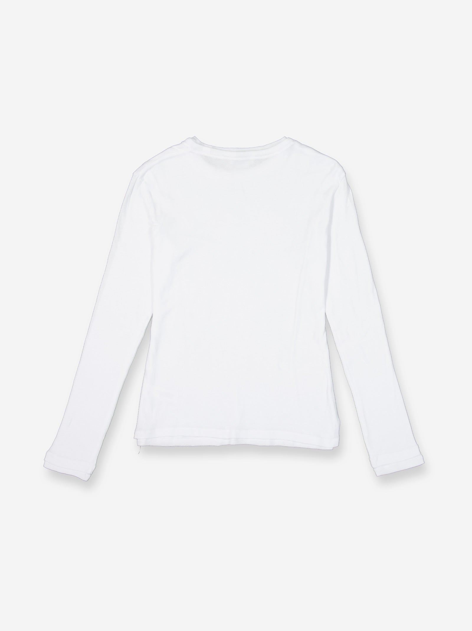 Camiseta de manga larga con cuello redondo y doble capa. Es una pieza base esencial y versátil, ideal para añadir textura y profundidad a cualquier look casual.