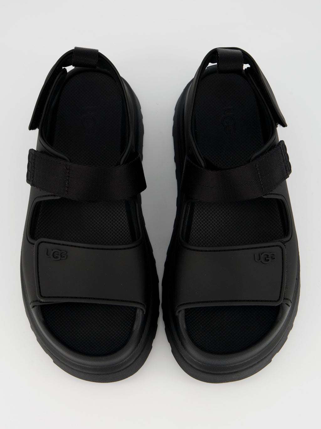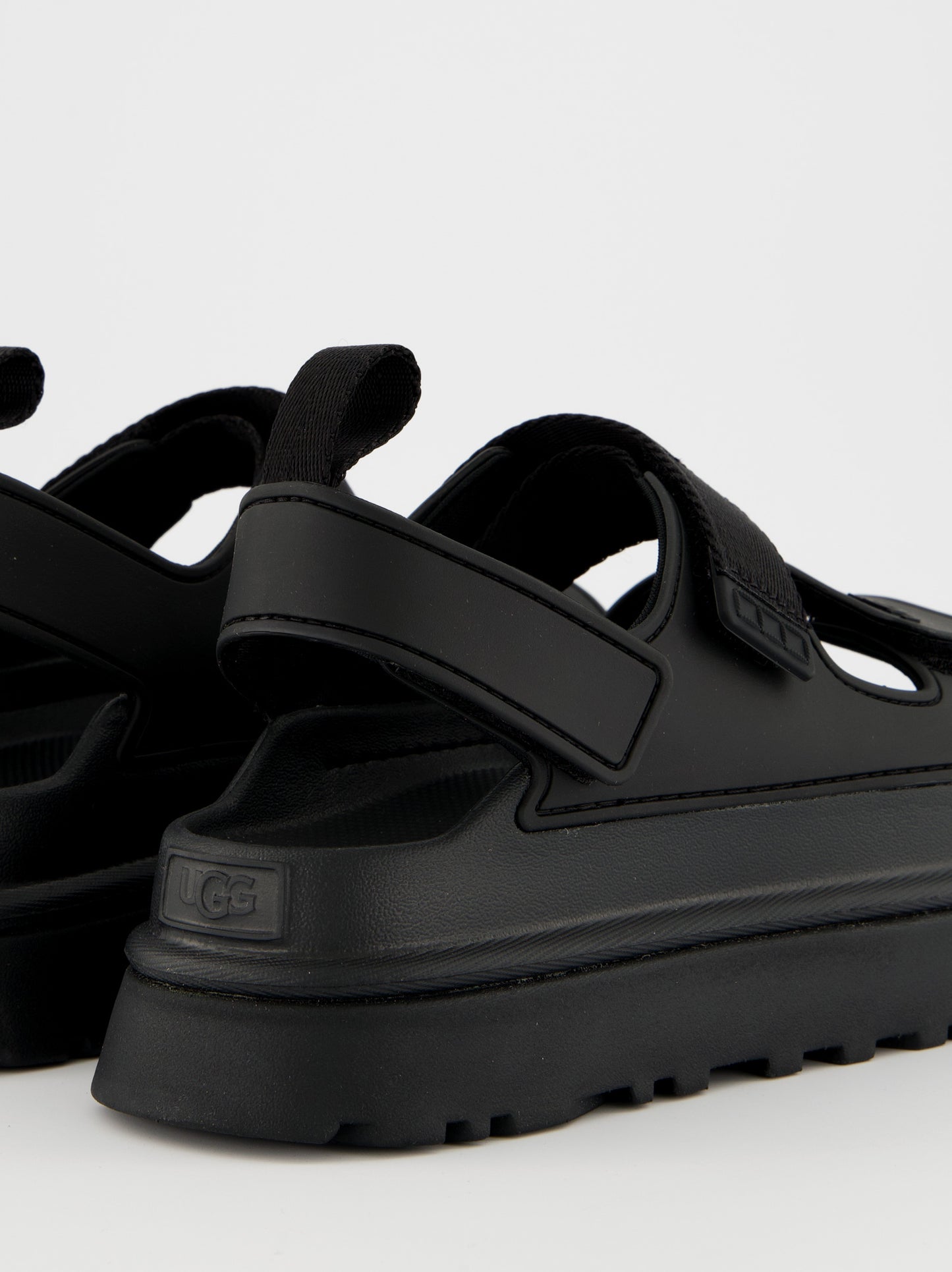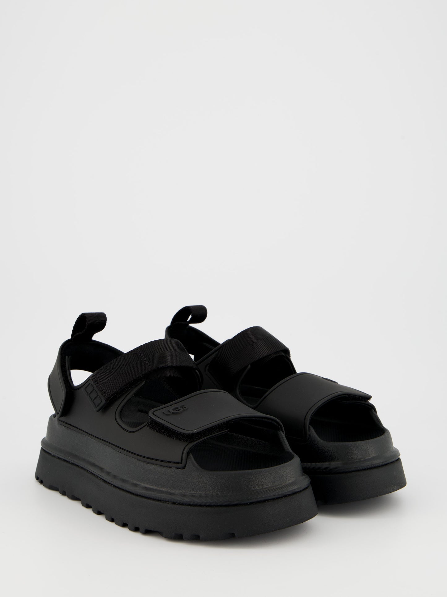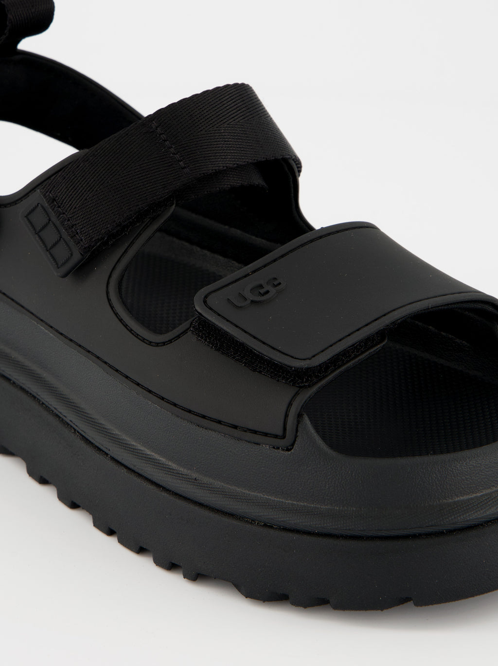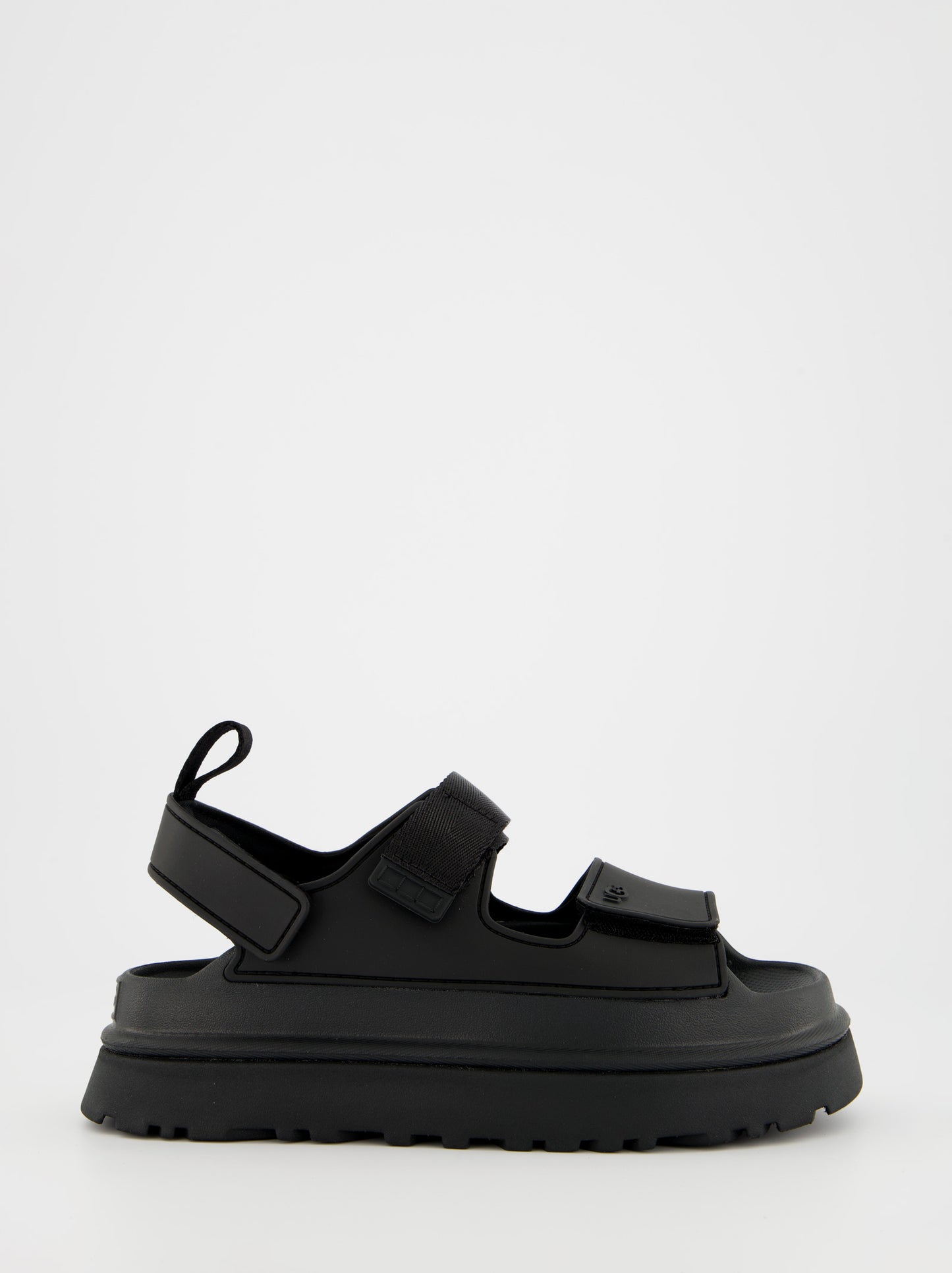 GoldenGlow sandals are lightweight and fully adjustable. Made with sugarcane EVA, they offer support and a good bounce, rain or shine. They feature a dynamic design thanks to their platform on a grooved sole and a non-slip insole. TPU upper. Back strap made with 100% recycled polyester fibers. Hook-and-loop closure. The straps are made with 100% recycled polyester fibers. The upper lining fabric is made with 100% recycled polyester fibers. 5 cm sole.