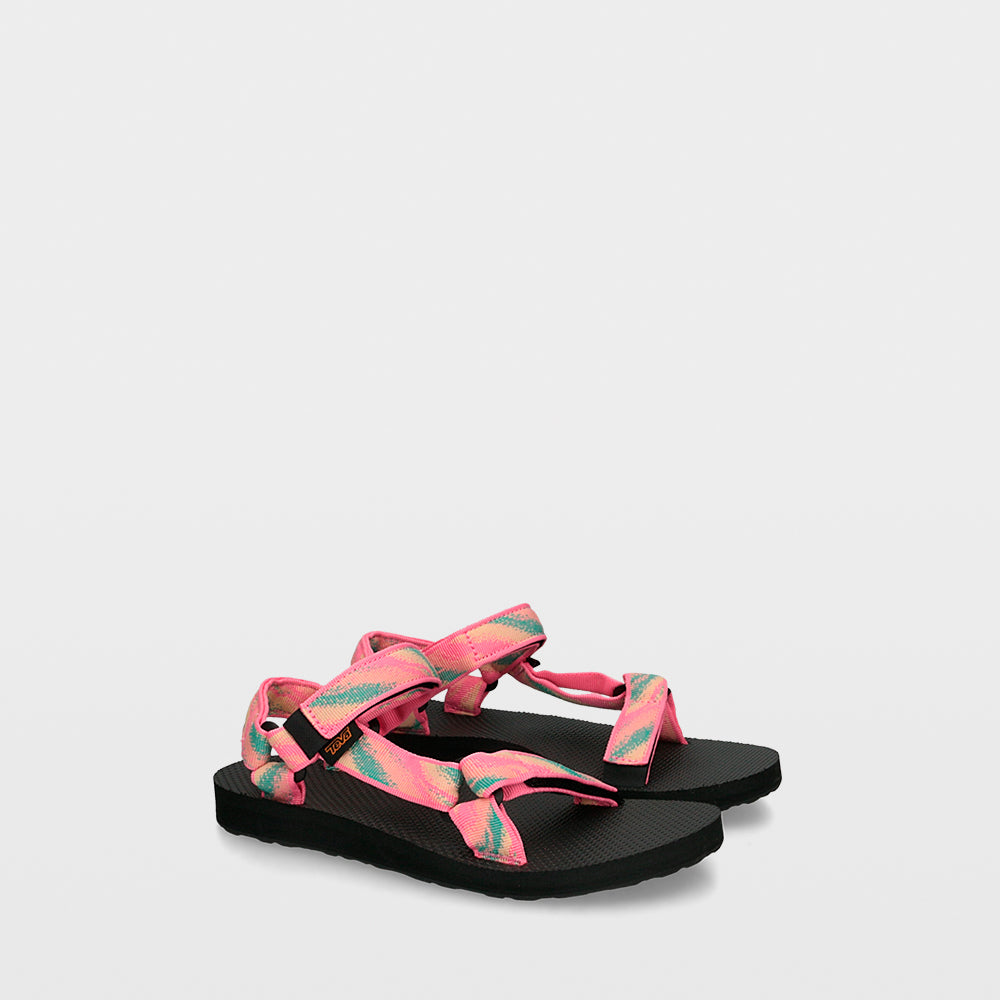 From a raft in the Grand Canyon in 1984 to docks, stairwells and sidewalks around the world, one of Teva’s first sandals is a testament to timeless comfort and utilitarian style. Quick-drying straps made from recycled plastic with traceable and verifiable REPREVE® polyester thread from Unifi® support your foot and withstand abuse, Universal Strapping System™. Multiple points of adjustment allow you to achieve an absolutely perfect fit. Simple hook-and-loop closure quickly puts on and takes off and gets the perfect fit. Molded EVA midsole with heel cup and arch support for added support. Rubber outsole for durability and traction.
