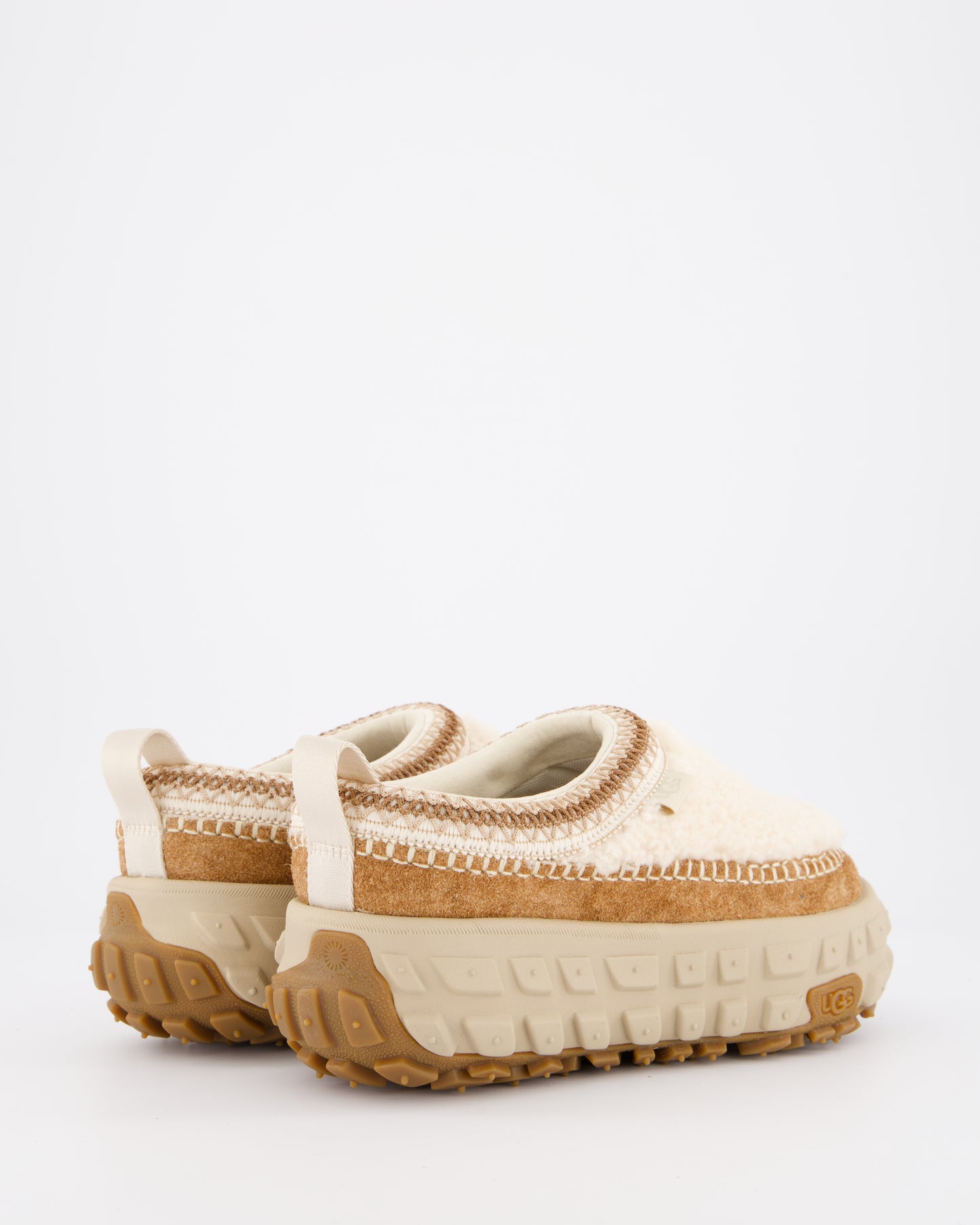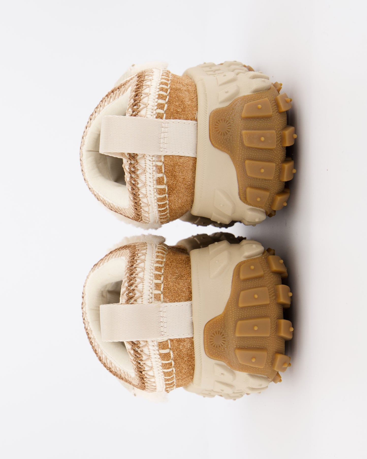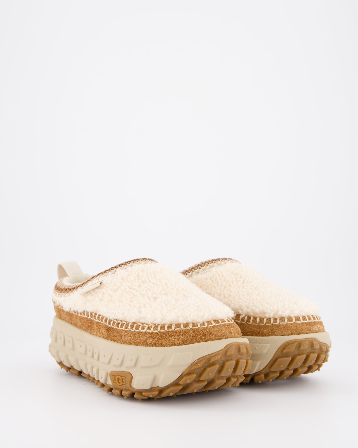 Sheepskin clogs. Fur interior. 5 cm track sole. Fabric and synthetic interior.