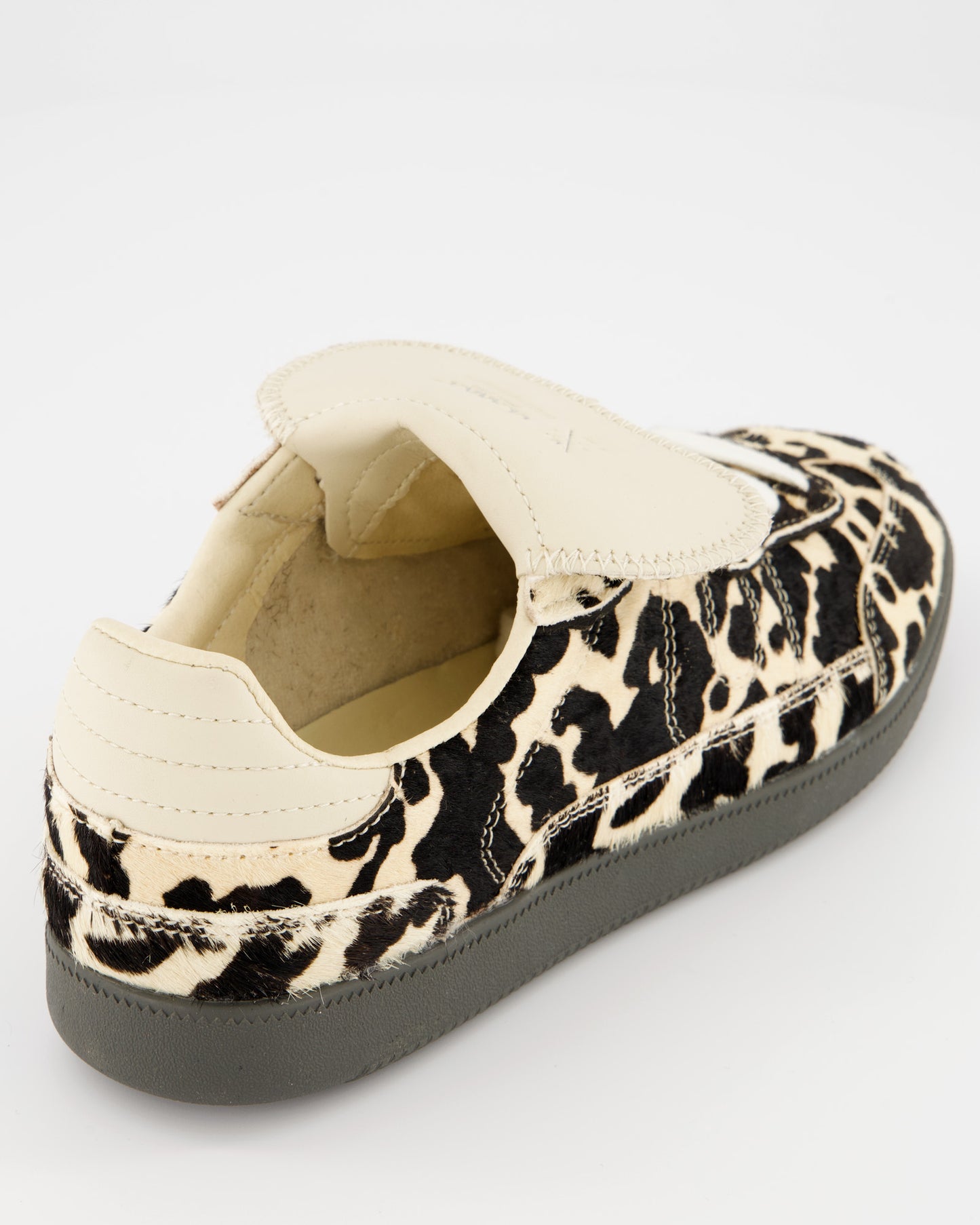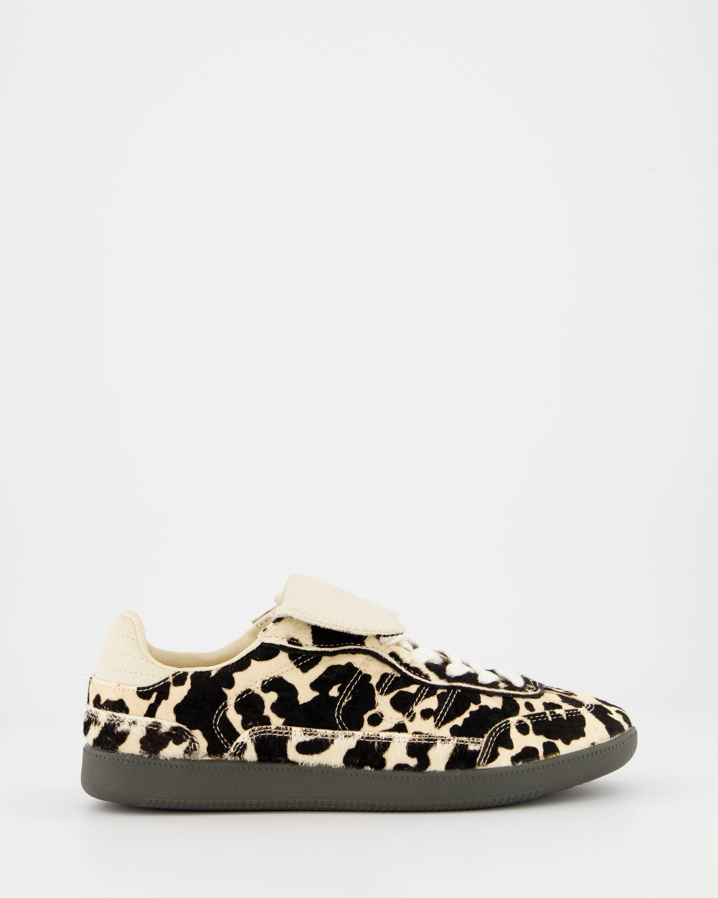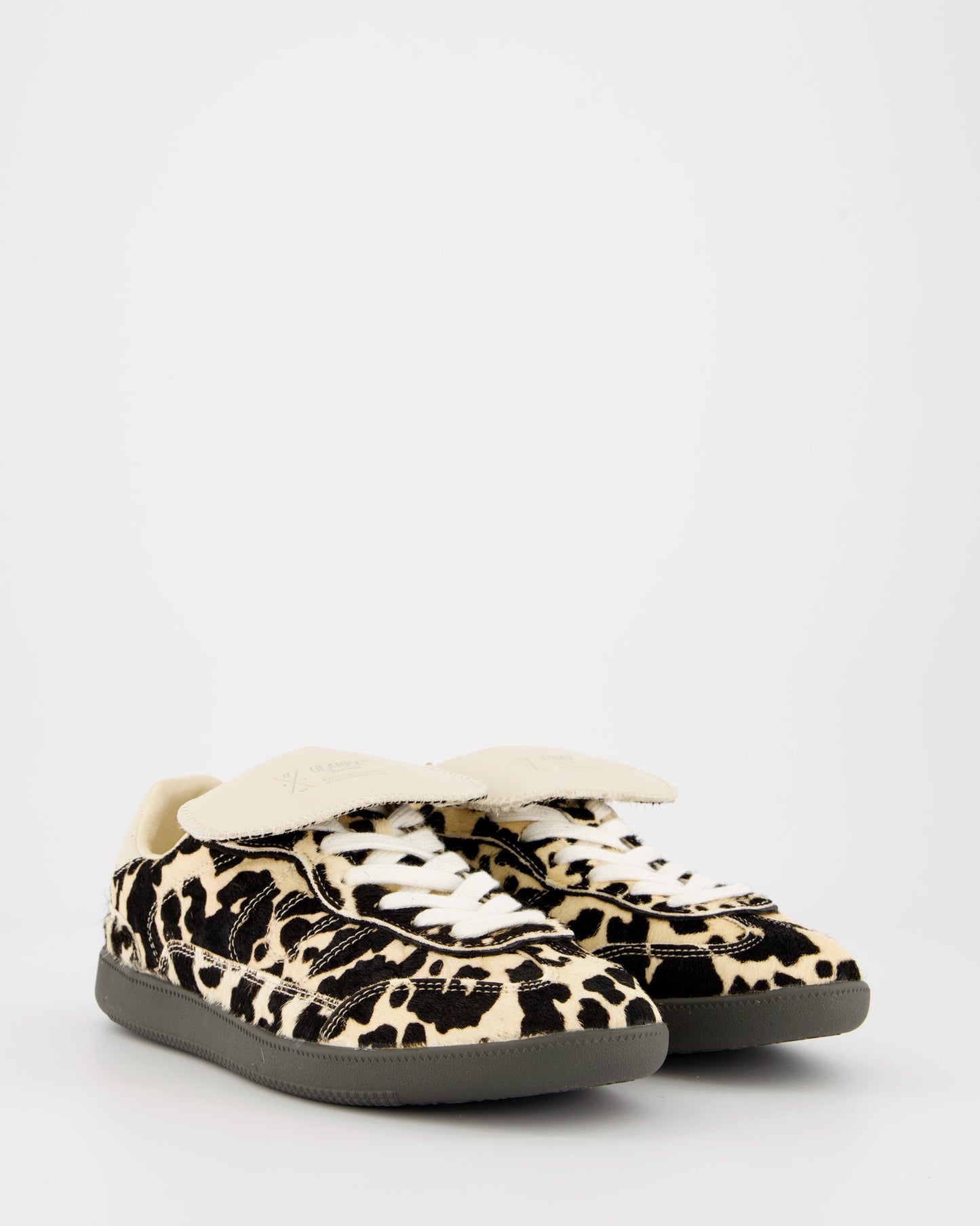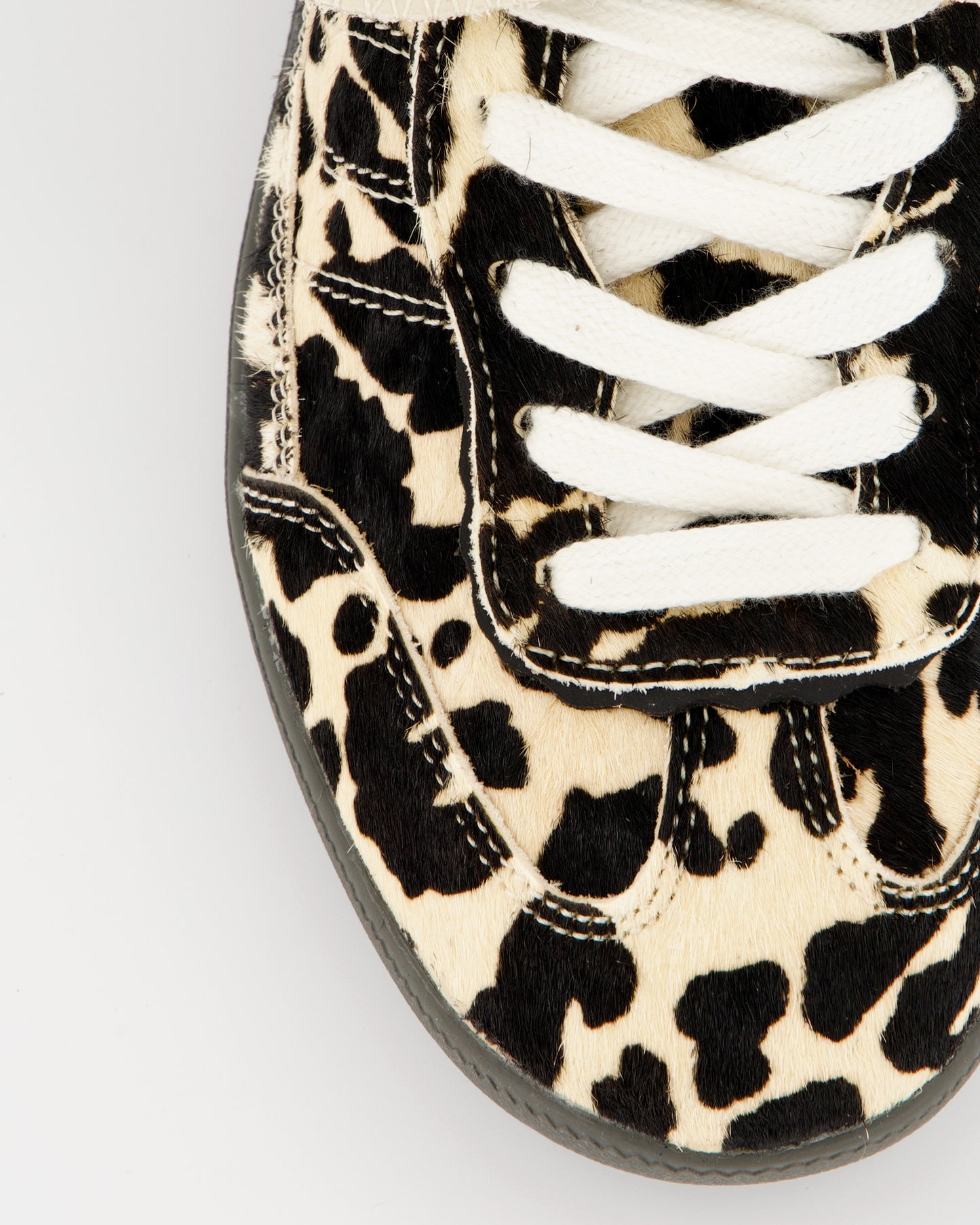 Sneakers with decorative multi-position tab. Cotton lace-up fastening. Made from a combination of fur/leather materials. 2 cm rubber sole.