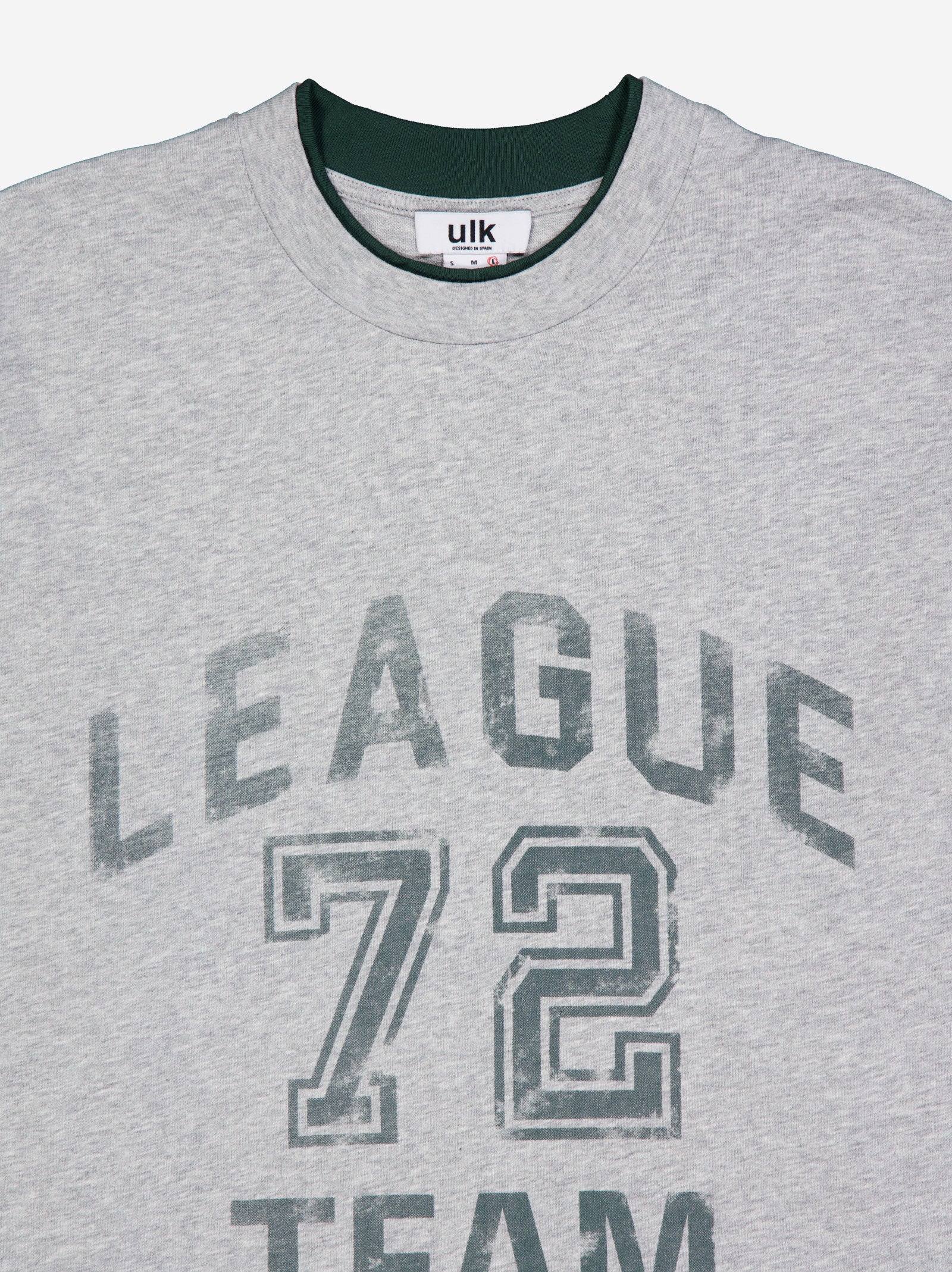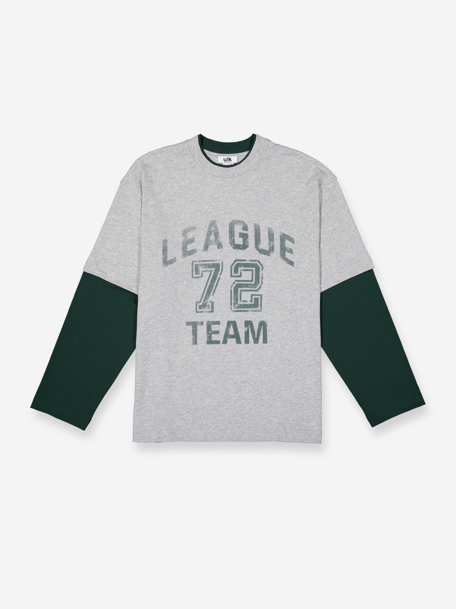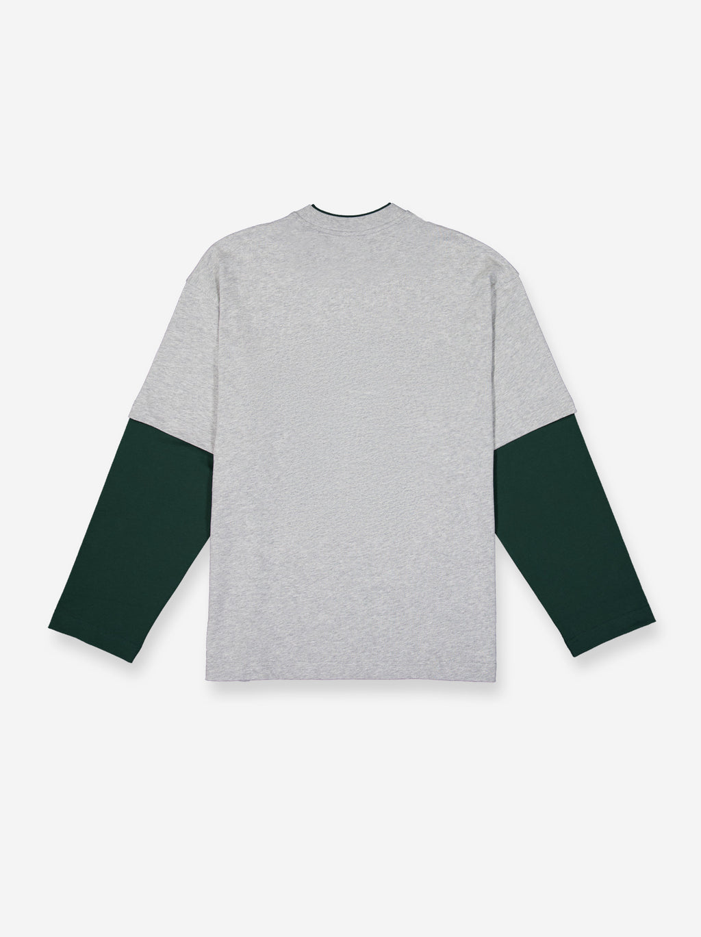 Camiseta doble de manga larga estampada. Cuello redondo. Ajuste cómodo y ligero. Aporta un look vintage, deportivo y casual.
