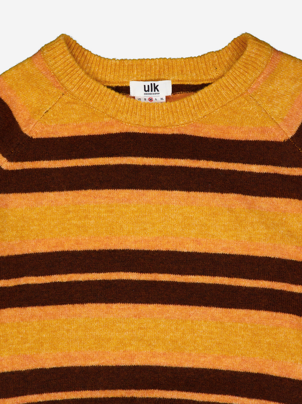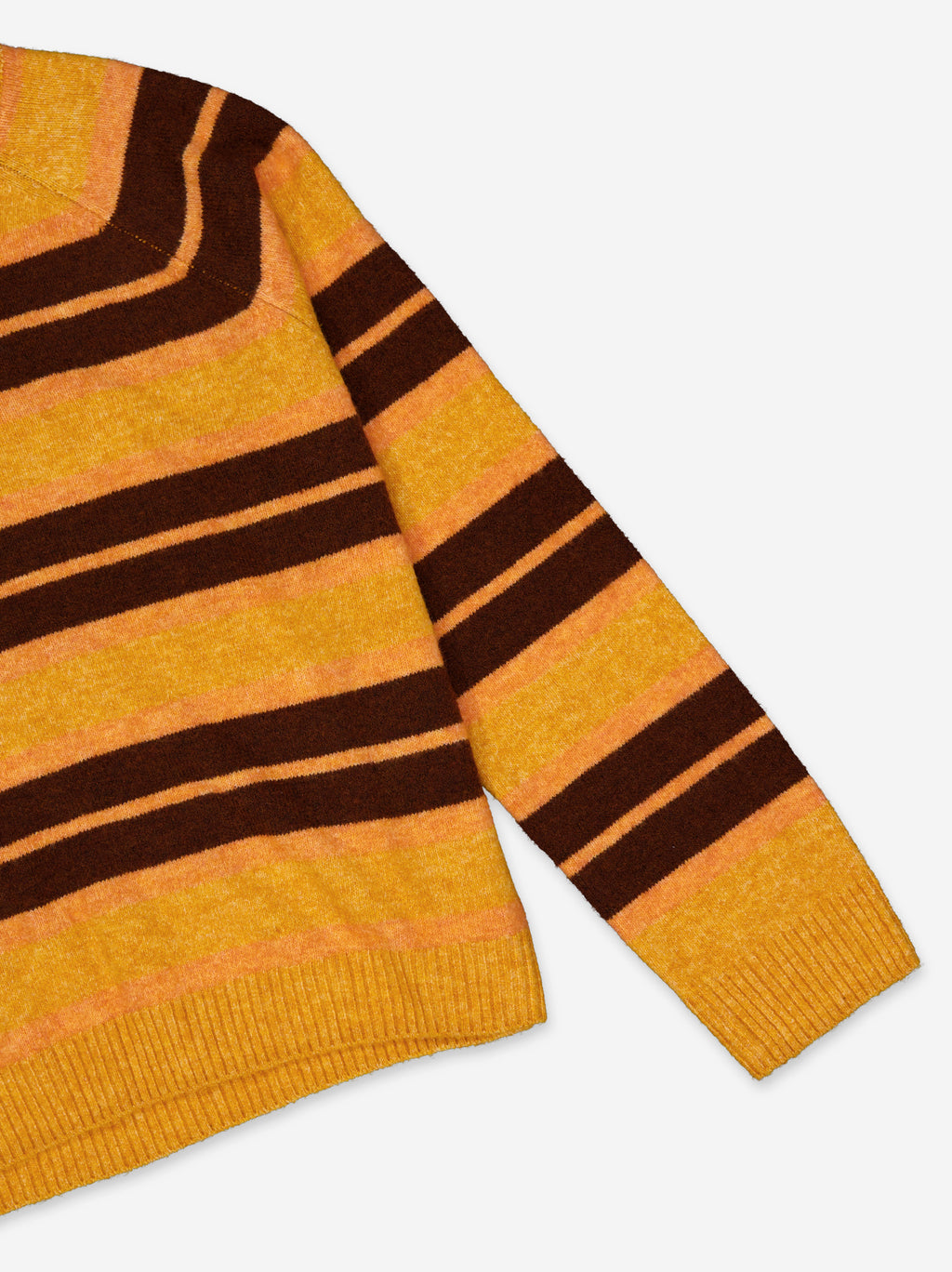 Loose-fit knit sweater with a striped print and a ribbed round neckline.