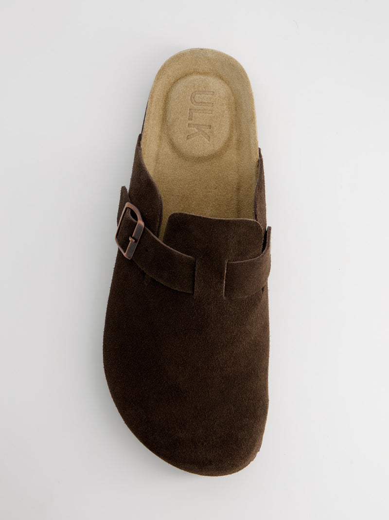 Phoenix brown suede clogs