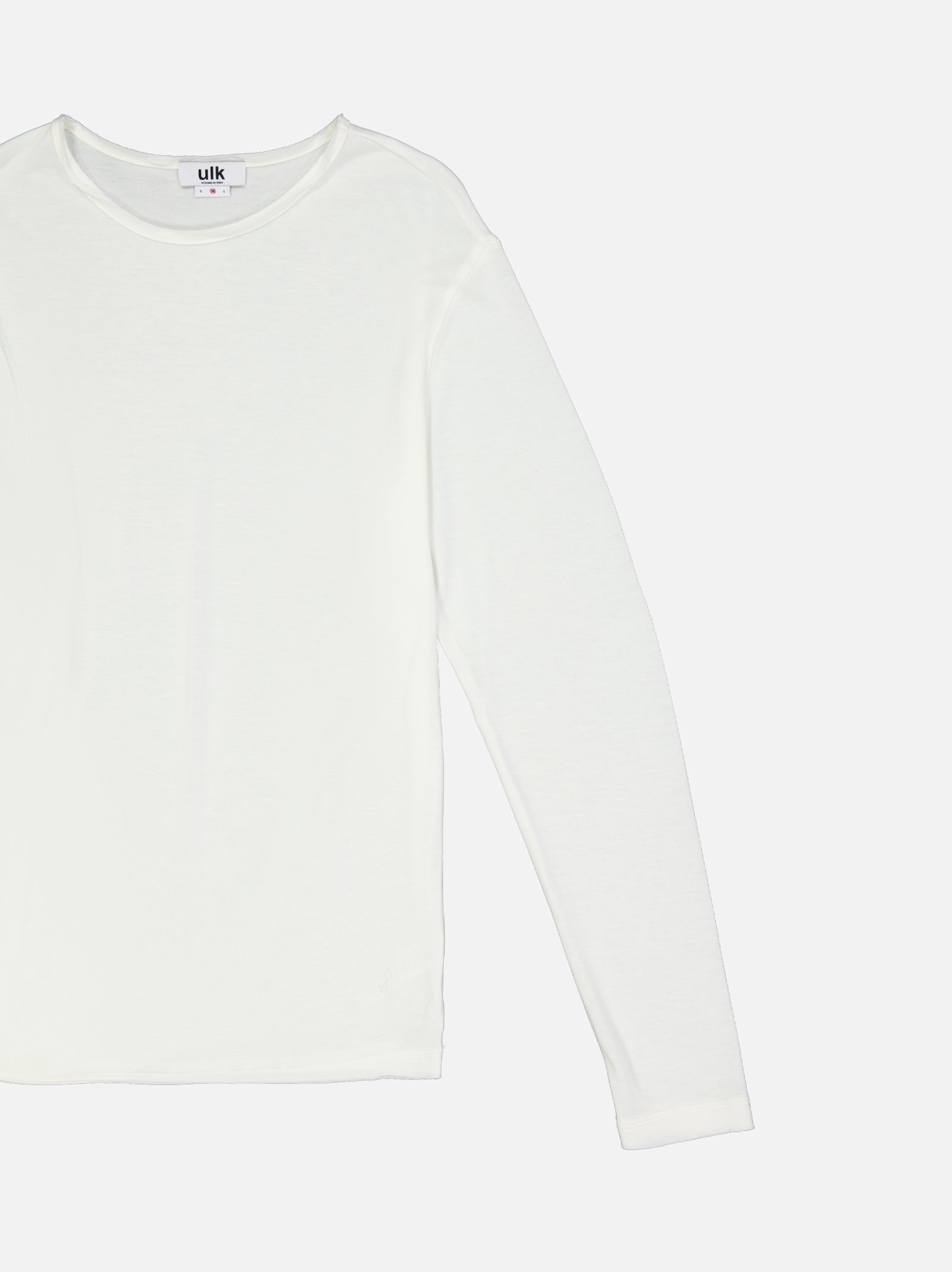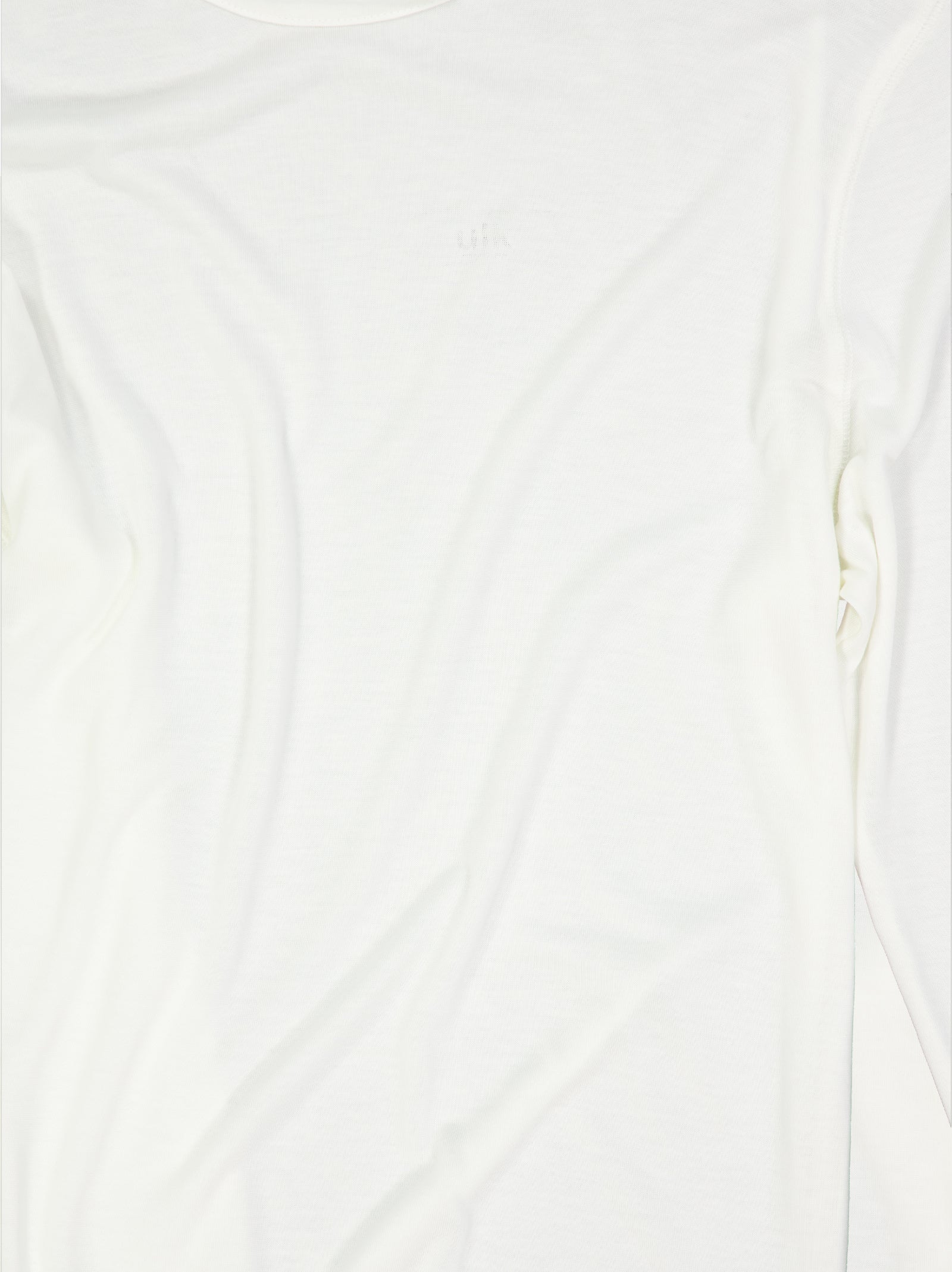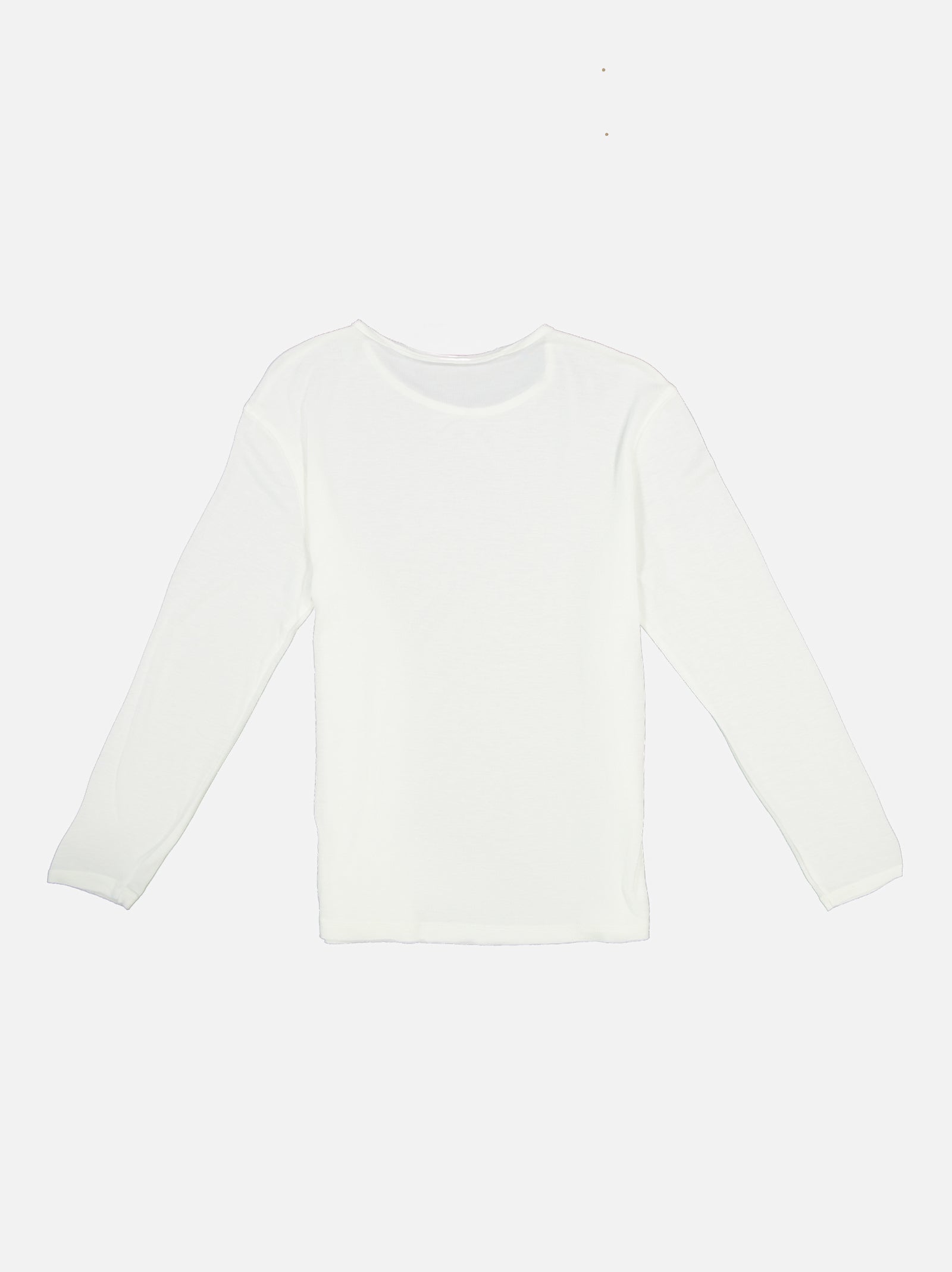 Camiseta de manga larga lisa. Confeccionada en tejido de punto ligero. Cuello redondo. Corte recto y acabados limpios en puños y bajo.
