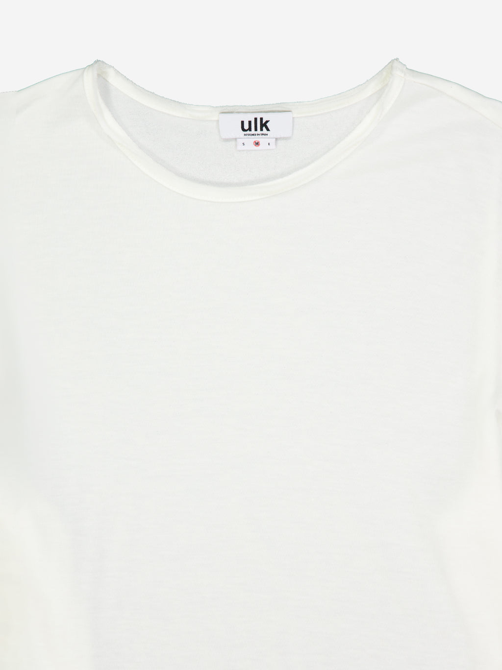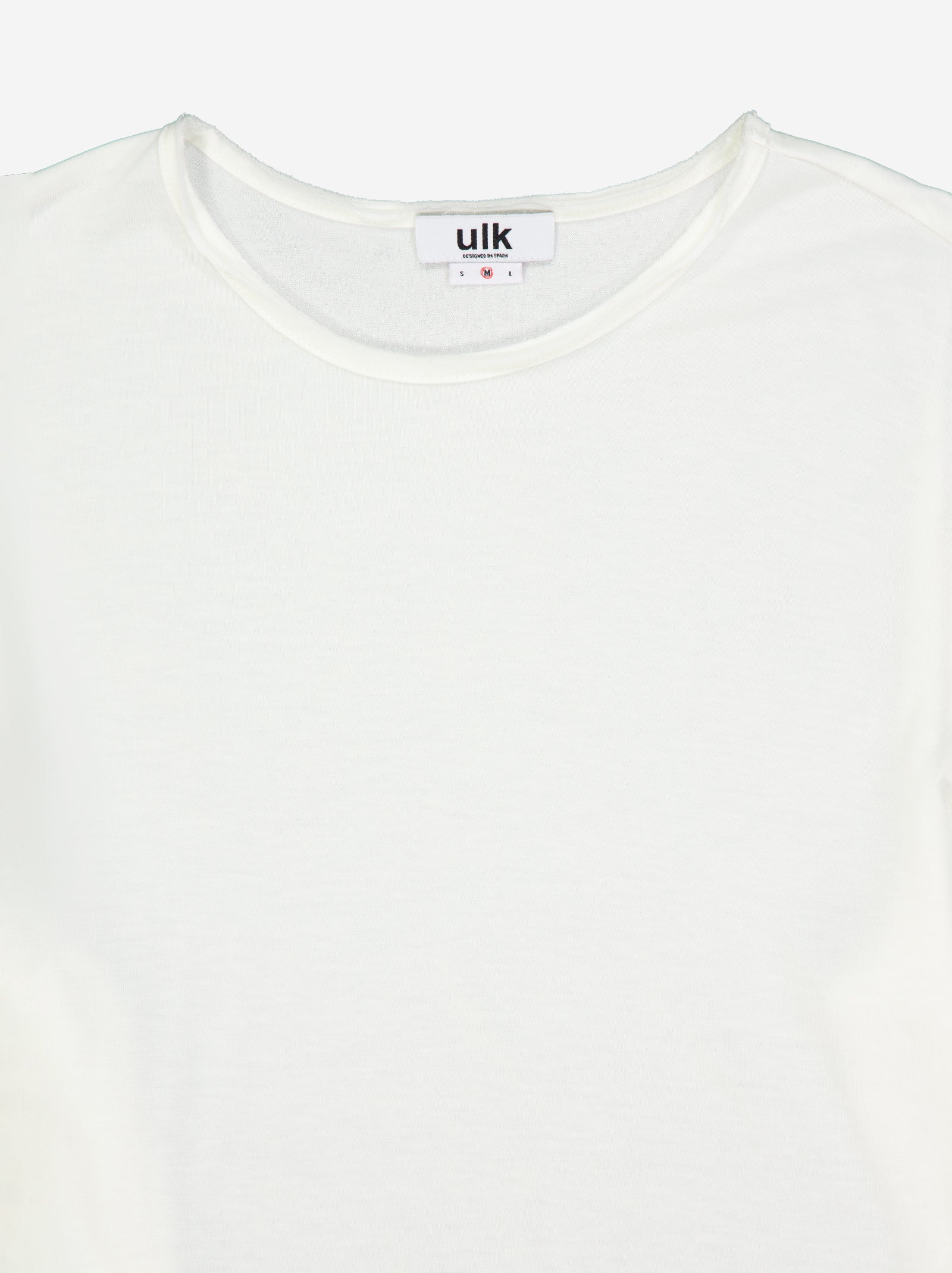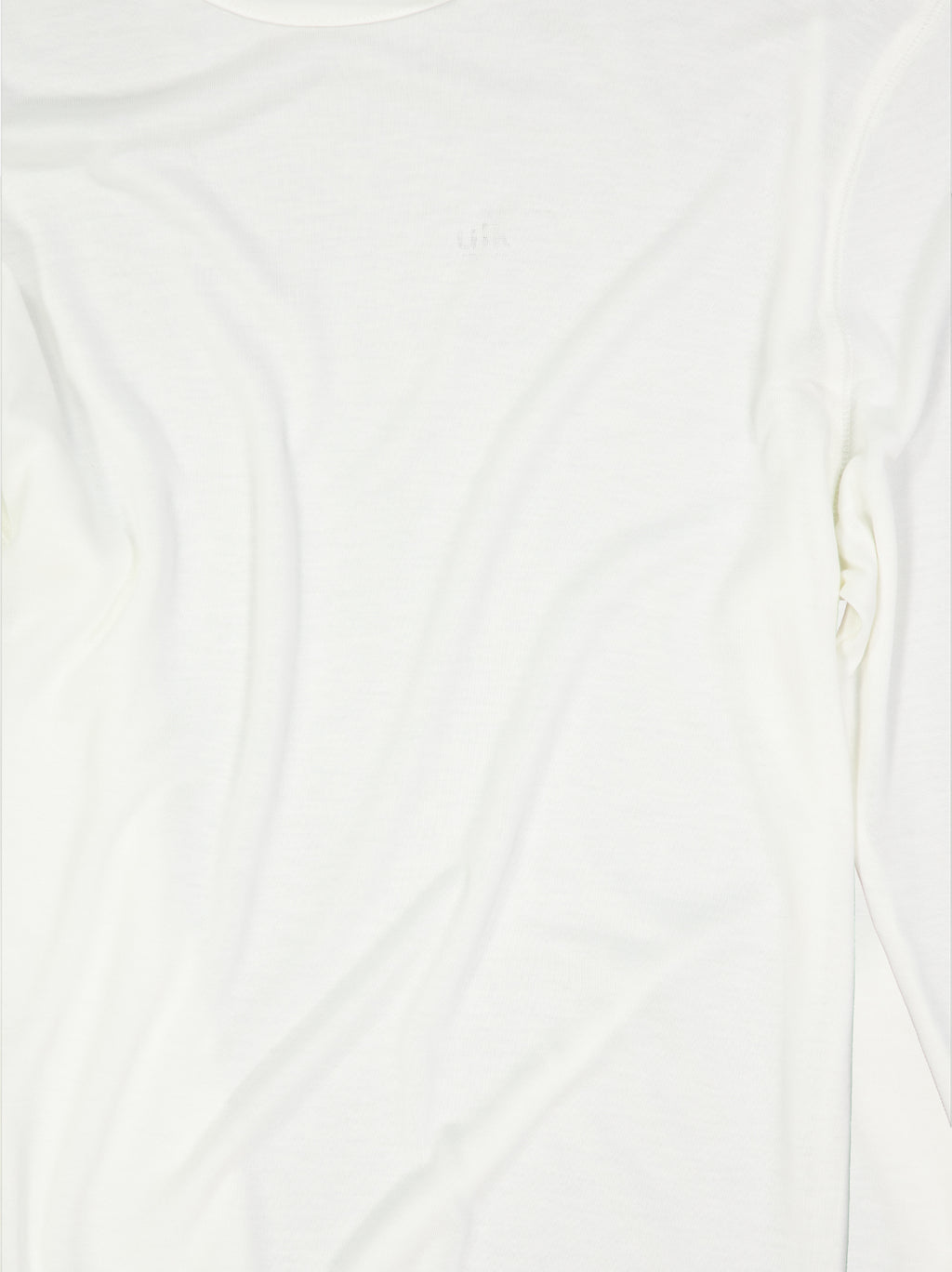 Camiseta de manga larga lisa. Confeccionada en tejido de punto ligero. Cuello redondo. Corte recto y acabados limpios en puños y bajo.