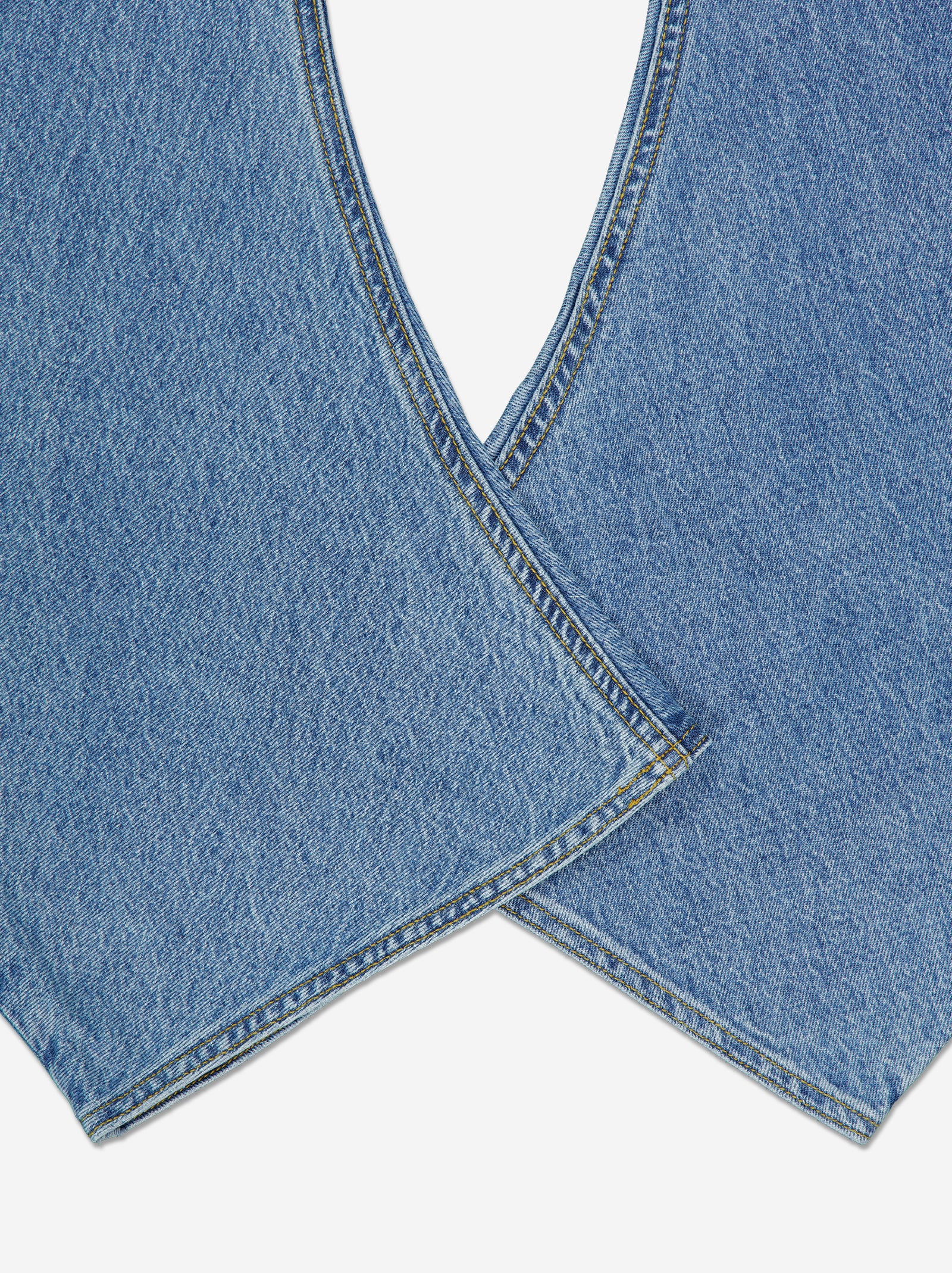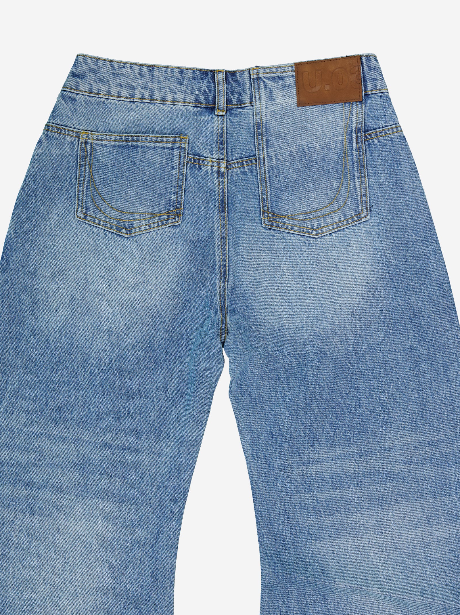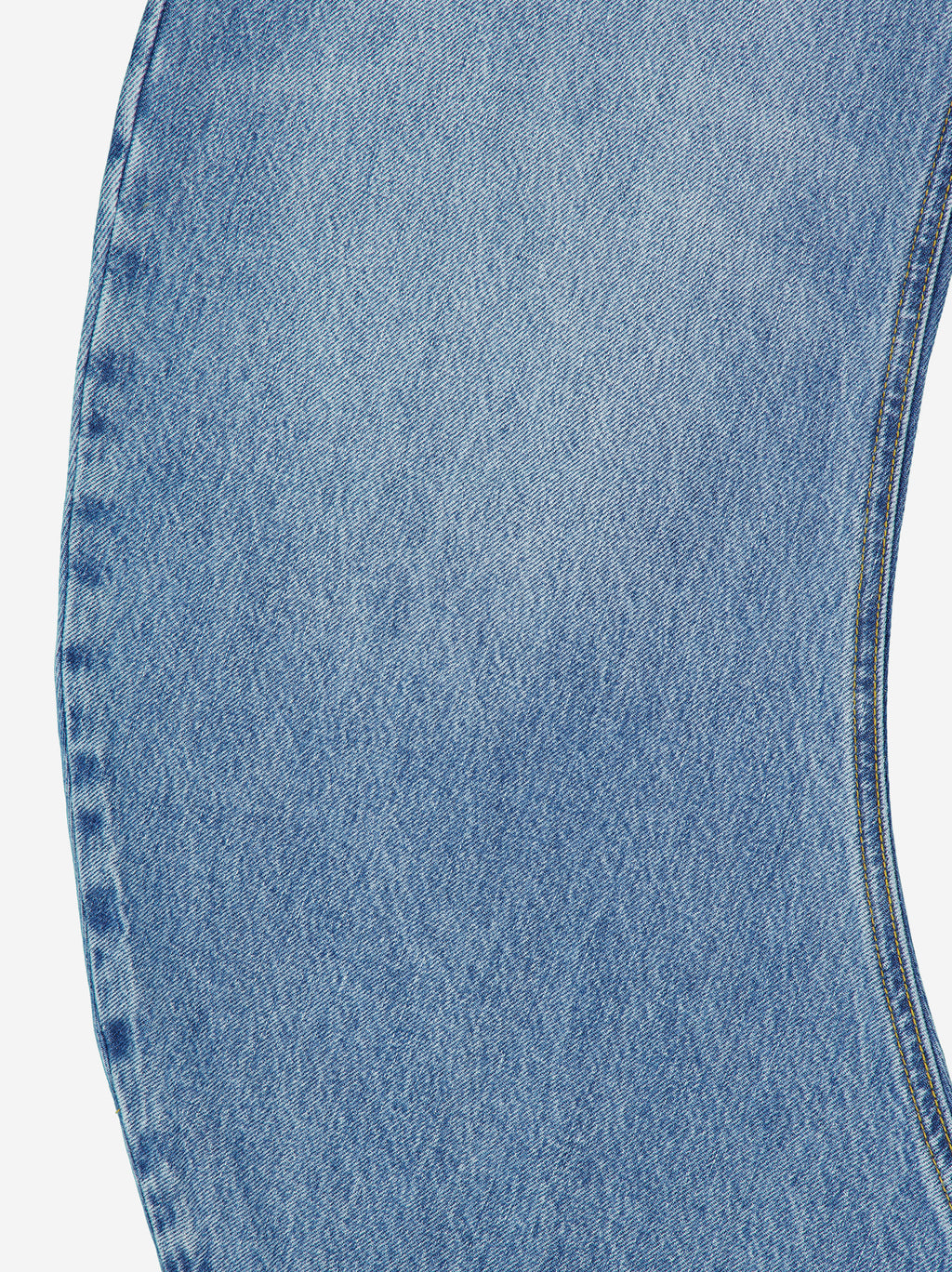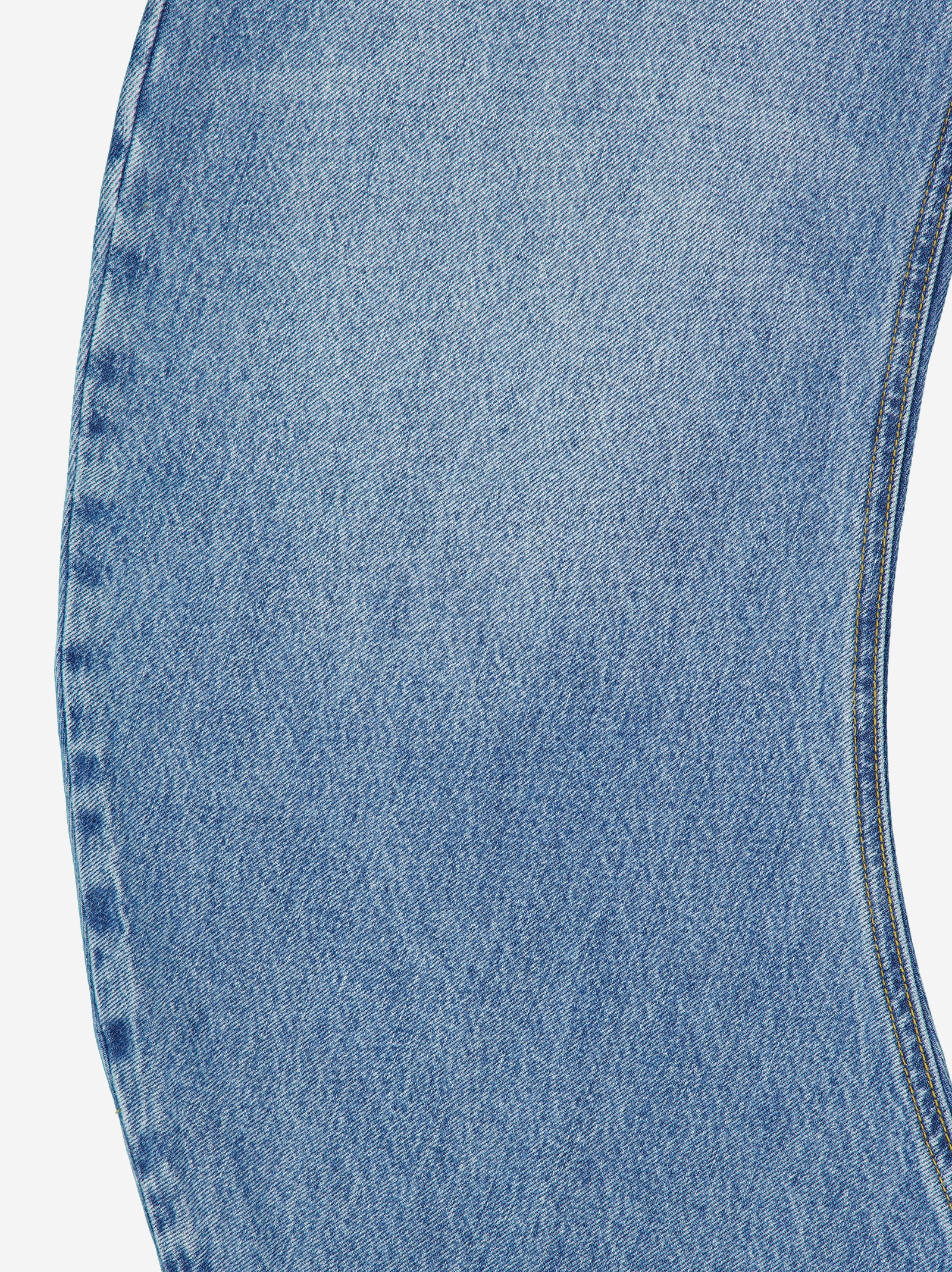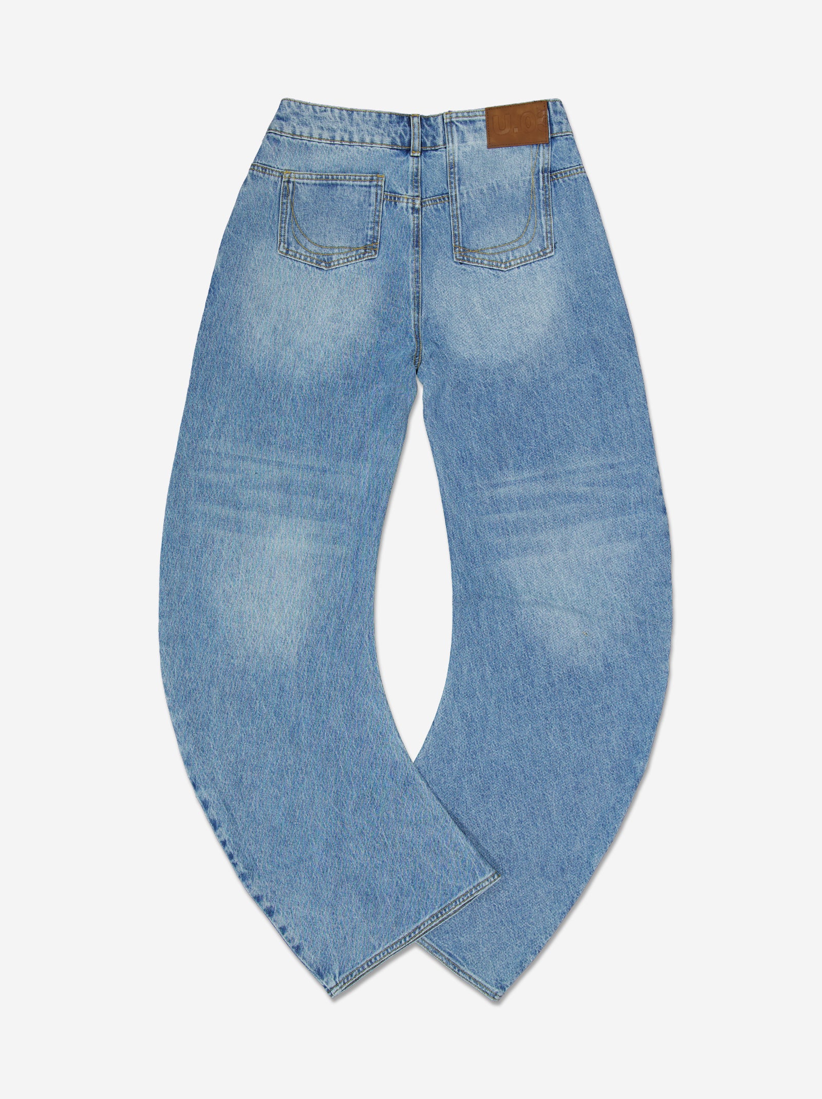 Jeans de corte curvo e innovador. Esta estructura aporta un volumen artístico y moderno que se adapta de forma única. Bolsillos traseros asimétricos.