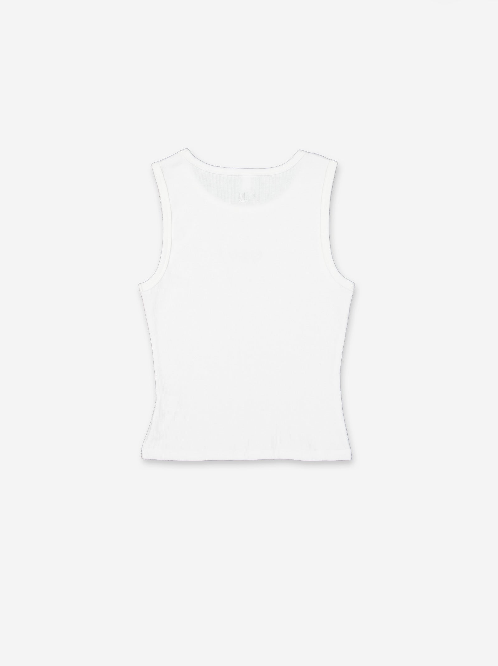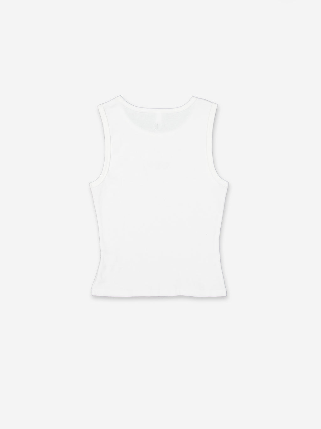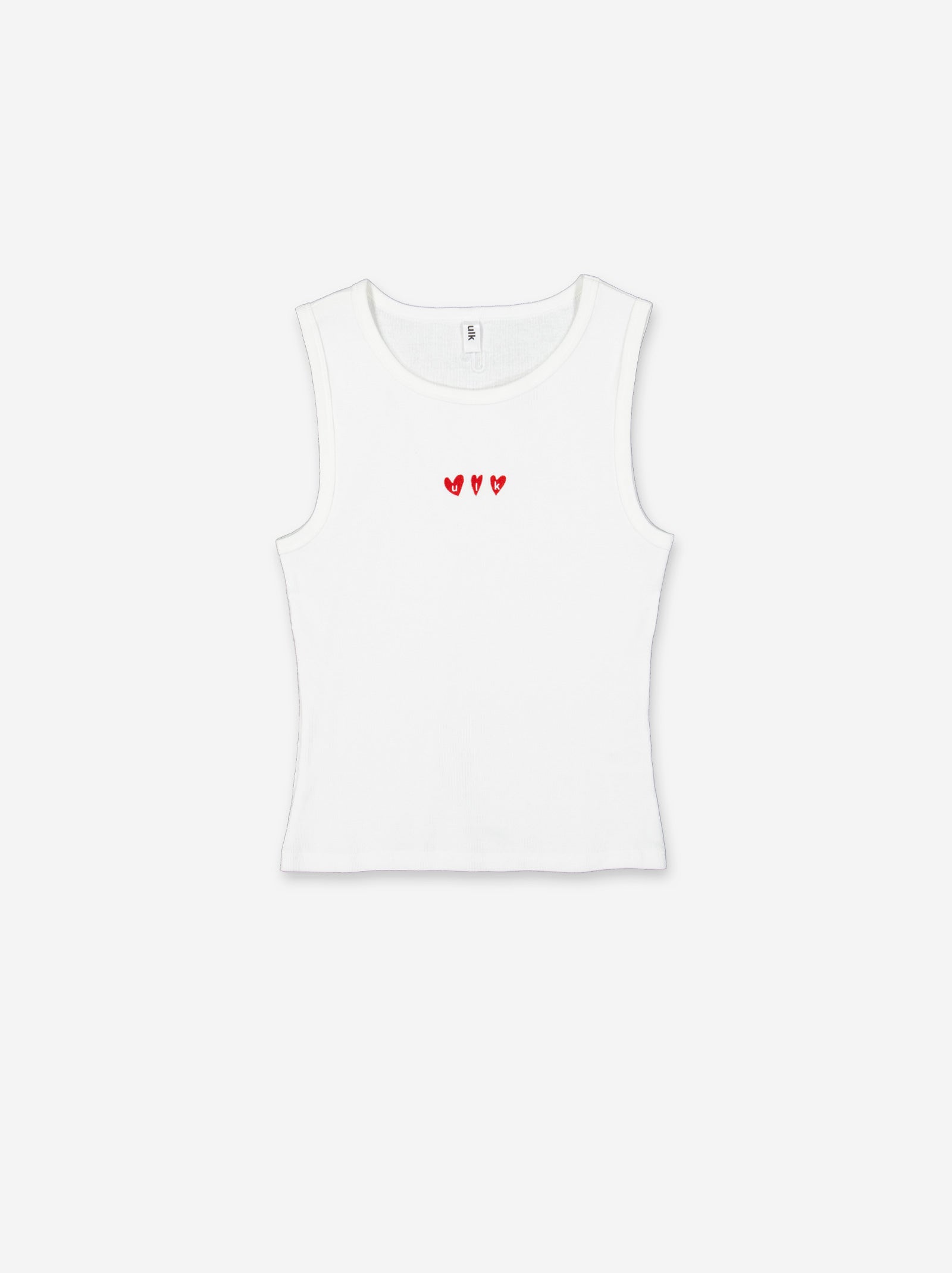 Ribbed top embroidered with hearts and a logo. Round neckline and straps.