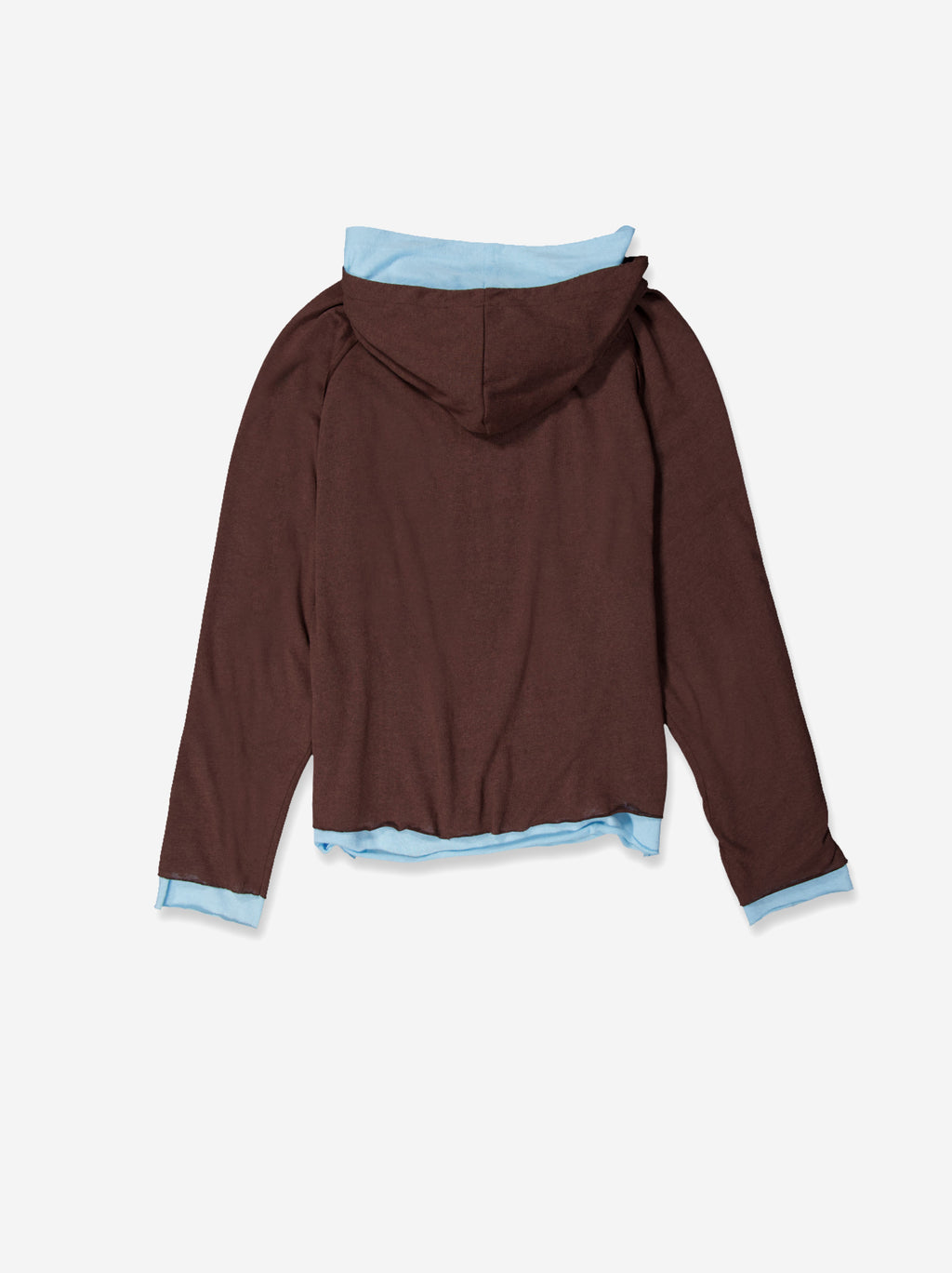 Relaxed fit hoodie in brown, with a hood and a contrasting light blue finish on the inside that adds a distinctive touch. It features a front kangaroo pocket and visible details on the cuffs and hem that enhance its casual aesthetic. Its comfortable cut makes it a versatile option for everyday wear, ideal for combining in casual looks with a subtle pop of color.