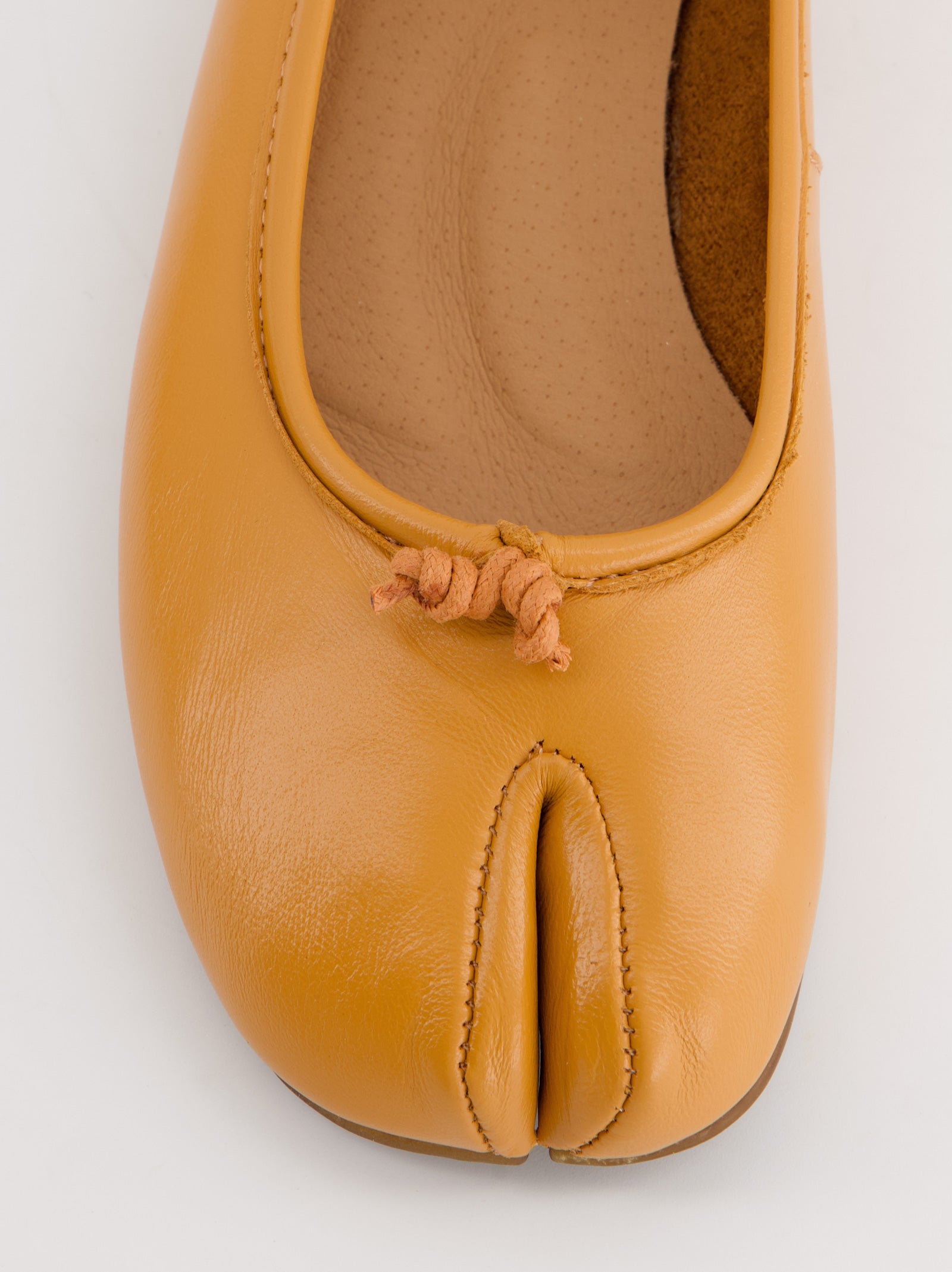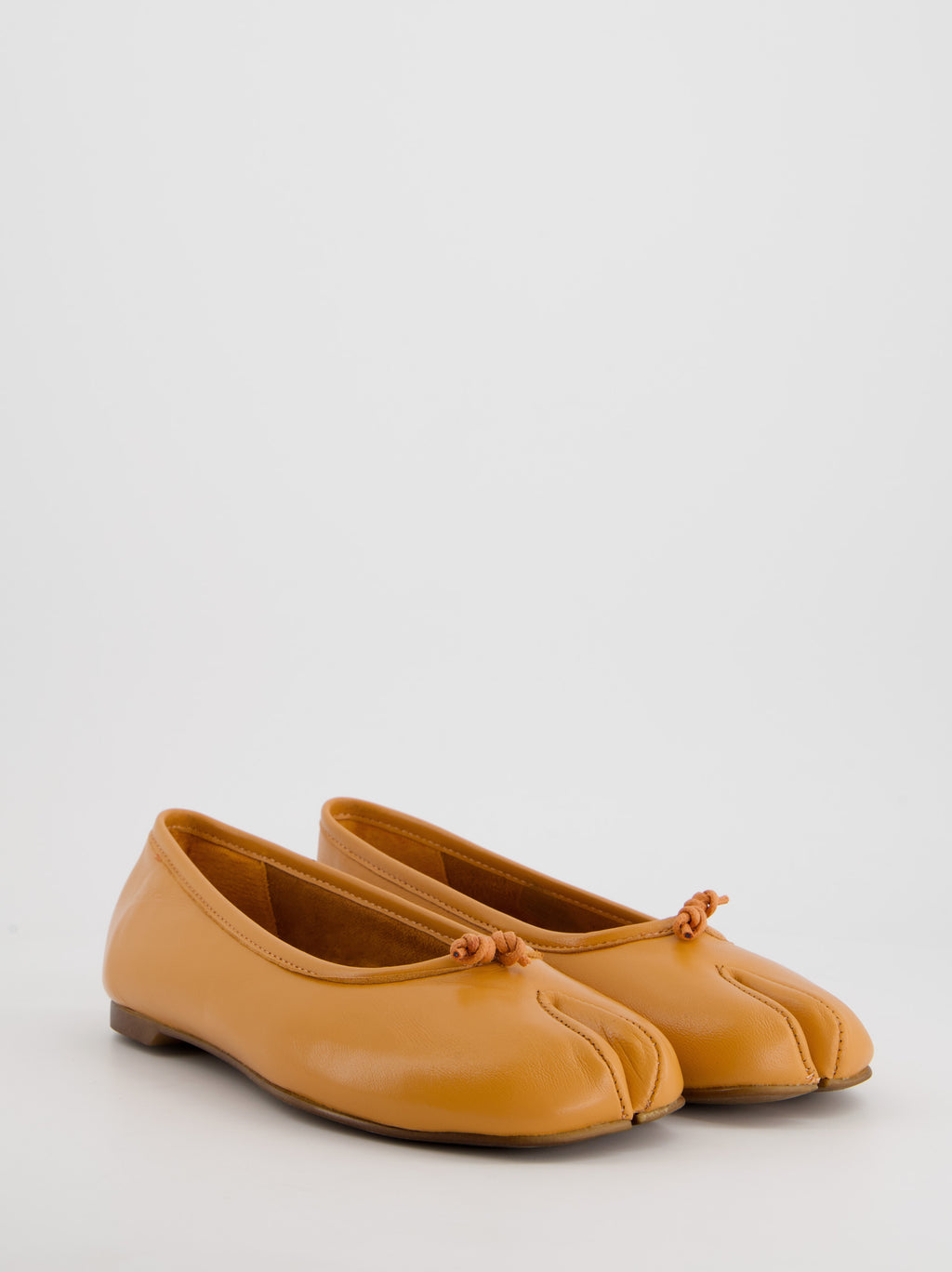 Bailarinas con puntera tabi. Fabricadas en piel. Plantilla acolchada que proporciona máxima comodidad. Suela de goma.