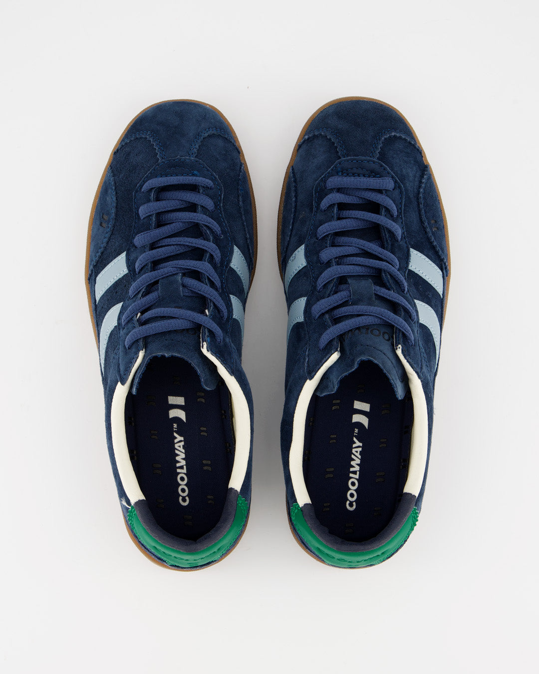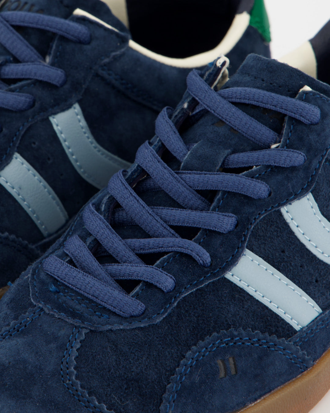 Low-top sneakers made of suede leather. Simple and classic cut with lace-up fastening. The heel piece and the logo contrast both in color and texture. The padded foam insole has a printed multi-logo design. The leather lining contrasts on the back following the tone of the upper. The lightweight rubber sole in honey colors has a stitching on the base that reinforces the union between the upper and the sole itself.