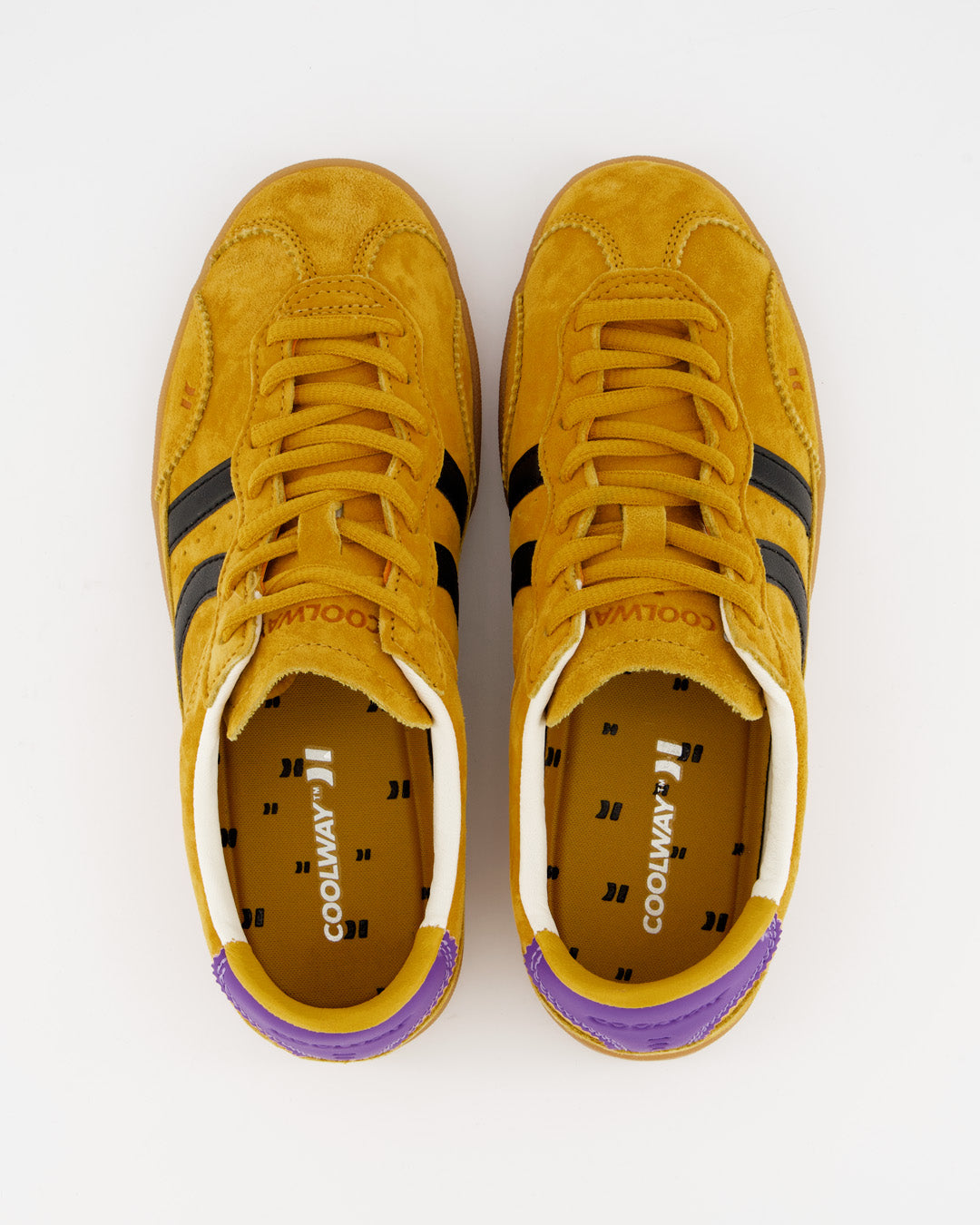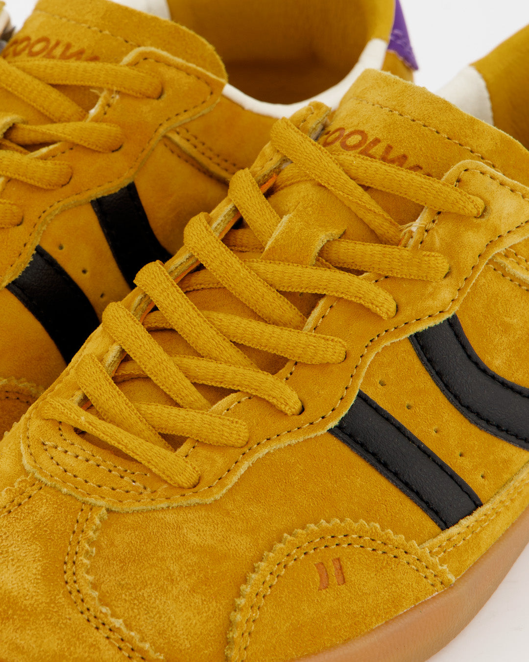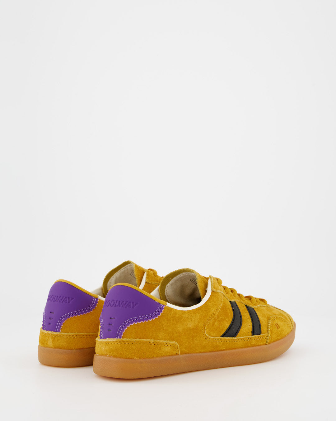 Low-top sneakers made of suede leather. Simple and classic cut with lace-up fastening. The heel piece and the logo contrast both in color and texture. The padded foam insole has a printed multi-logo design. The leather lining contrasts on the back following the tone of the upper. The lightweight rubber sole in honey colors has a stitching on the base that reinforces the union between the upper and the sole itself.