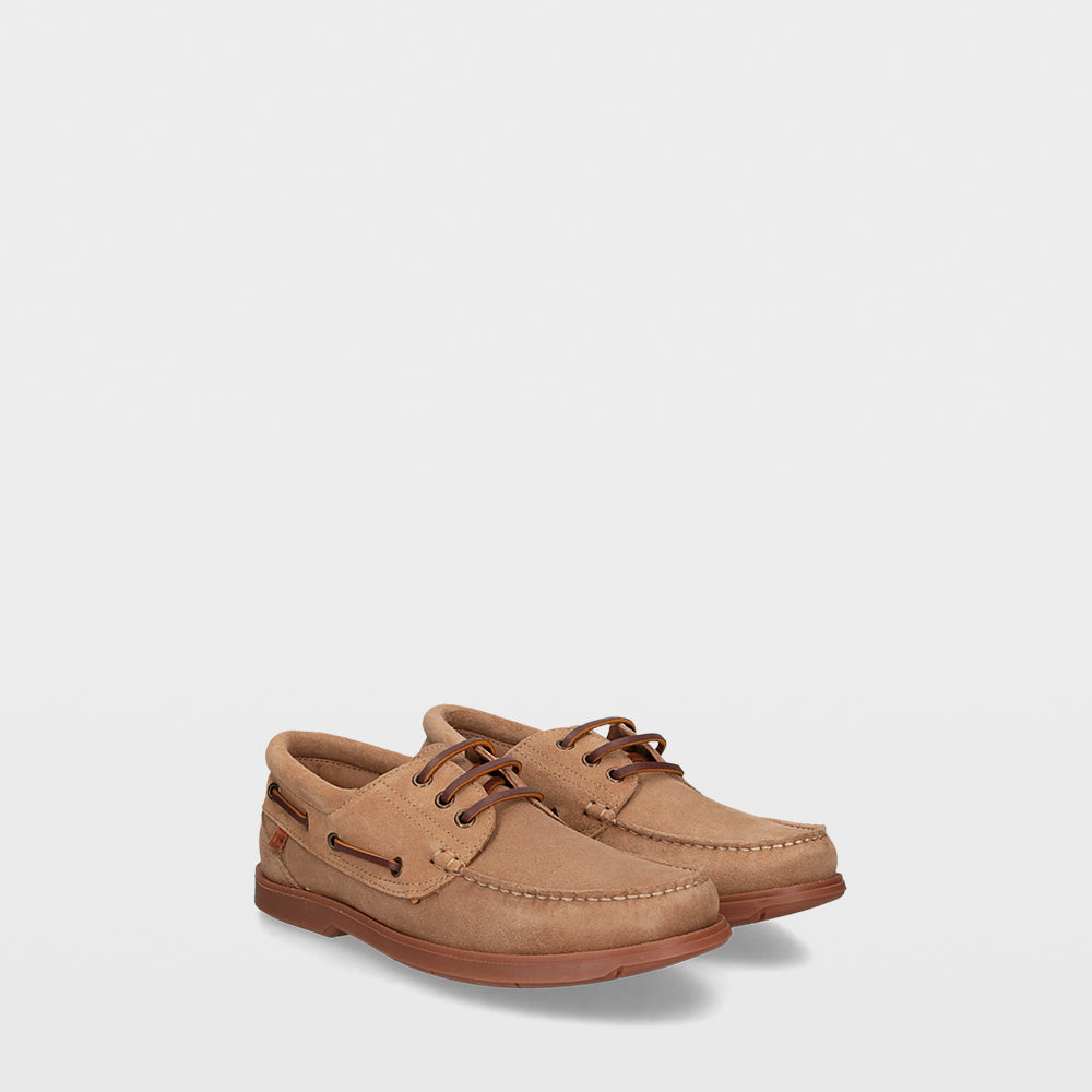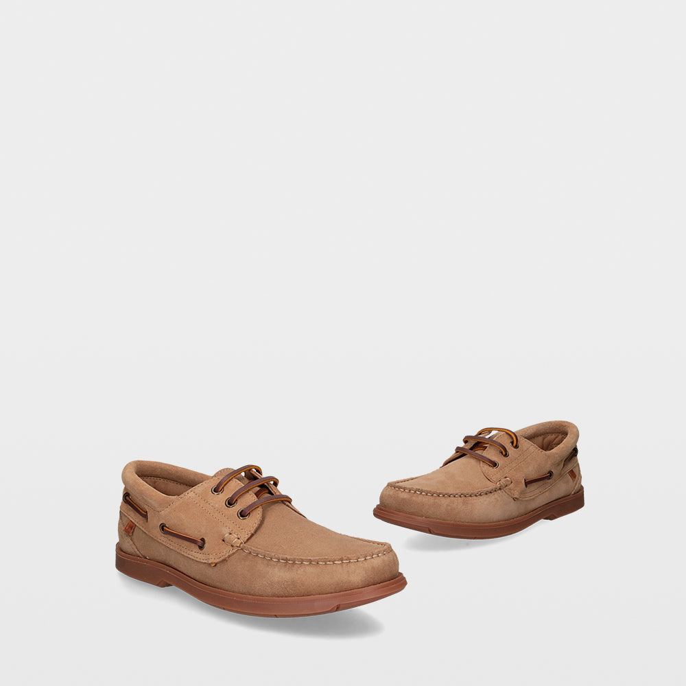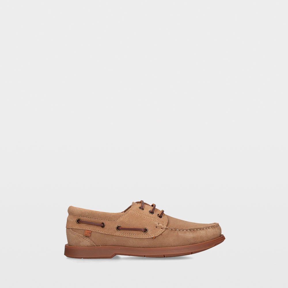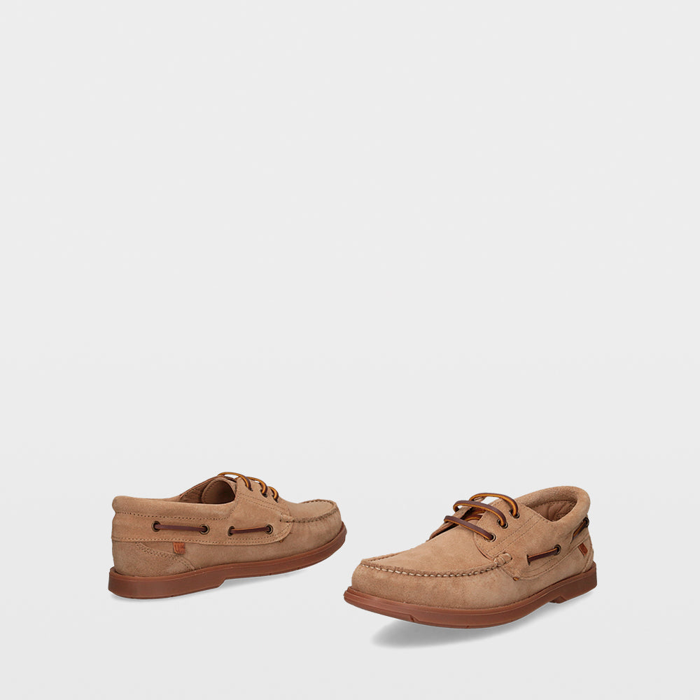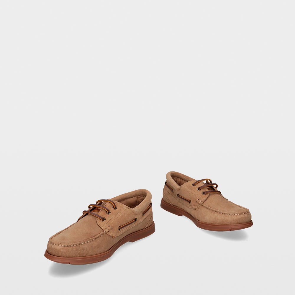 Leather boat shoes with rubber soles. Made with top quality leather. Closure with leather laces. 3 cm sole.