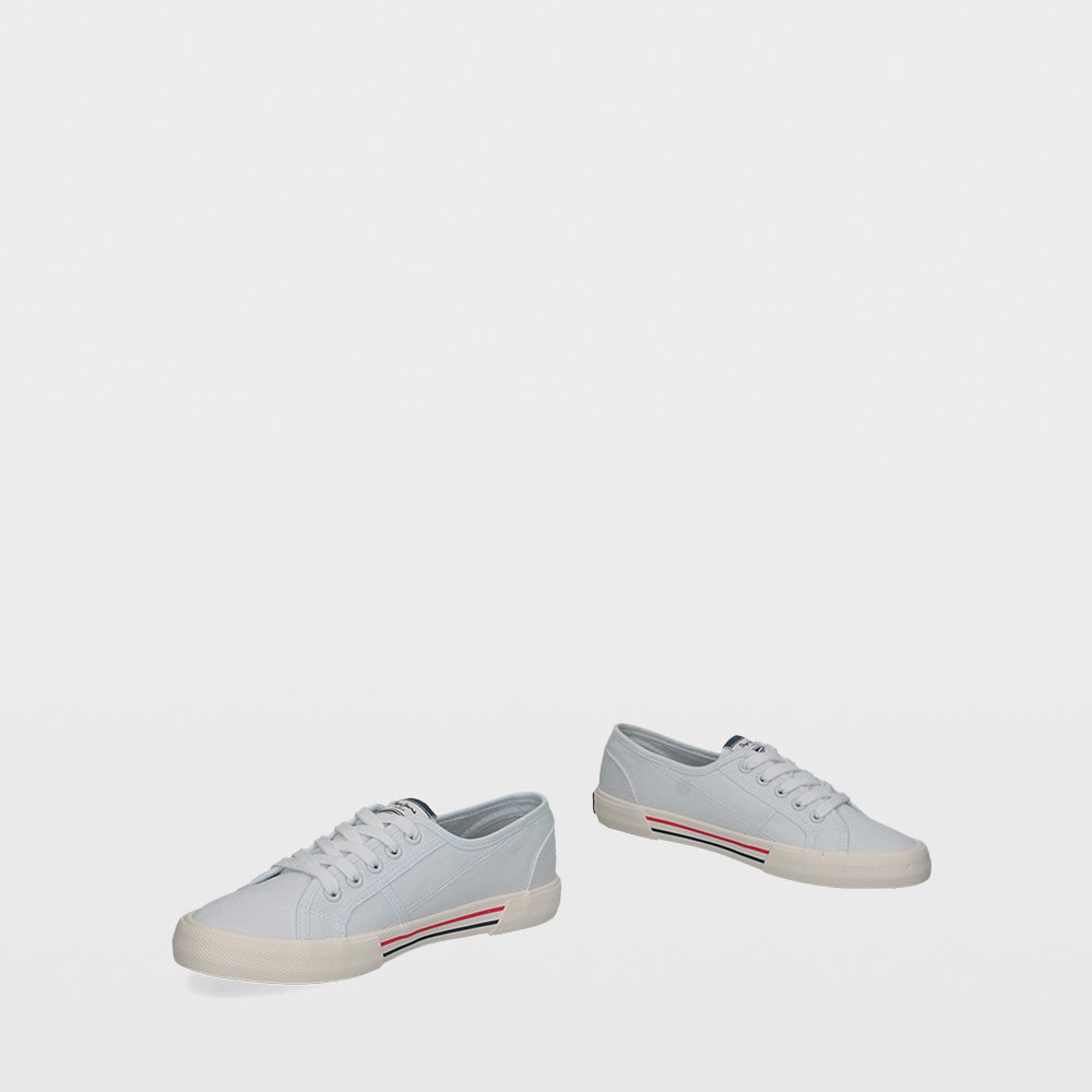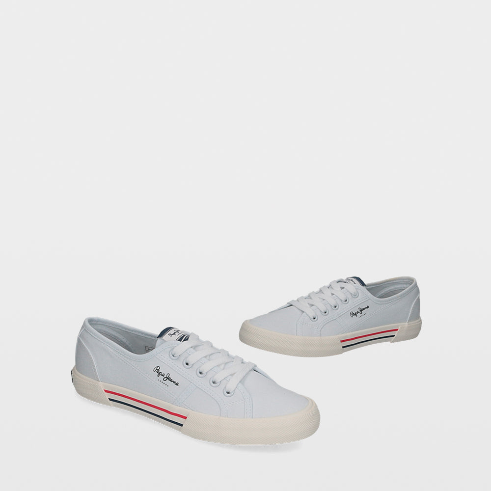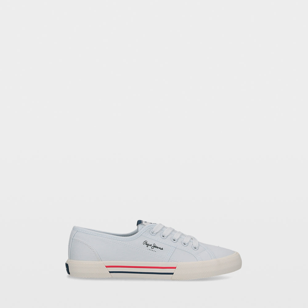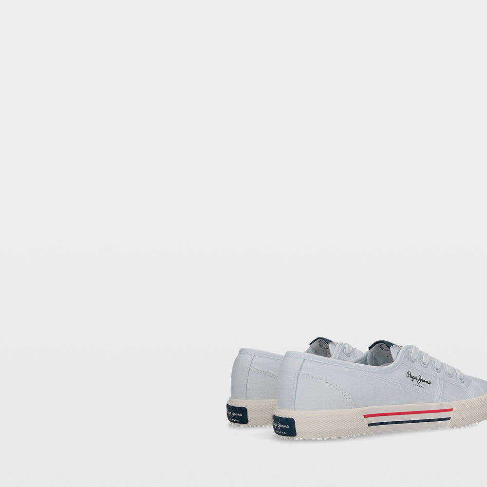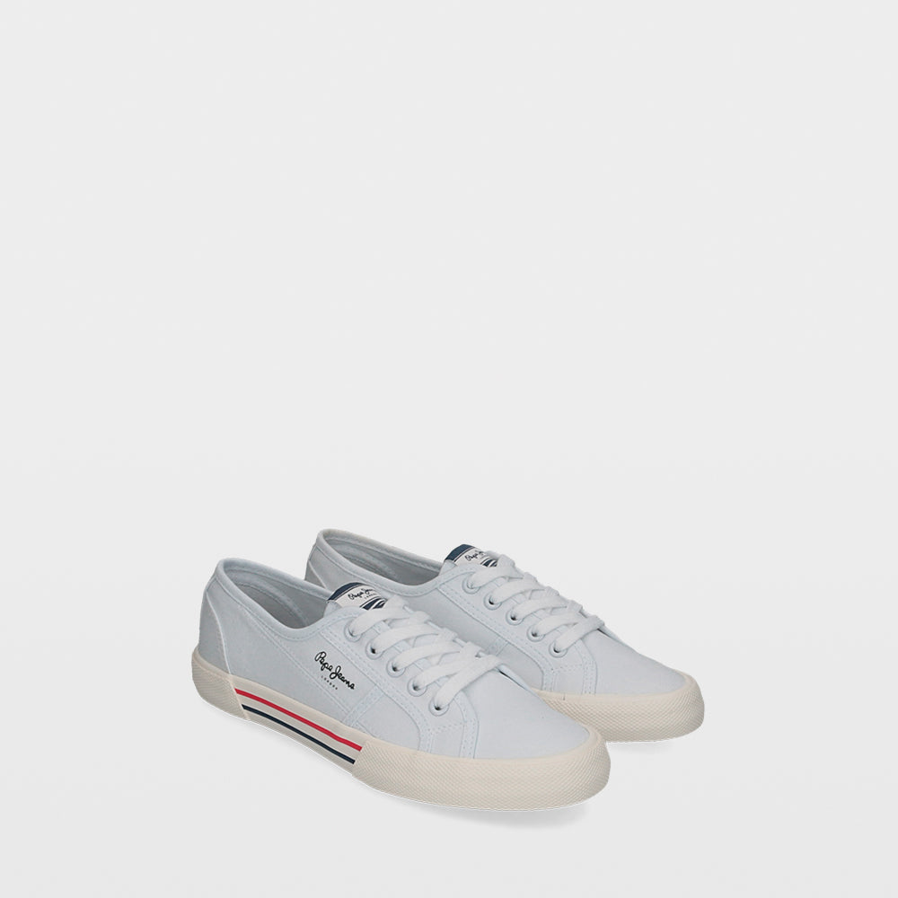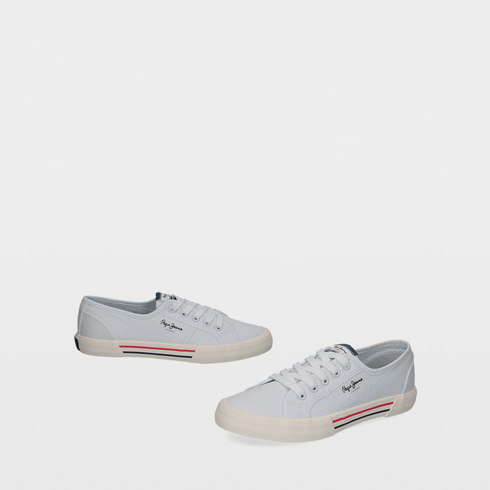 Basic sneakers. Cotton twill fabric. Lace-up closure. Metal eyelets. PEPEJEANS logo printed on the side. Non-slip rubber cupsole. Two-tone lines on the sides of the sole.