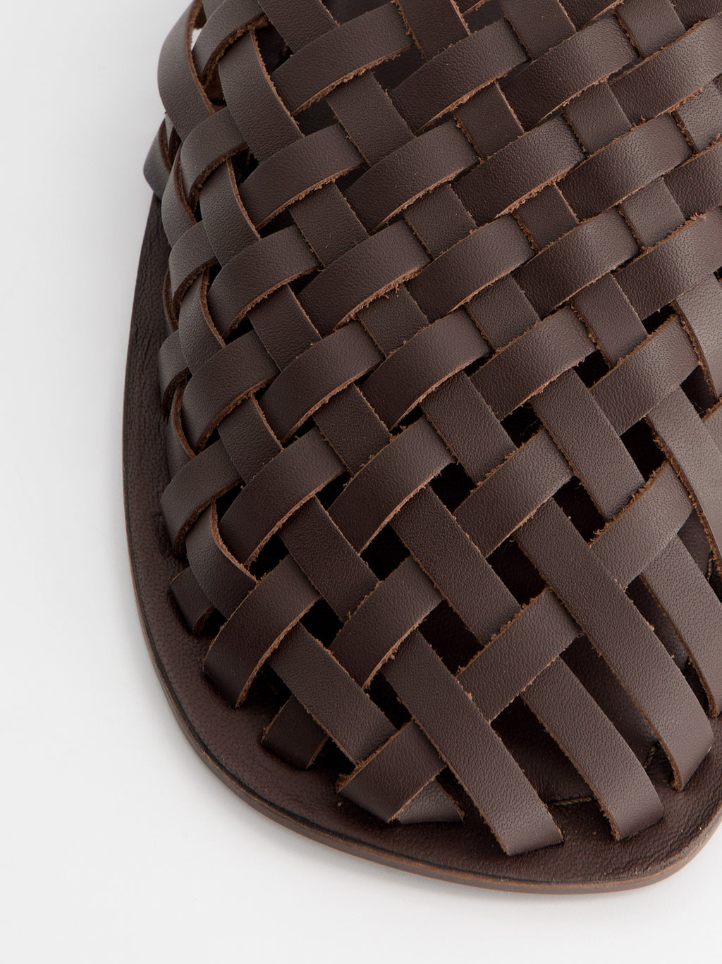 Sandalias trenzadas de estilo huarache. Confeccionadas en piel. Correa de ajuste con hebilla metálica.