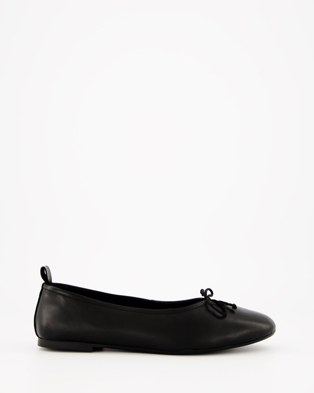 Ballerina shoes made of premium leather. Decorative bow closure. 1cm sole.