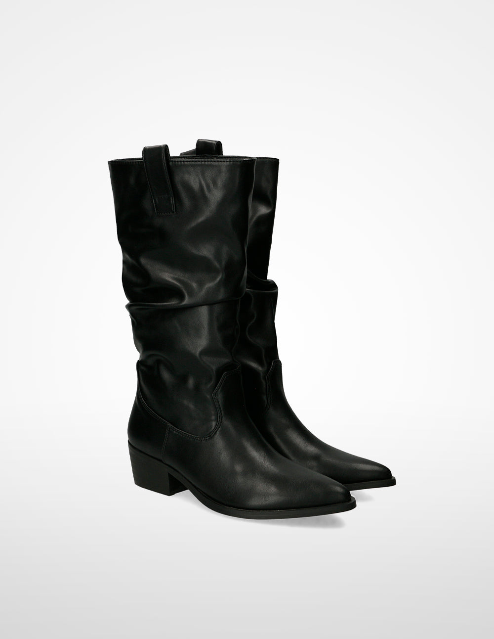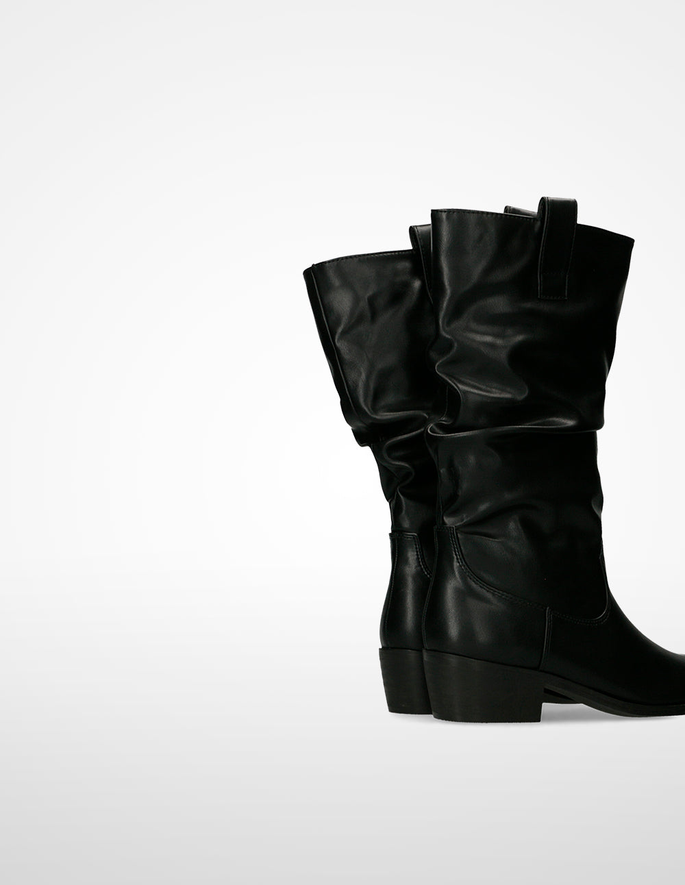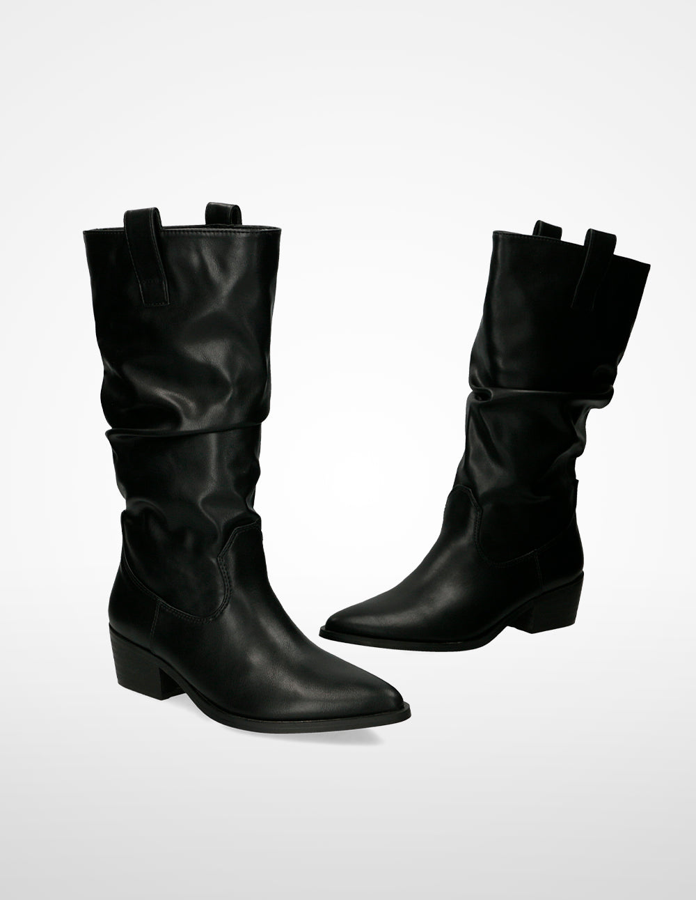 Draped cowboy boot. Made of synthetic leather. 5cm heel. 25cm shaft height.