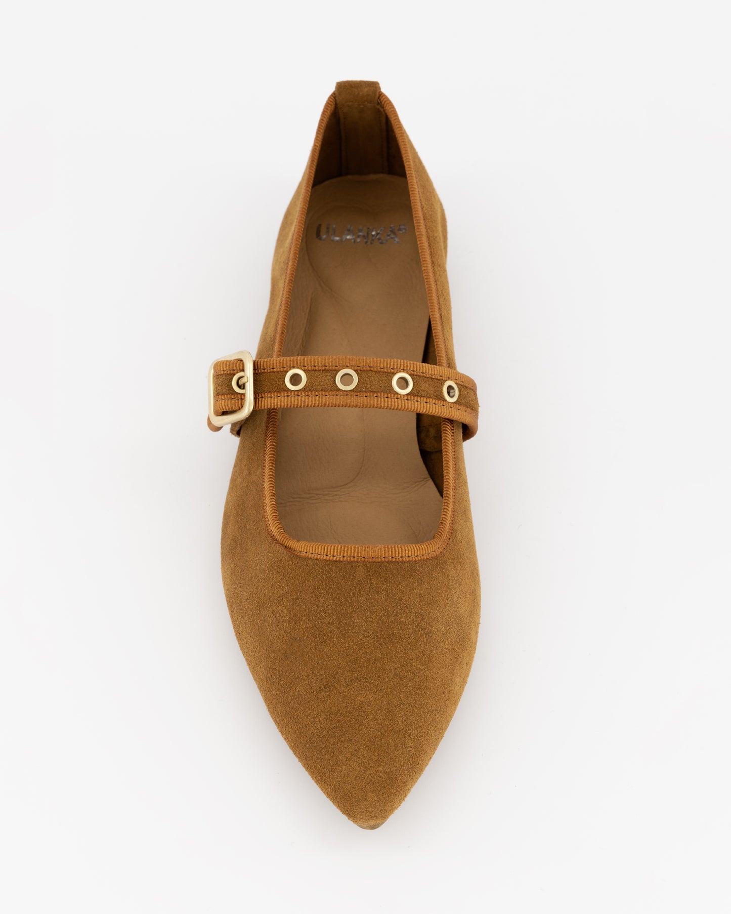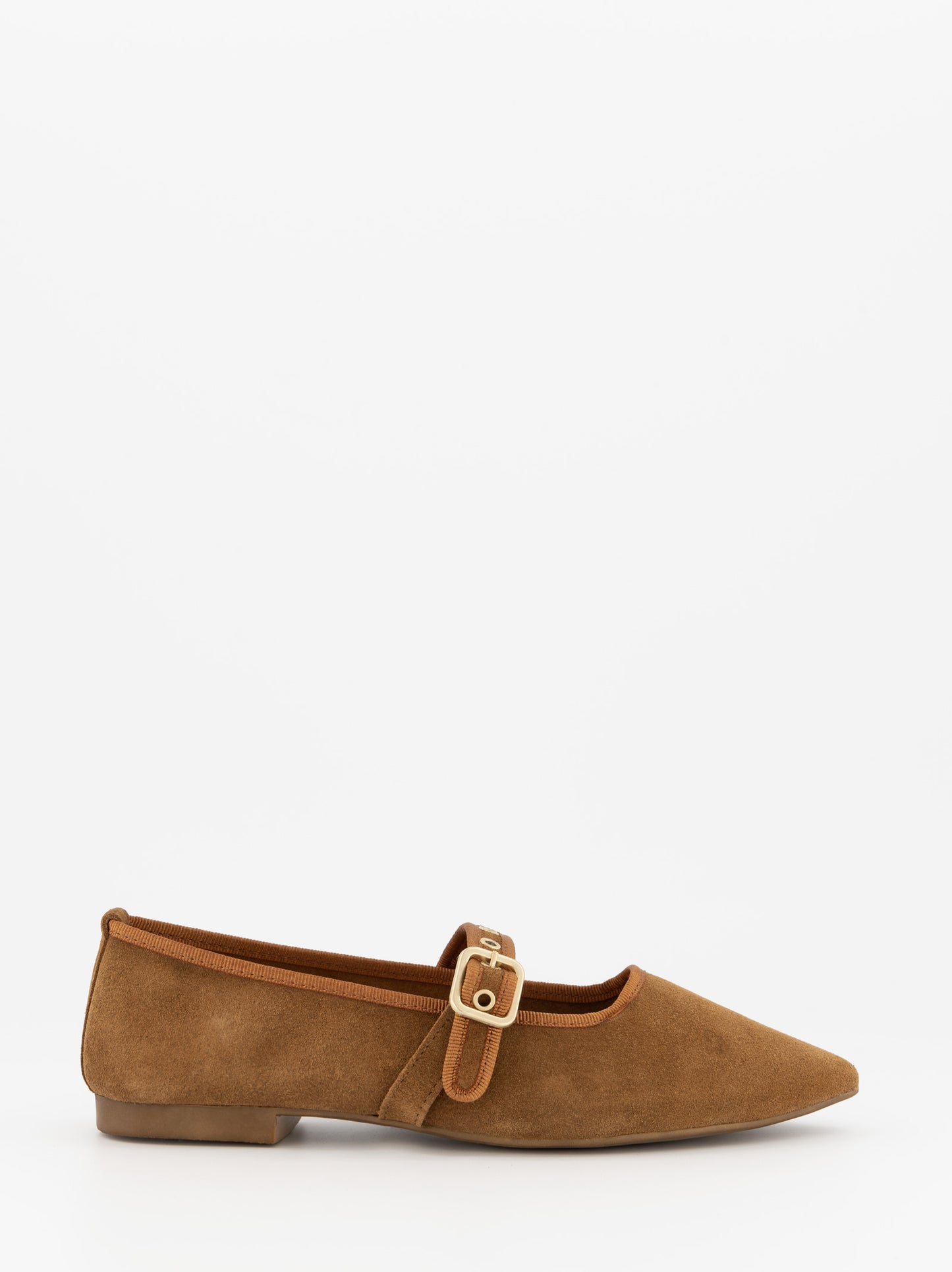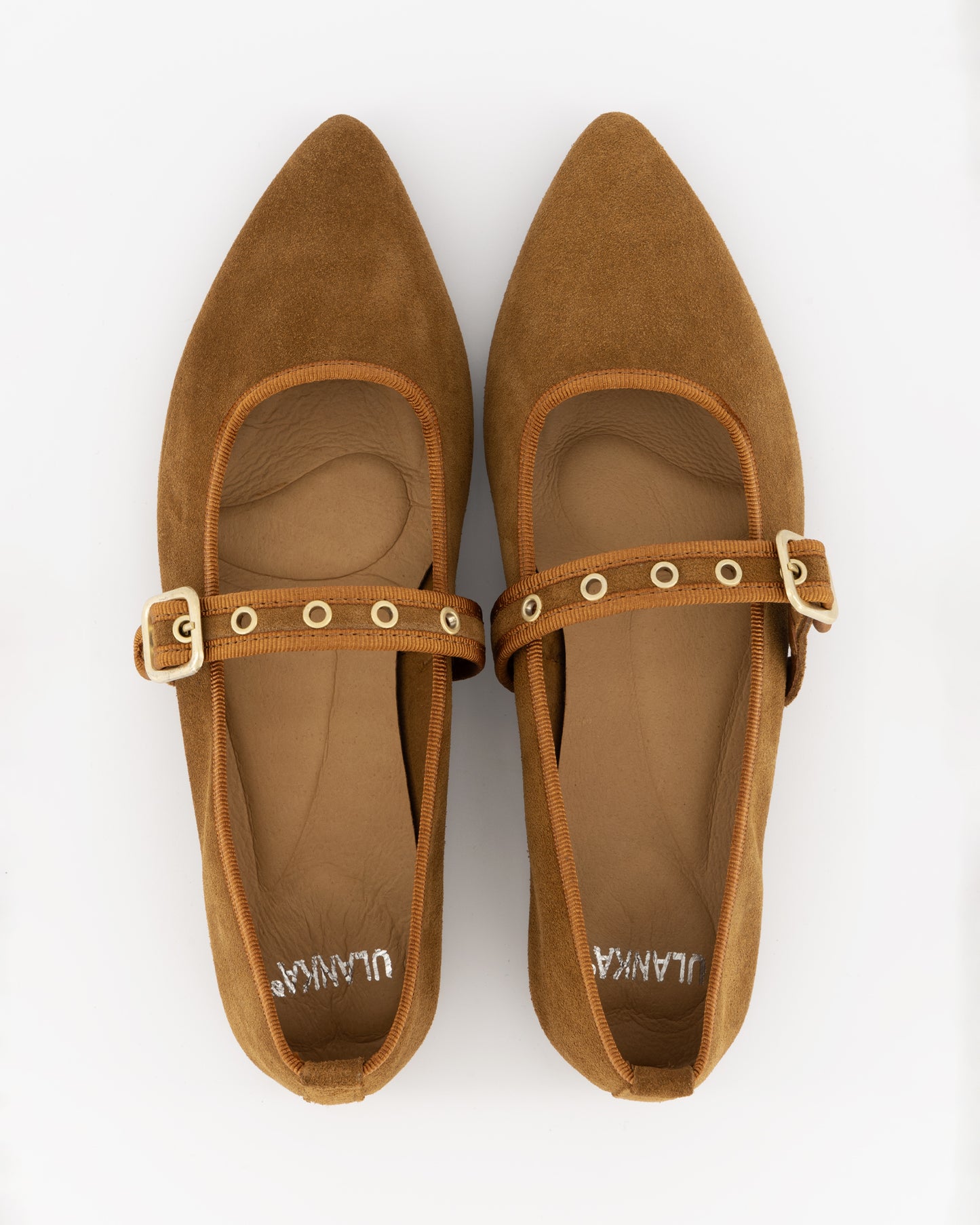Pointe shoes made of premium suede. Adjustable buckle. 1 cm sole.