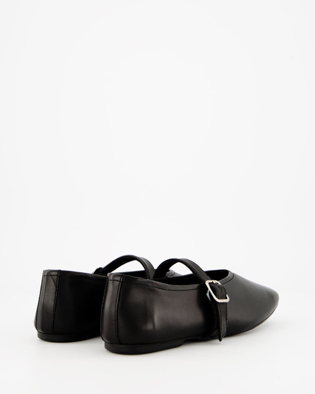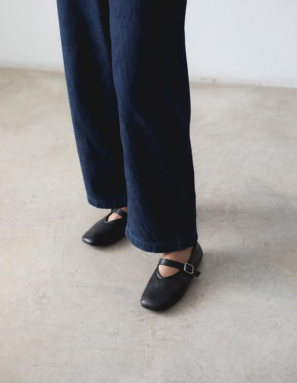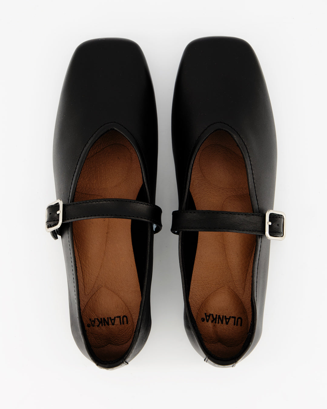 Flat ballerina. Buckle fastening on the instep strap. Made of premium leather. 1 cm sole.