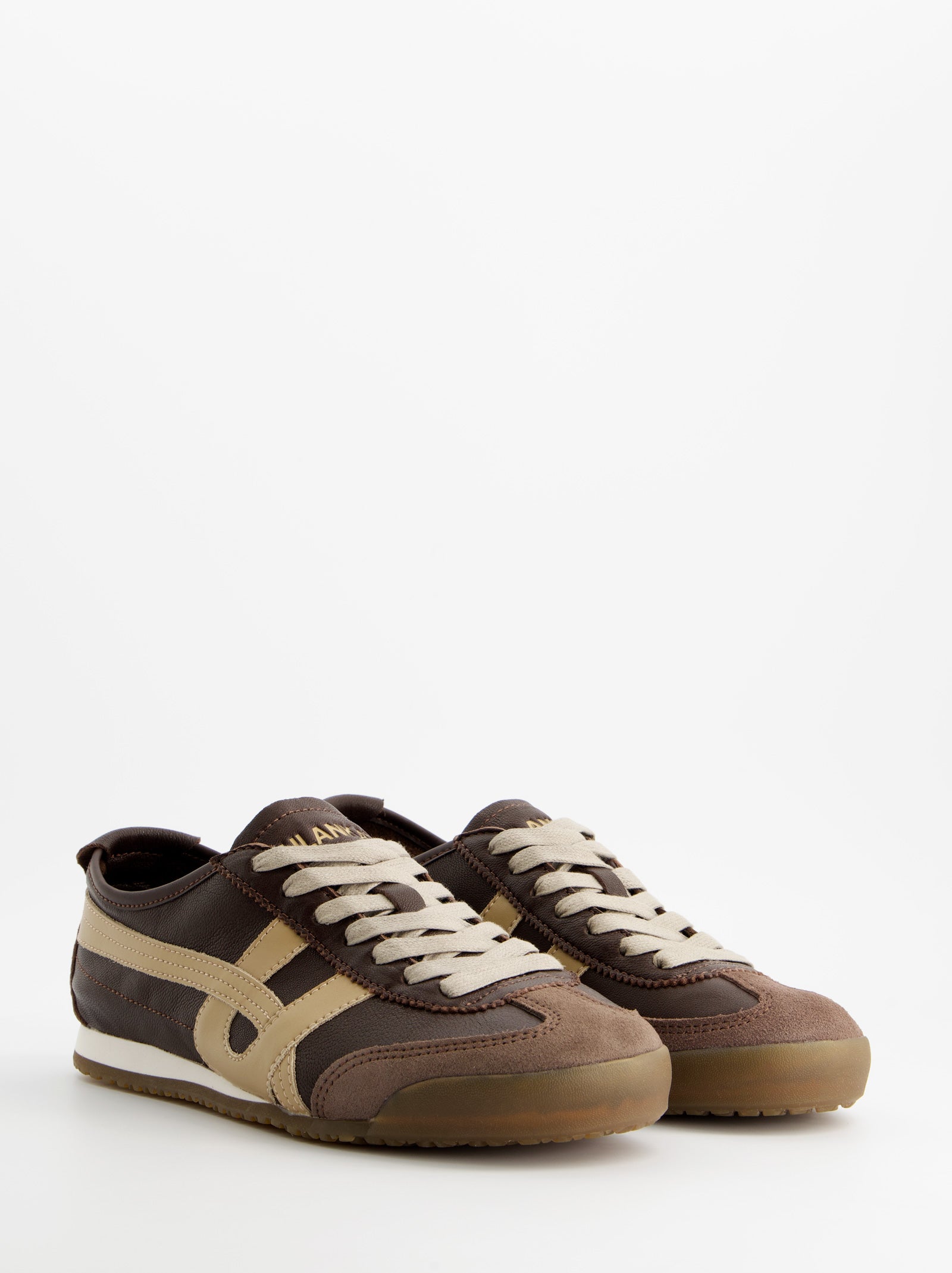 Brown men's leather sneakers. Lace-up closure. 1 cm sole.