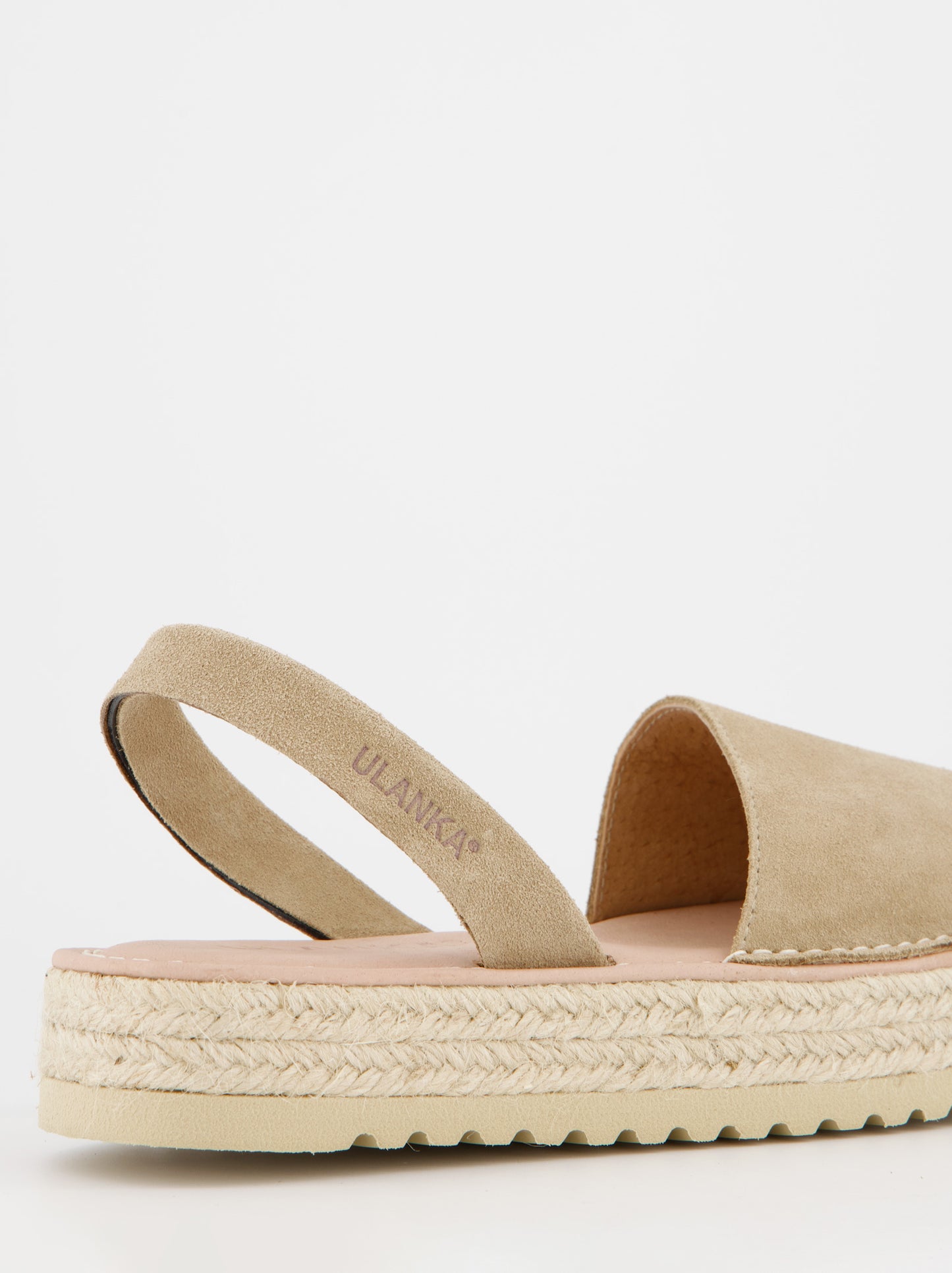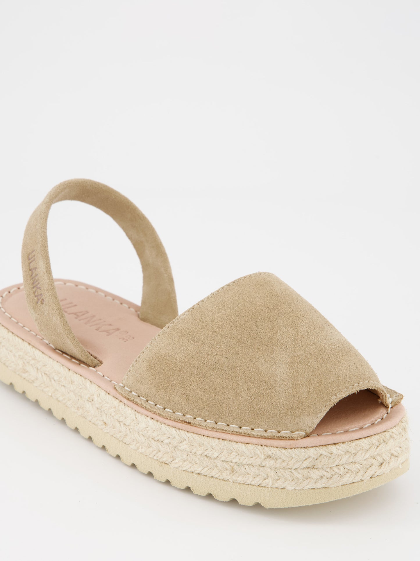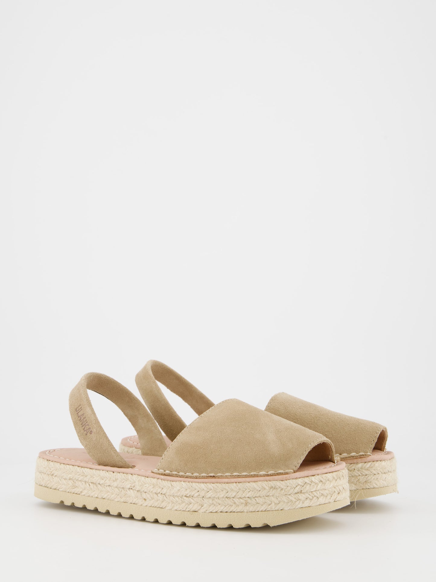 Alpargatas de esparto confeccionadas en piel de primera calidad. Agarre al talón. Suela con plataforma de 3 cm.