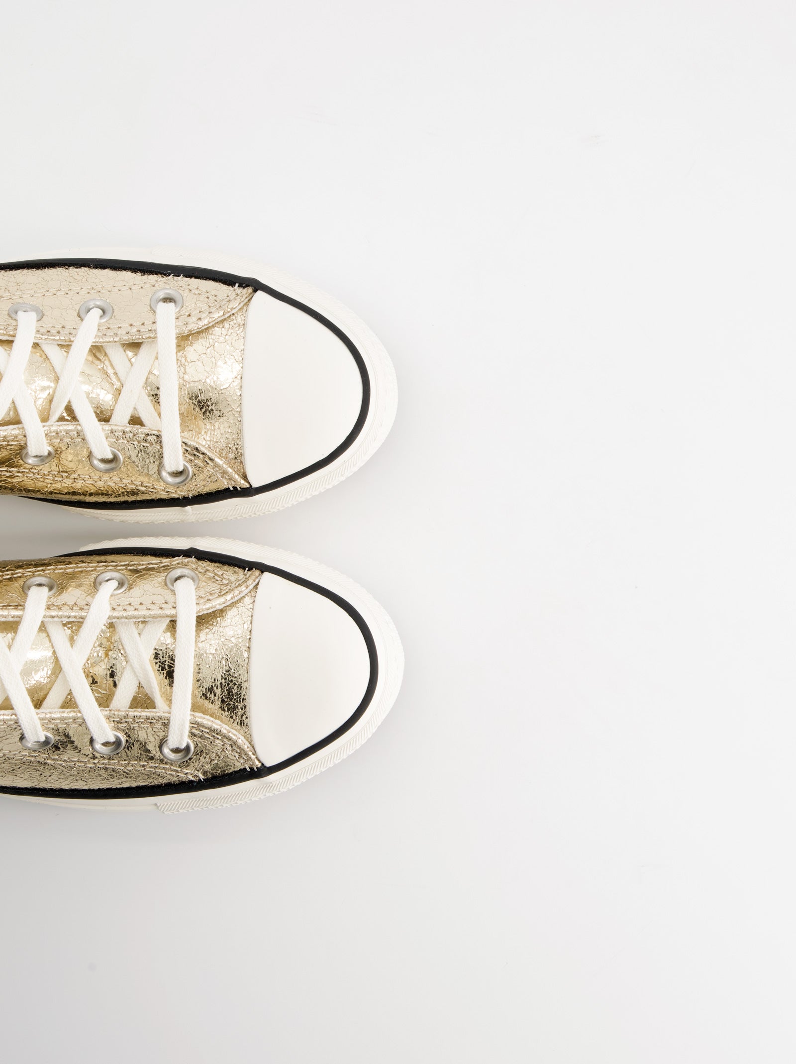 Zapatillas de plataforma con acabado efecto oro metálico texturizado. Perfectas para quienes buscan comodidad y tendencia urbana sin pasar desapercibido, aportando un toque de lujo. Suela de 3 cm.