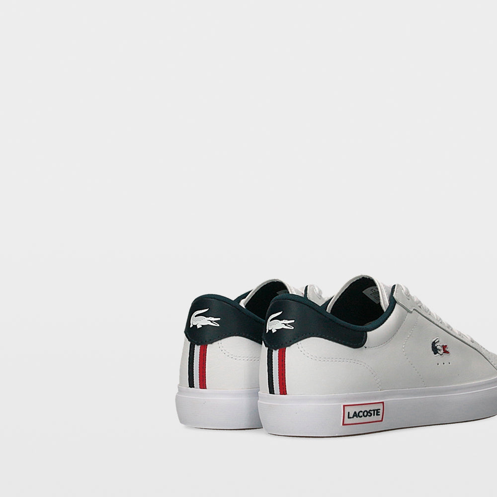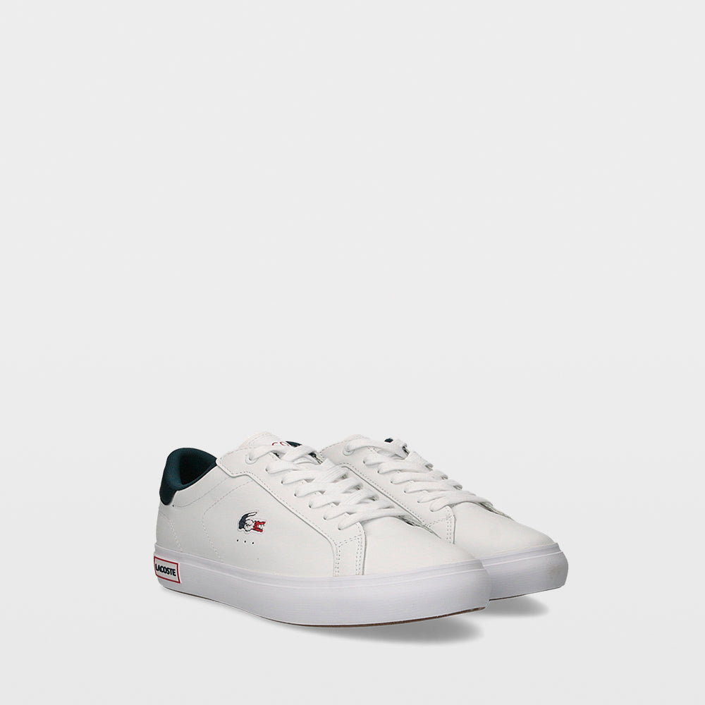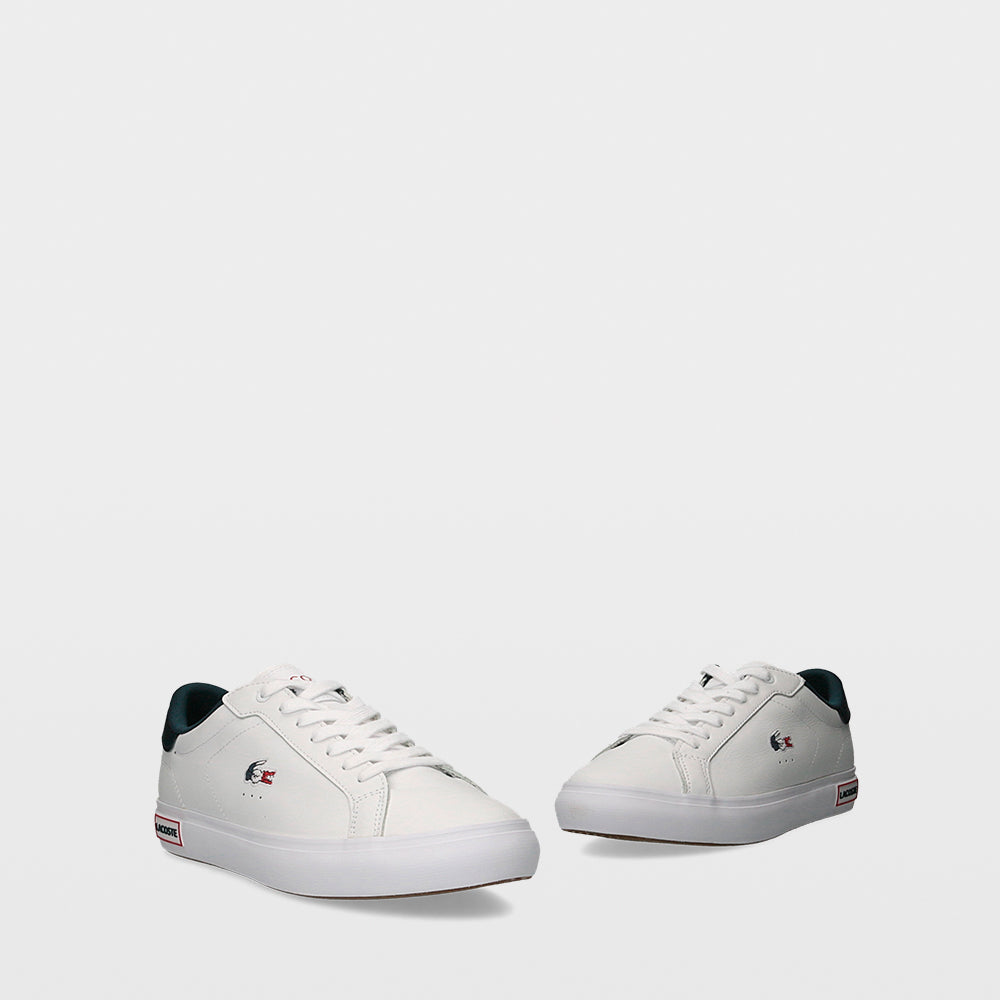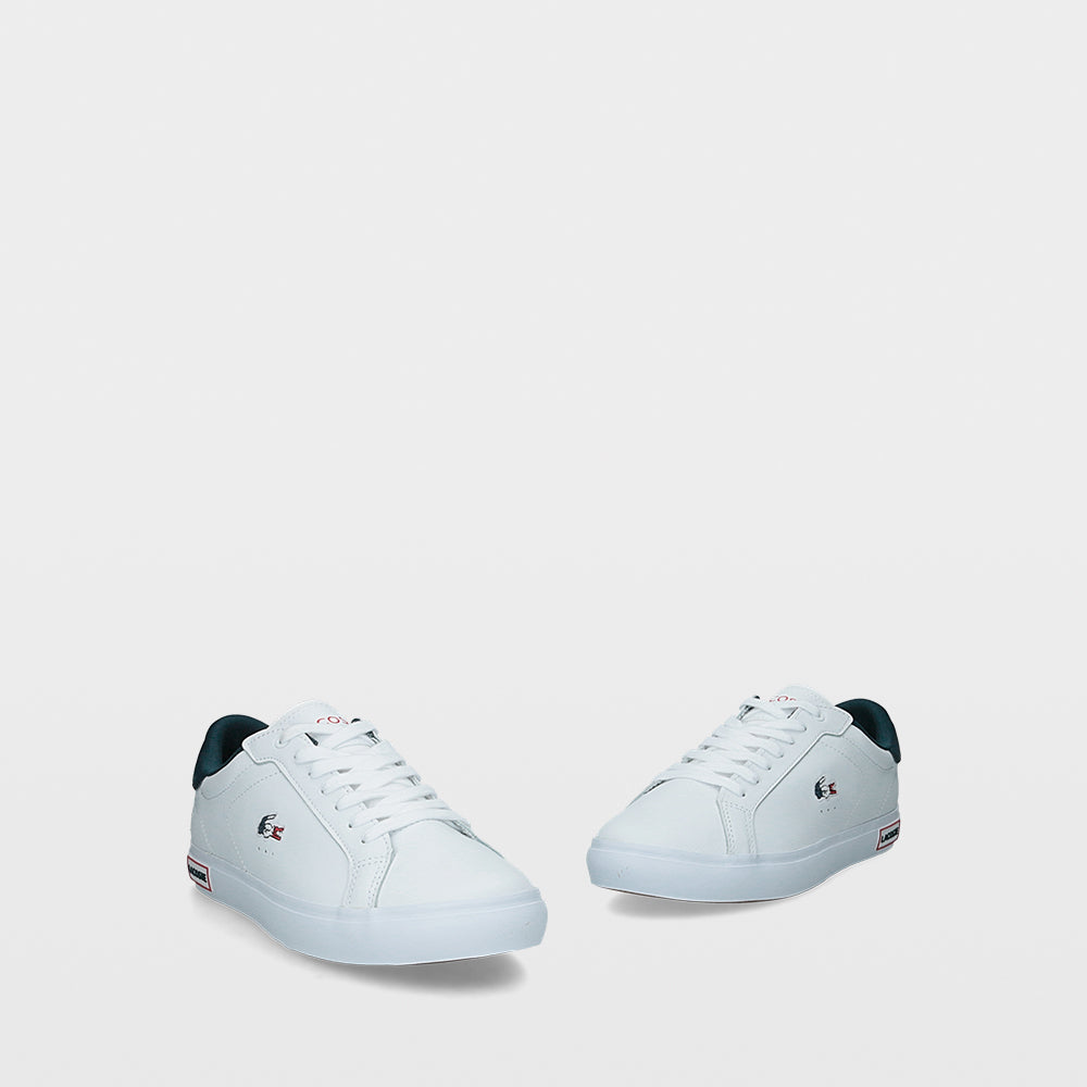 Zapatillas Lacoste frabricadas en piel sintética. Material interior: tejido. Suela de goma de 2cm.
